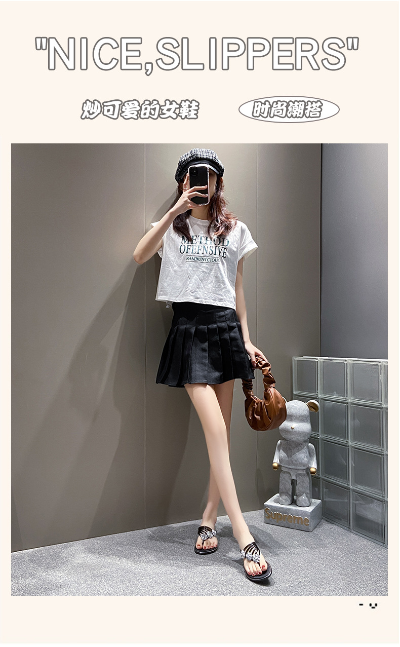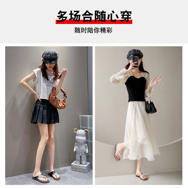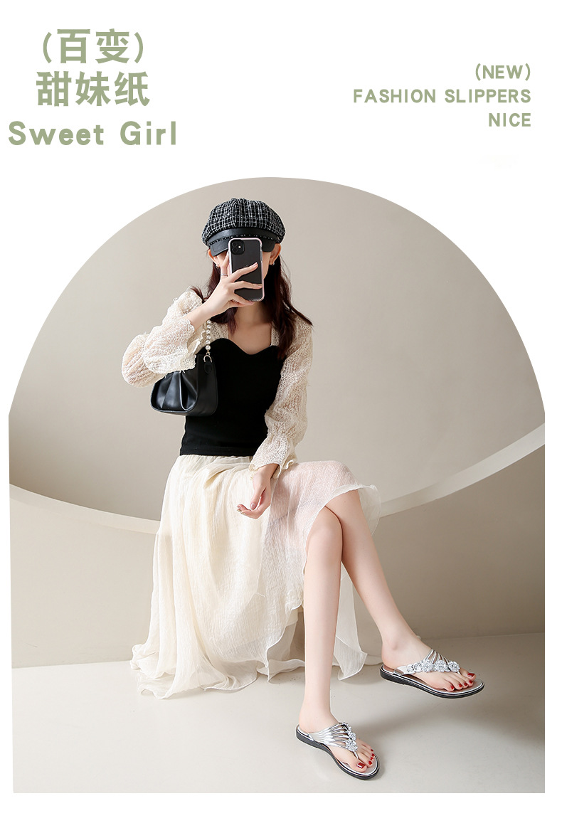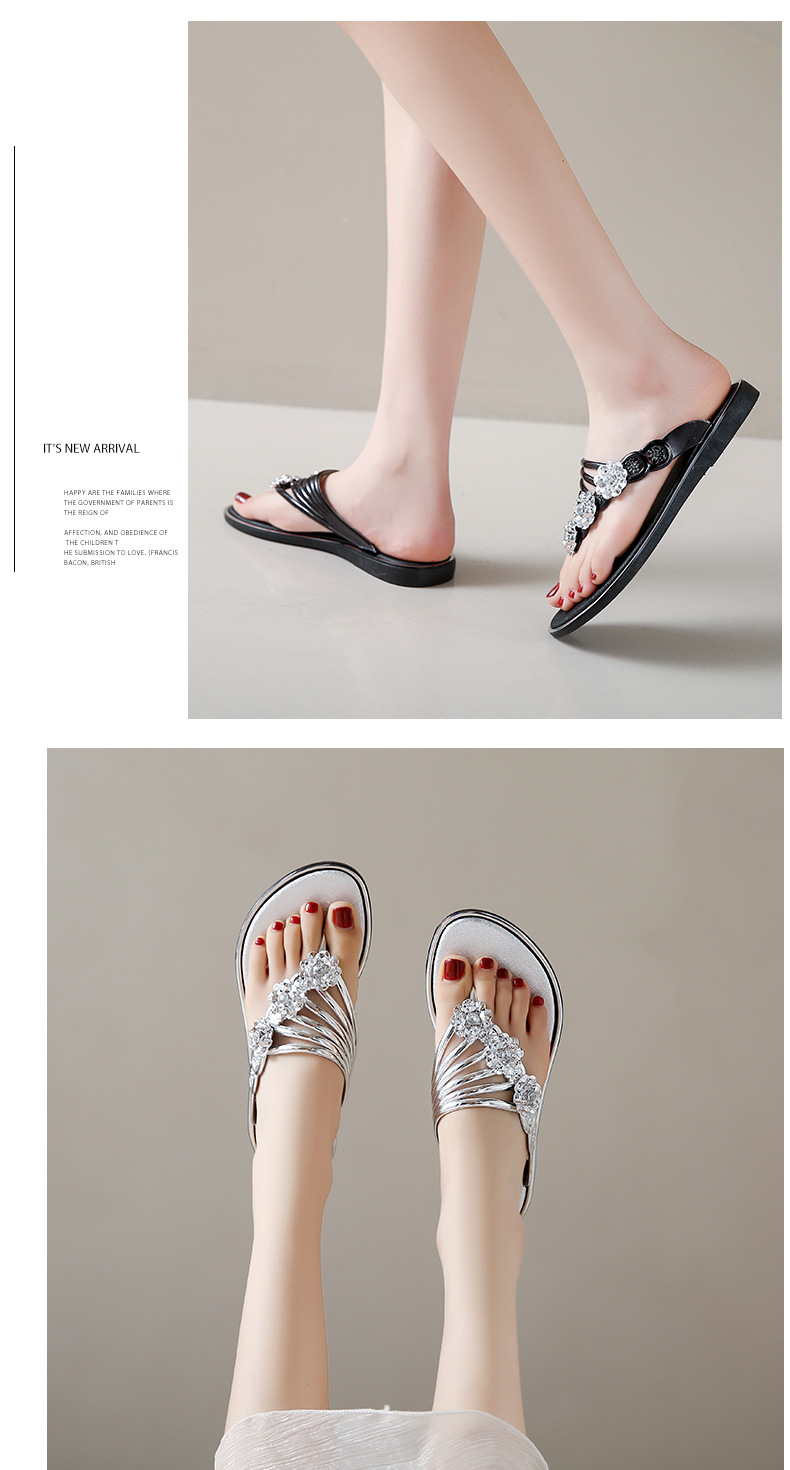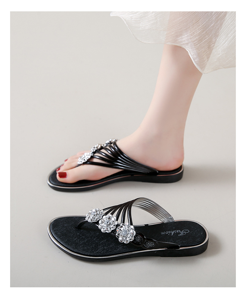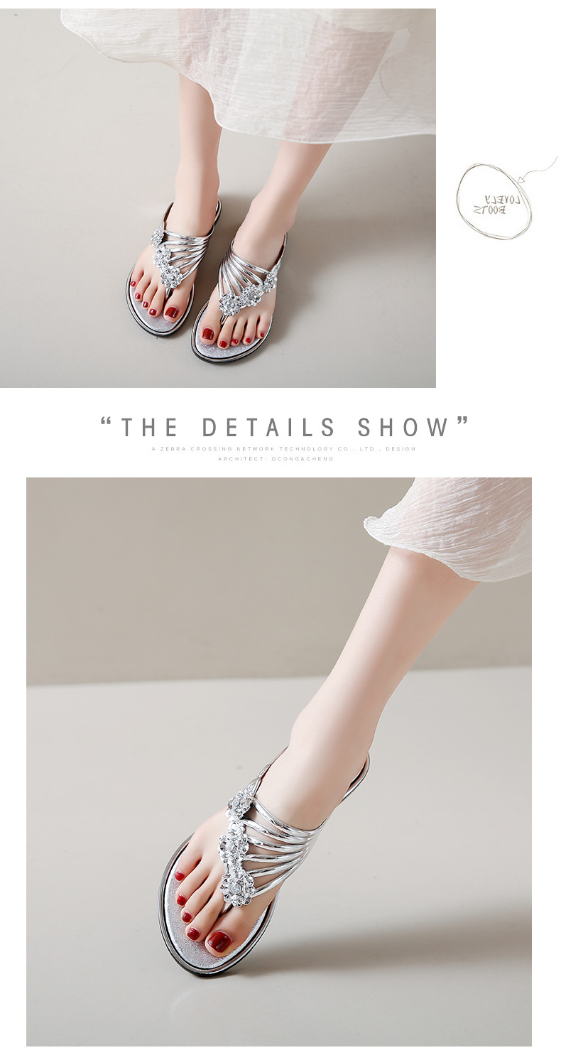 대외 무역 플립 플롭 여성 슬리퍼 여름 평면 바닥 3 꽃 다이아몬드 실버 클램프 신발 비치 샌들 여성