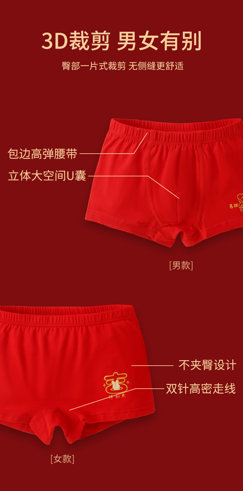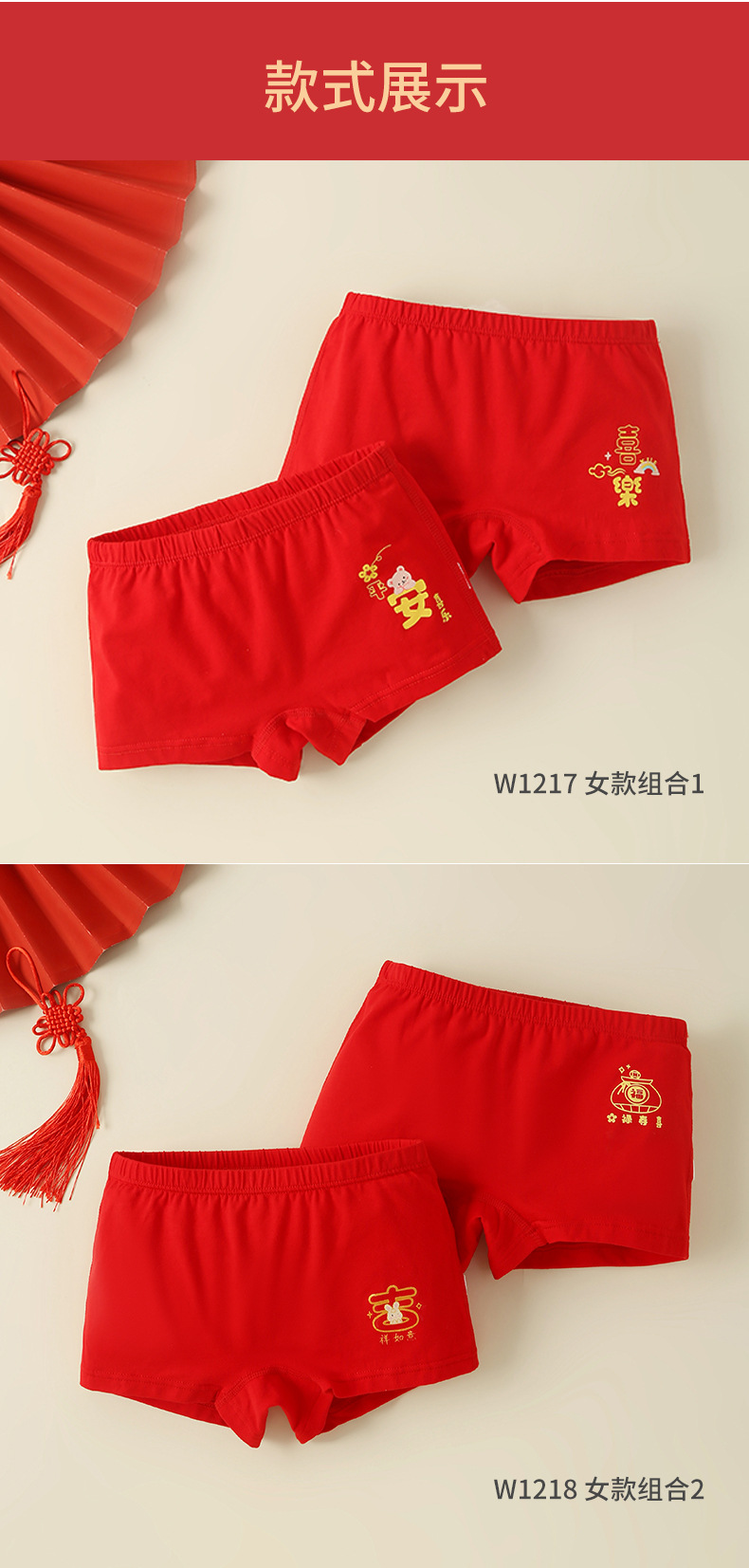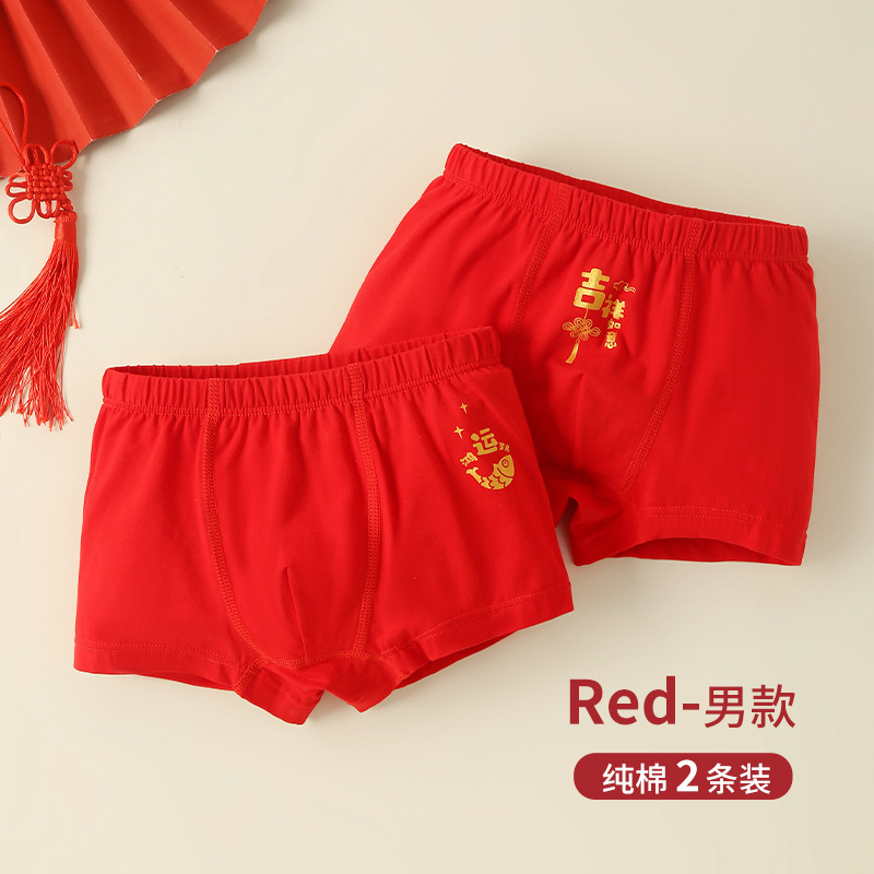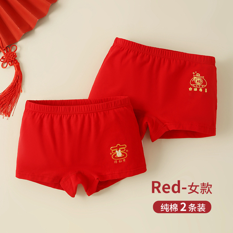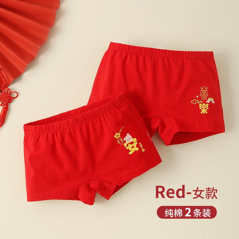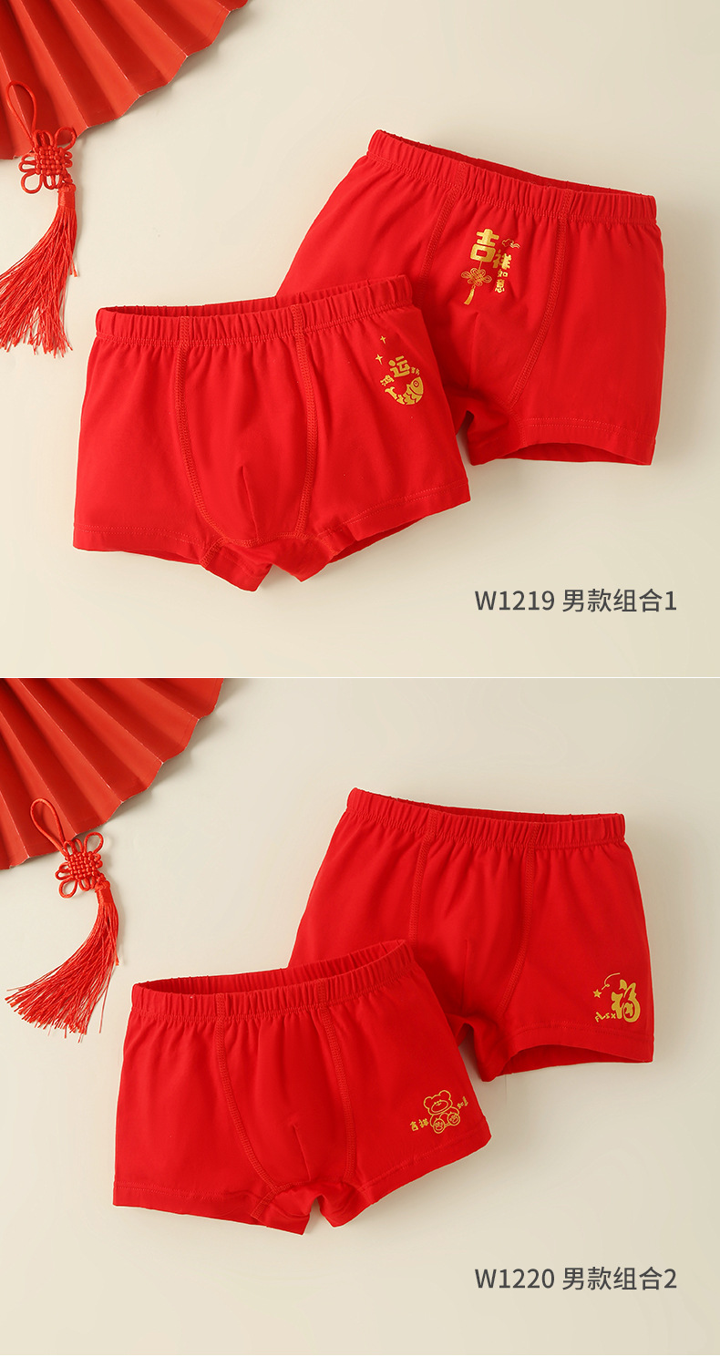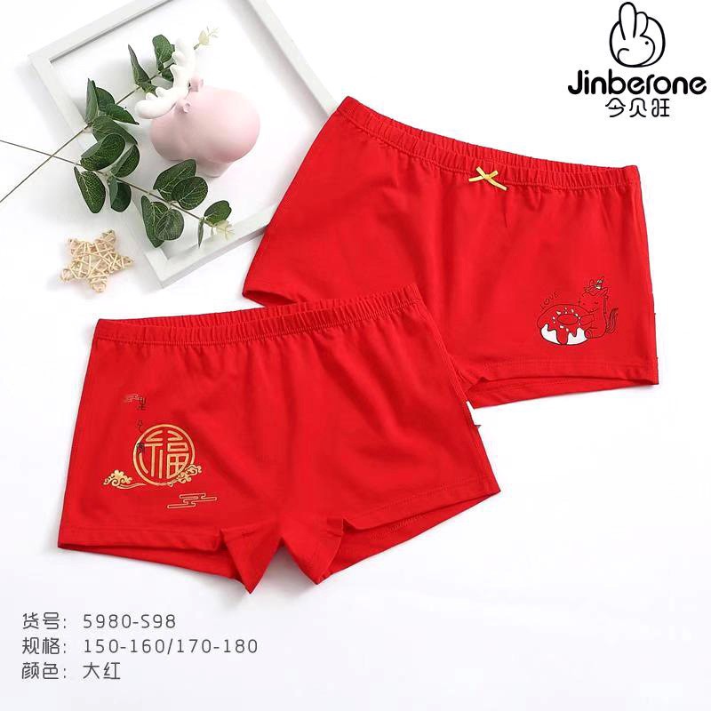 어린이 복서 Briefs Benmingnian 중년 13 십대 소년과 소녀 Red Cotton 어린이 4 개 코너 12 세