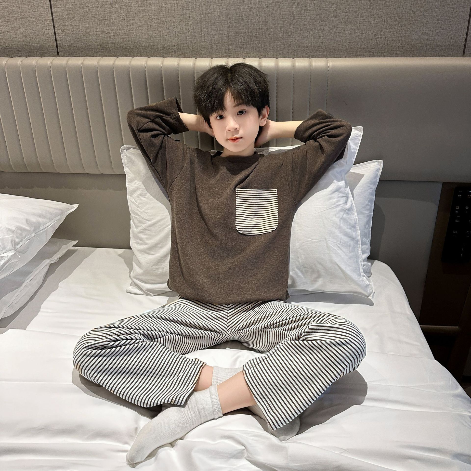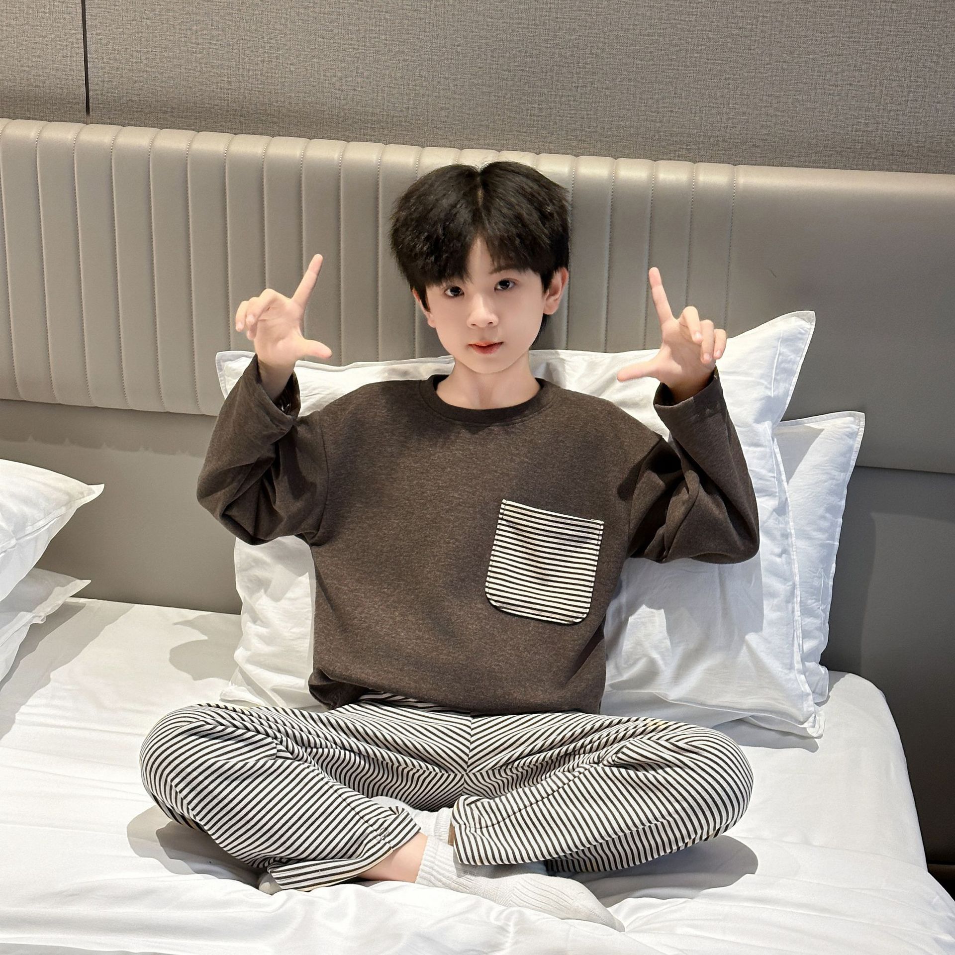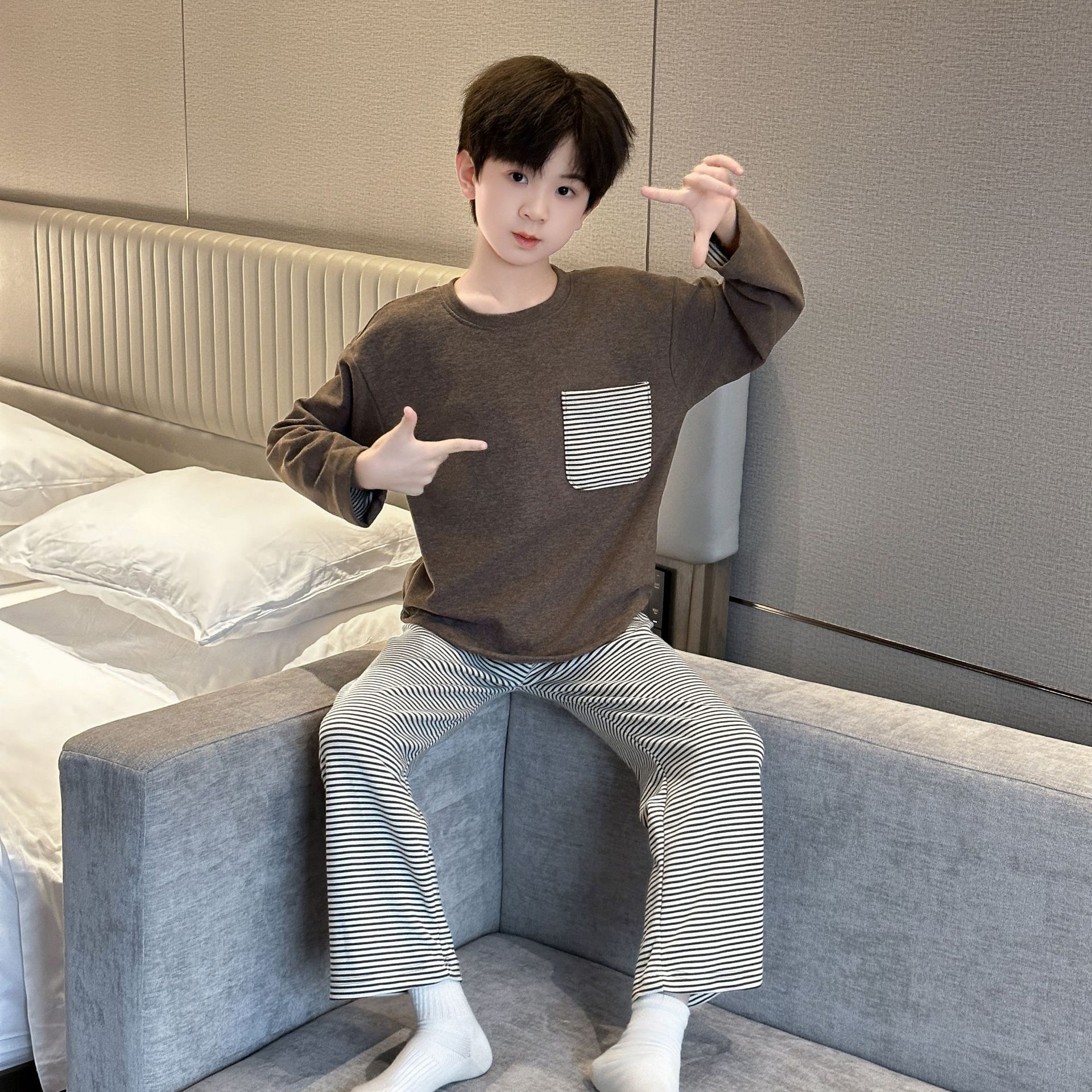 어린이 소년 소녀 잠옷 가을과 겨울 부모-자식 새 집 옷 긴팔 소년 가을 옷 긴 바지 세트스토어 가기