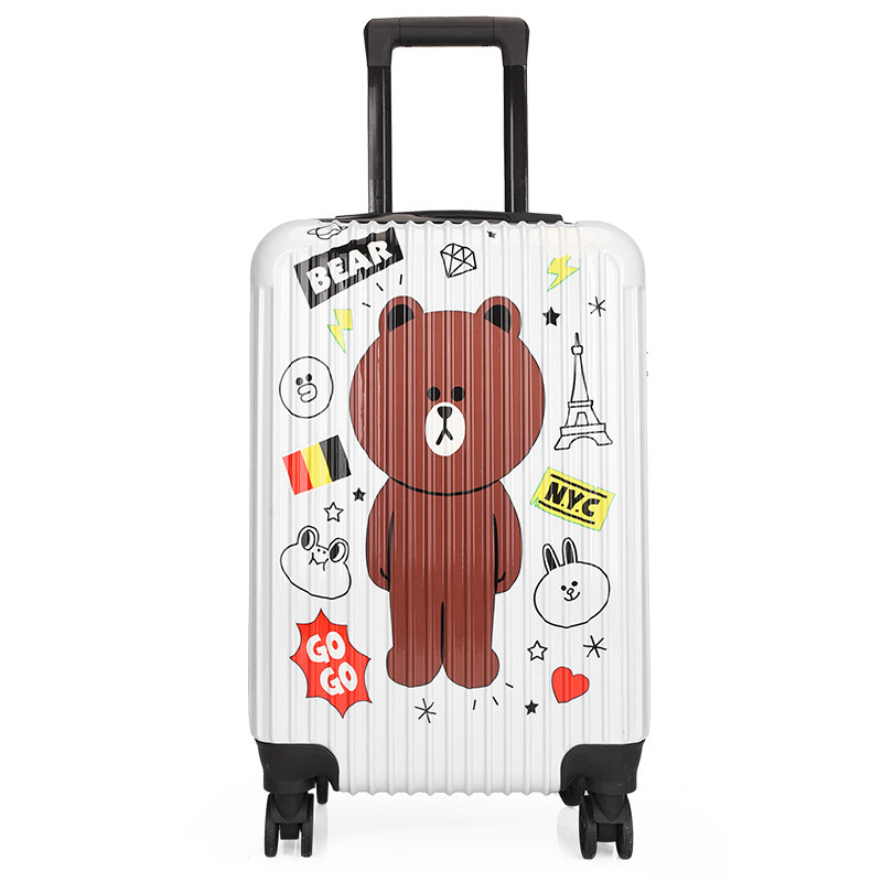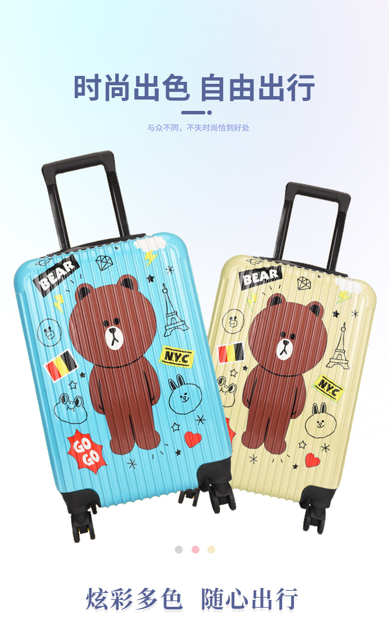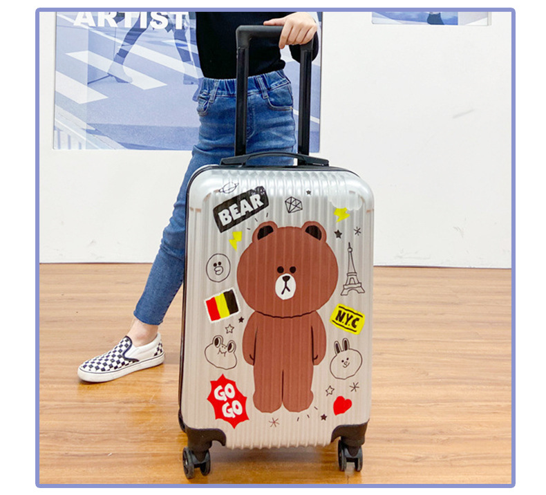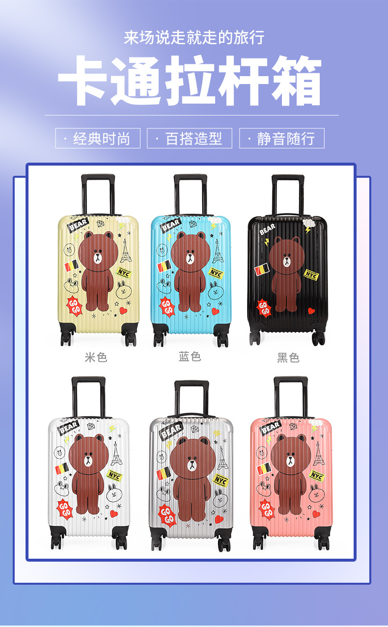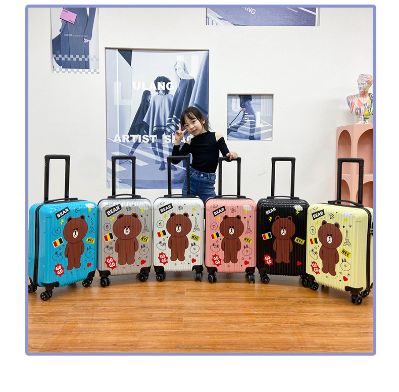 학생용 트롤리 캐리어, 회전 바퀴 여행용 성인용 기내용 캐리어, 2025년 신형 곰돌이 트렌디 패션 어린이용 여행 가방스토어 가기