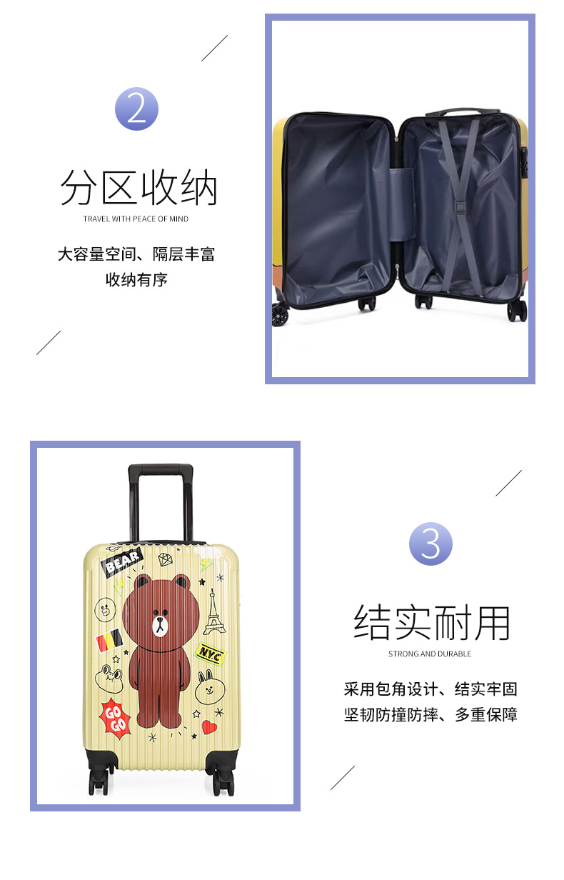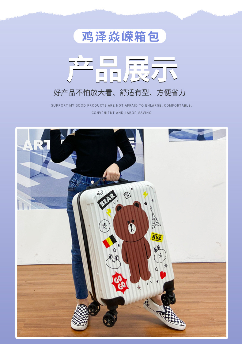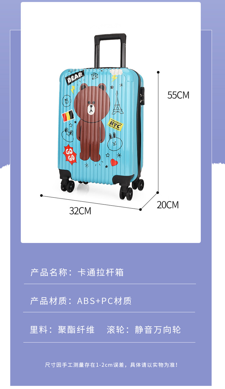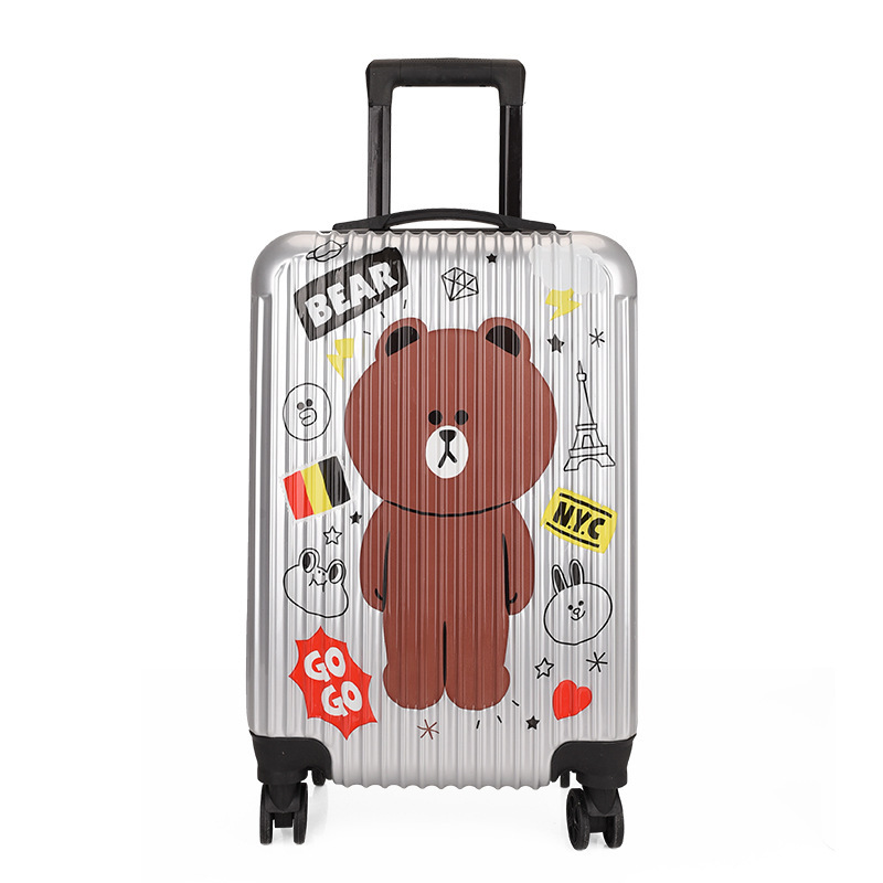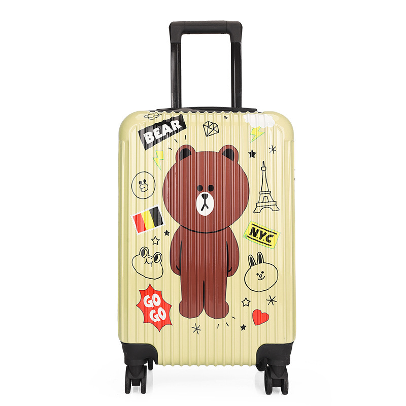 학생용 트롤리 캐리어, 회전 바퀴 여행용 성인용 기내용 캐리어, 2025년 신형 곰돌이 트렌디 패션 어린이용 여행 가방스토어 가기