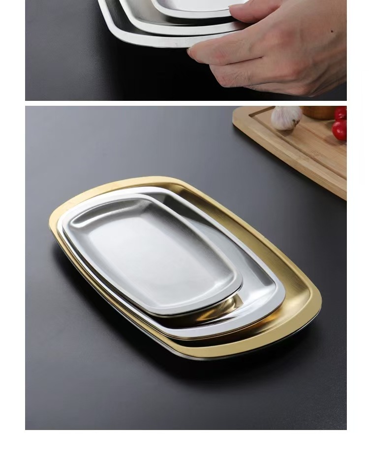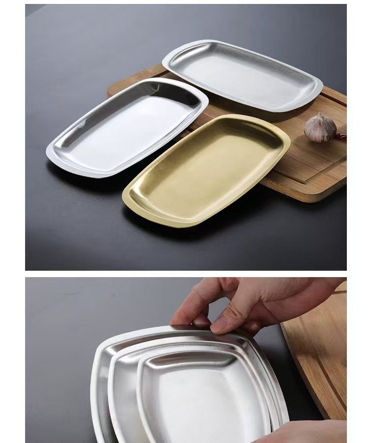 국경을 넘는 스테인리스 바베큐 접시, 한국식 사각 스낵 접시, 전골 반찬 접시, 스낵 접시, 바베큐 평평한 트레이