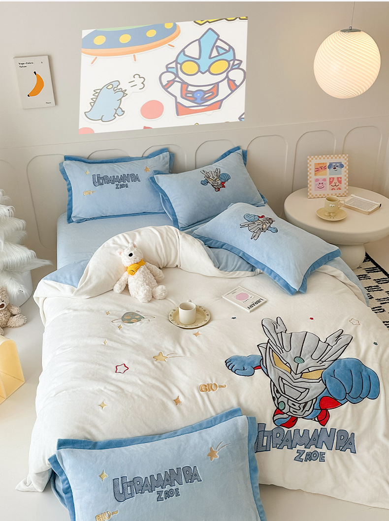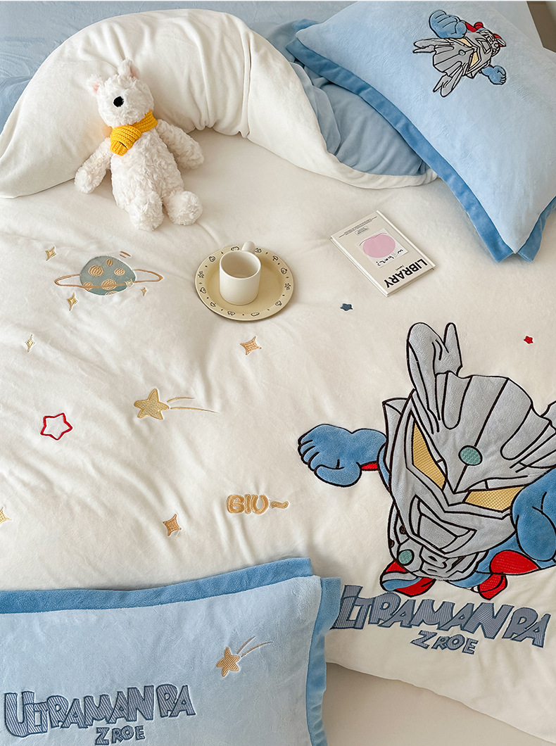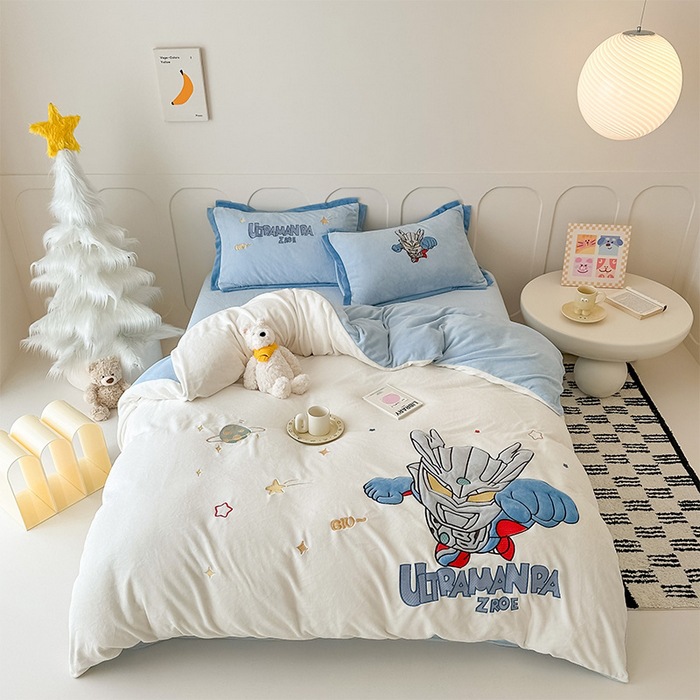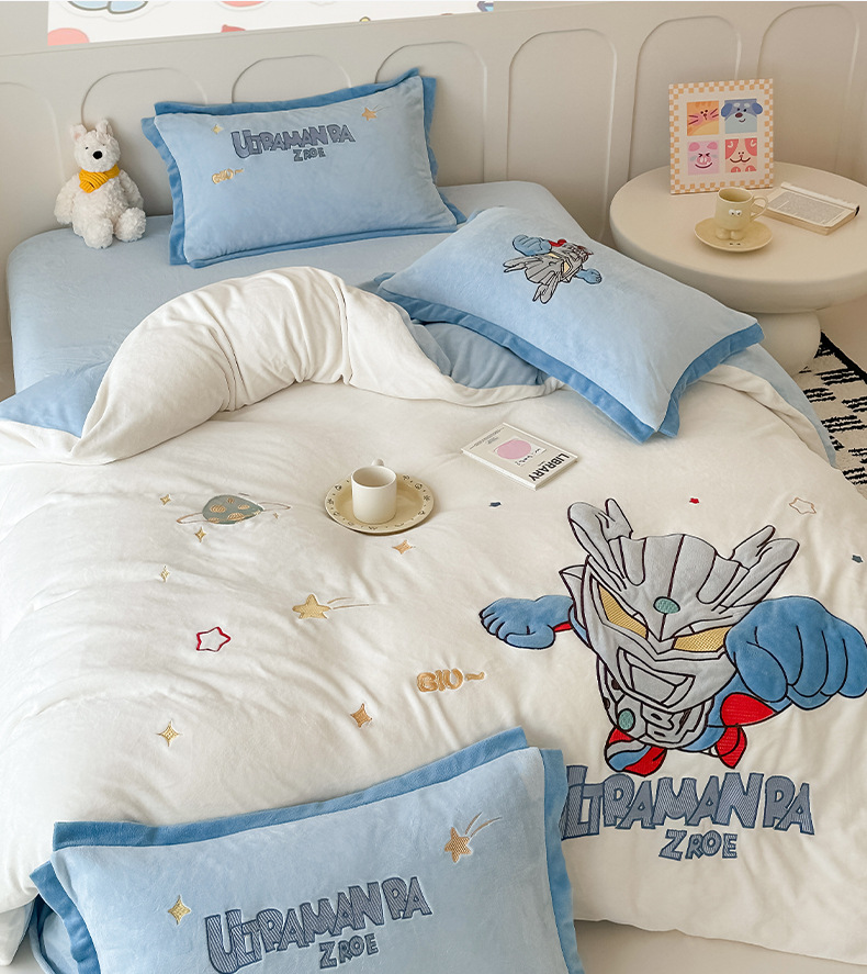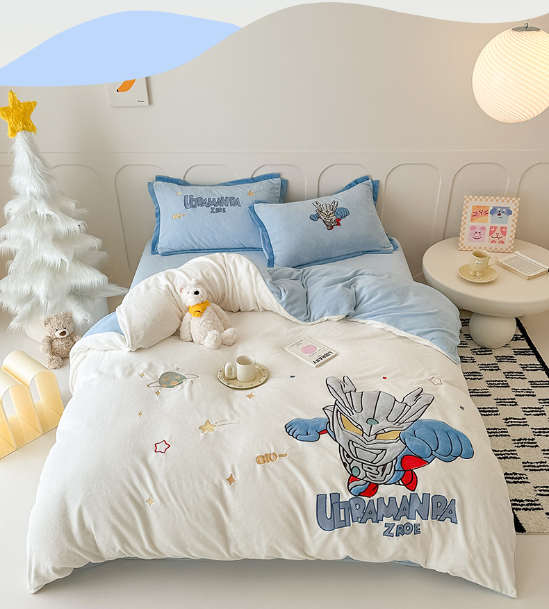 2024 새로운 클래스 우유 벨벳 만화 패치 자수 4 피스 세트-작은 영웅스토어 가기
