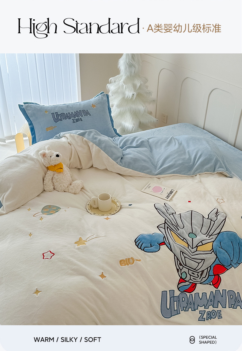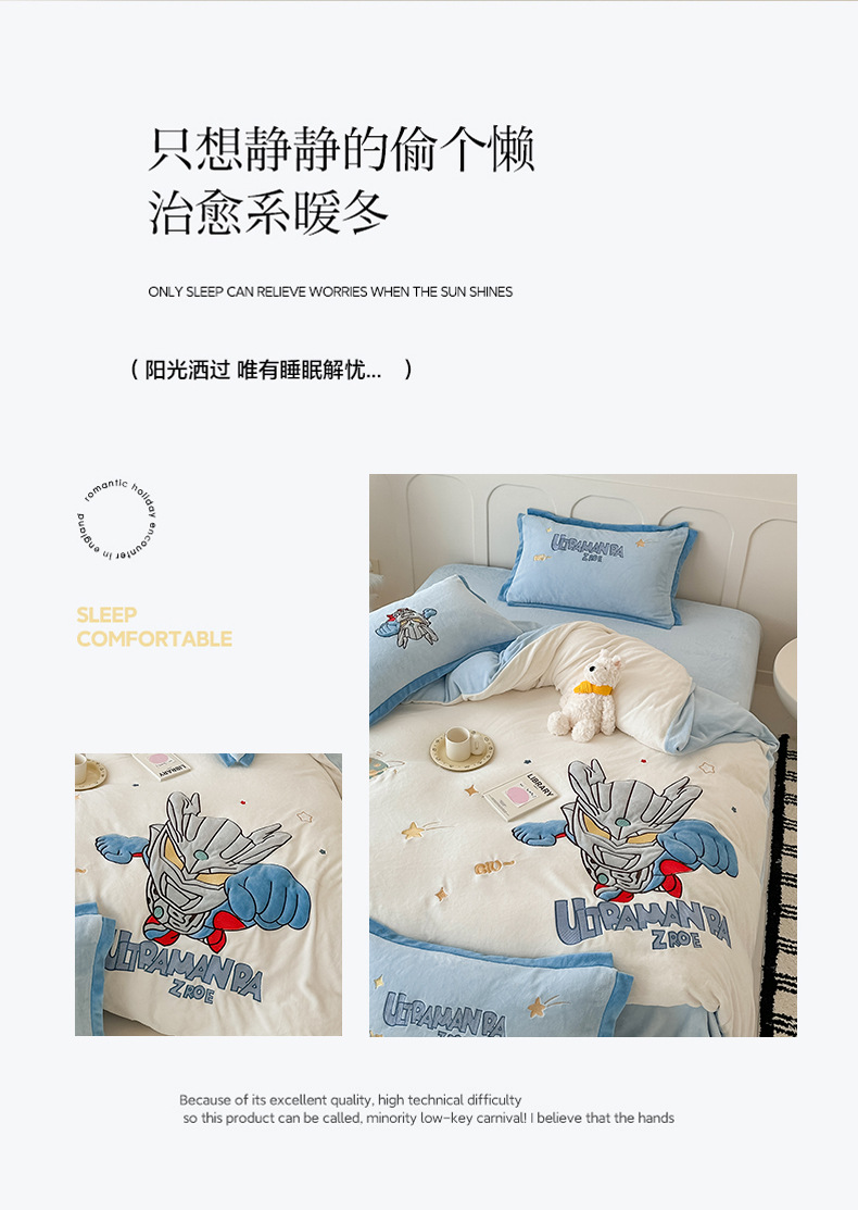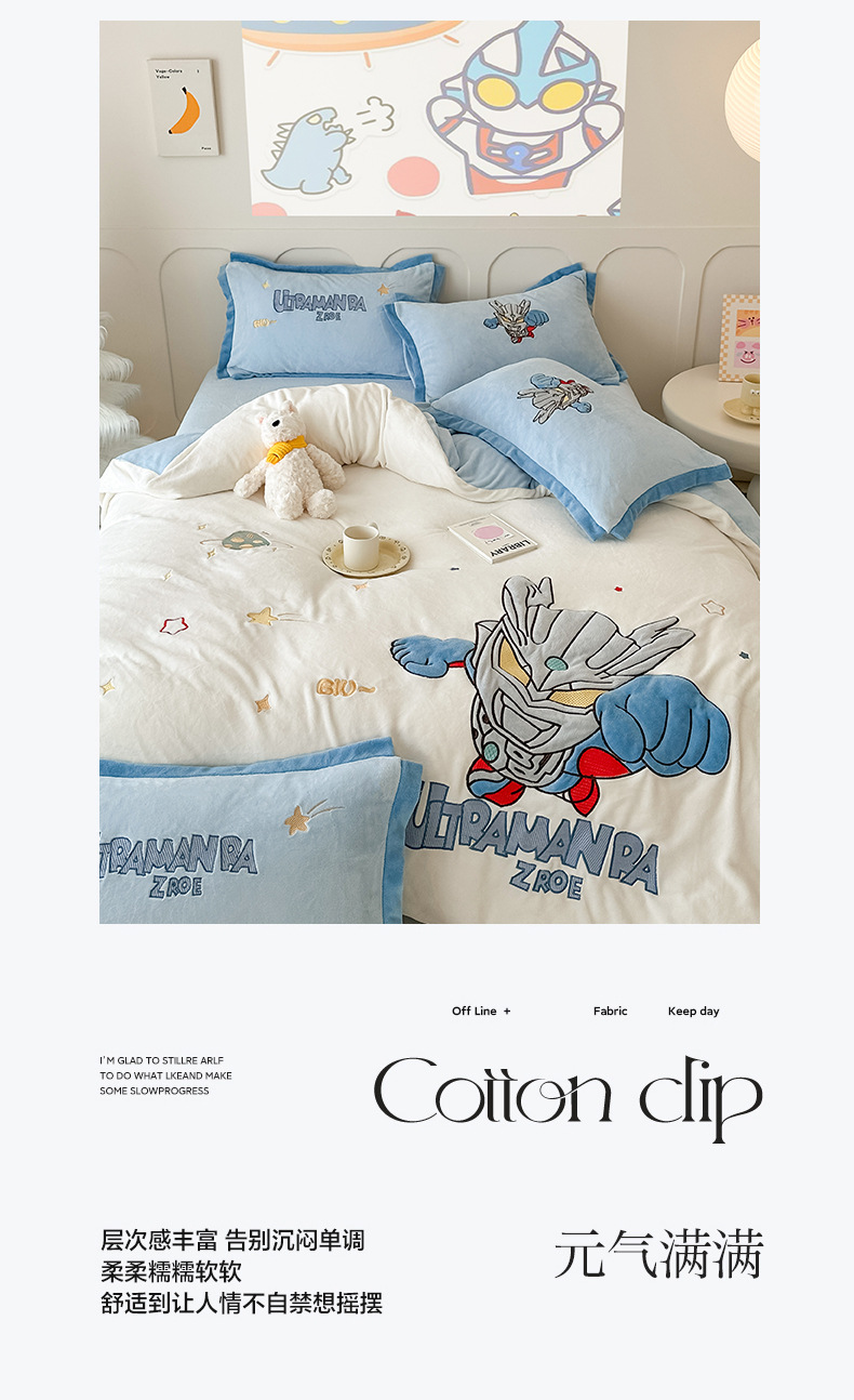 2024 새로운 클래스 우유 벨벳 만화 패치 자수 4 피스 세트-작은 영웅스토어 가기