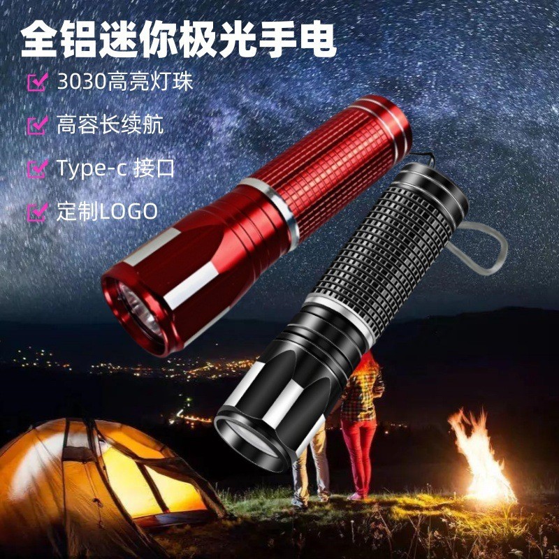 미니 휴대용 손전등 슈퍼 밝은 장거리 충전식 비상 조명 빠른 충전 알루미늄 합금 야외 손전등