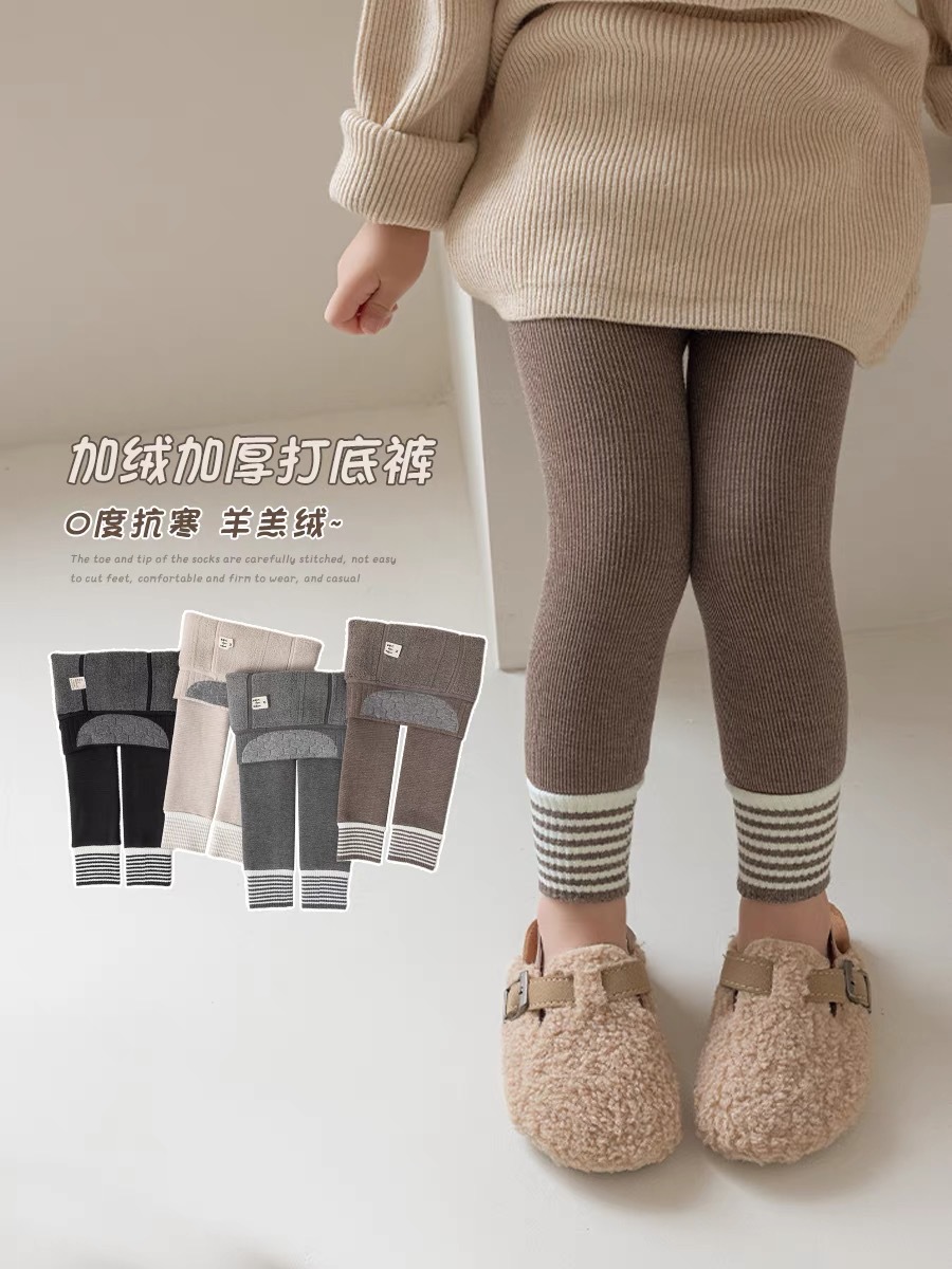 소녀의 겨울 기모 두꺼운 레깅스 아기의 줄무늬 수평 바 발 9 점 따뜻한 바지 어린이 레깅스스토어 가기