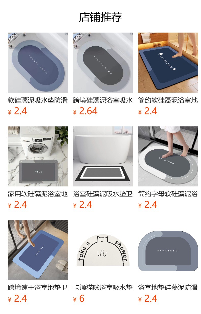 간단한 부드러운 규조 진흙 욕실 매트 화장실 문 흡수성 빠른 건조 미끄럼 방지 발 매트 화장실 문 매트스토어 가기