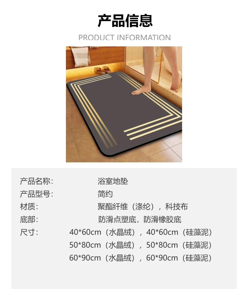 간단한 부드러운 규조 진흙 욕실 매트 화장실 문 흡수성 빠른 건조 미끄럼 방지 발 매트 화장실 문 매트