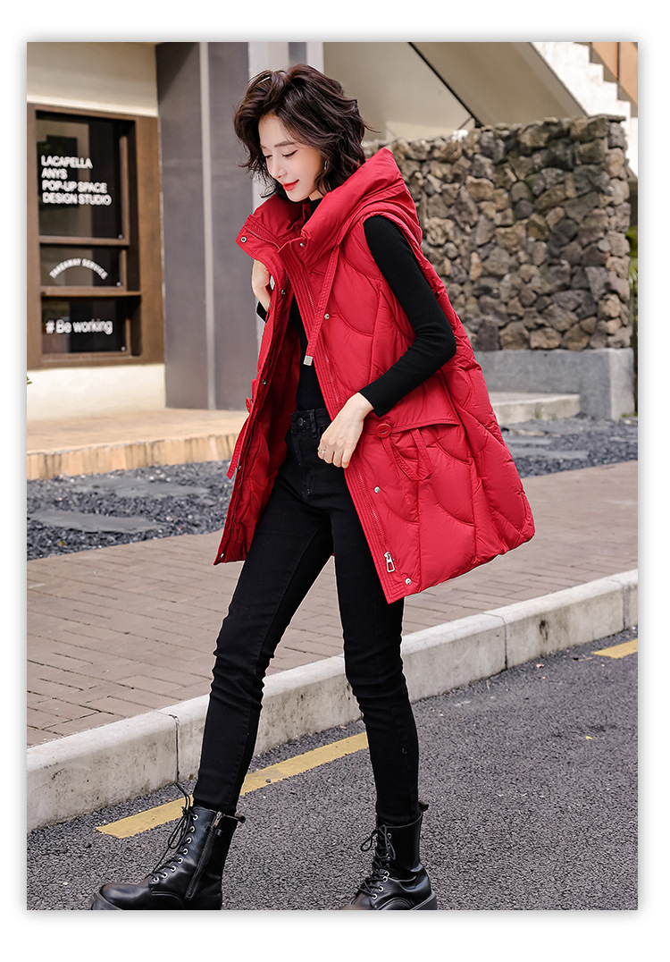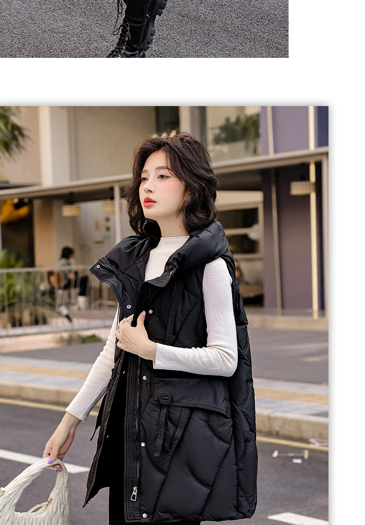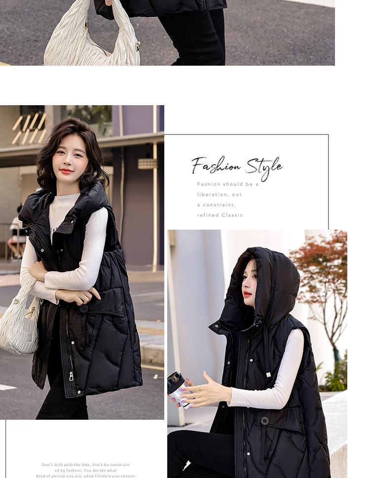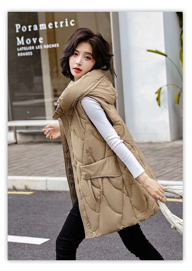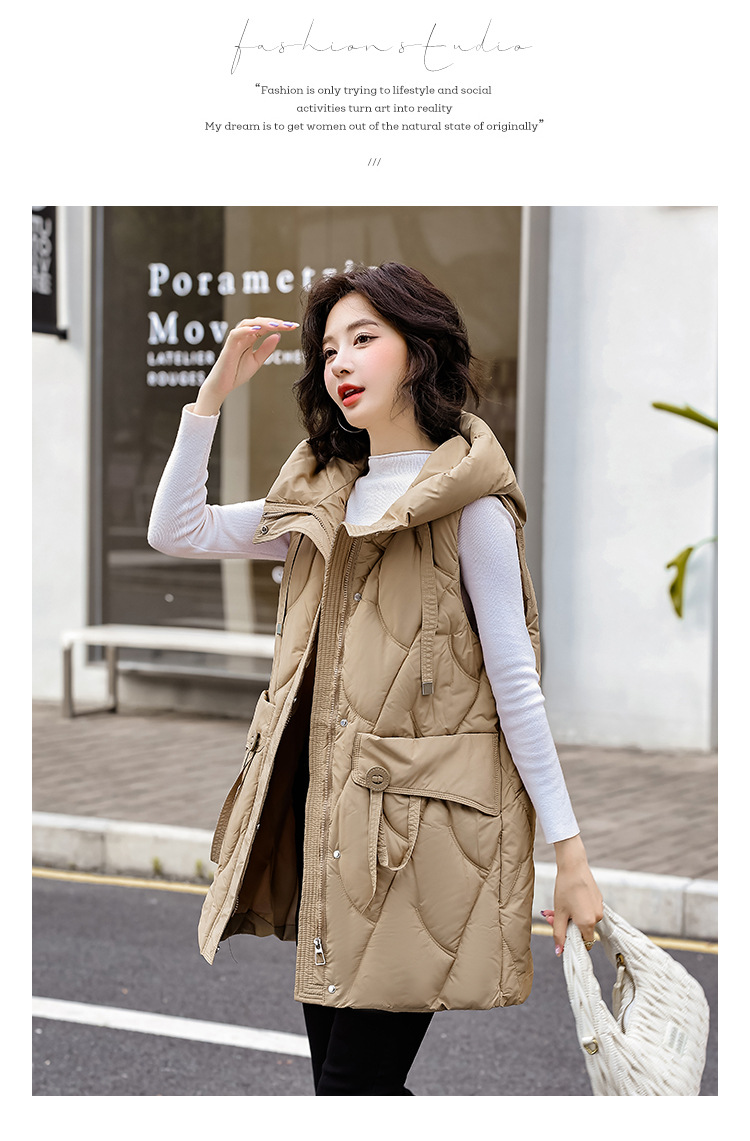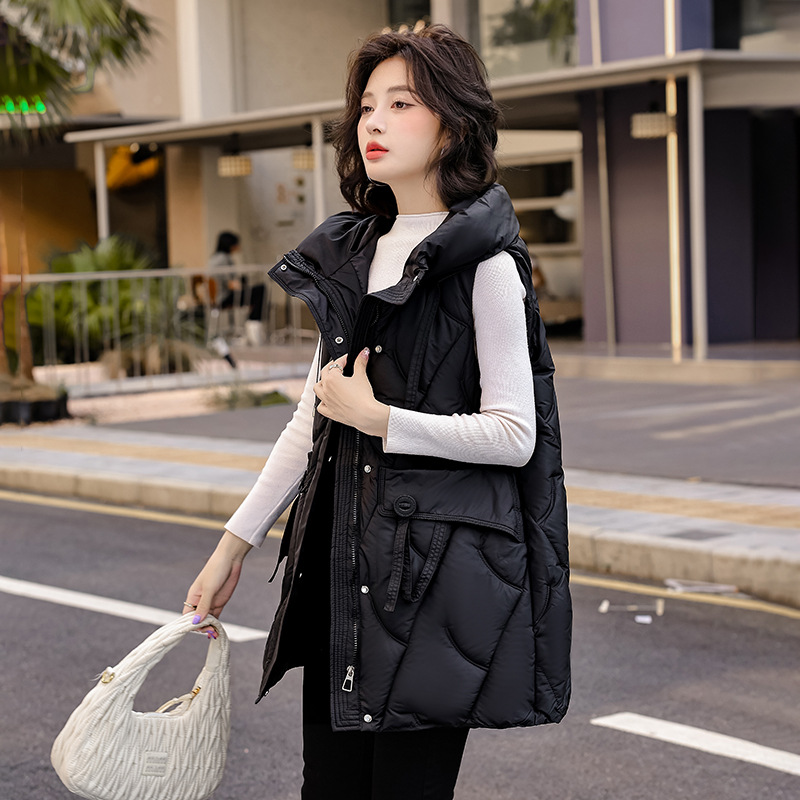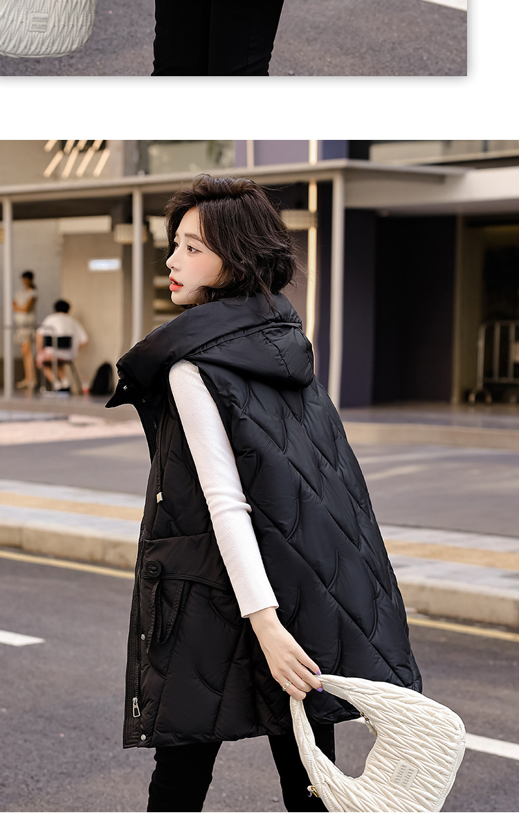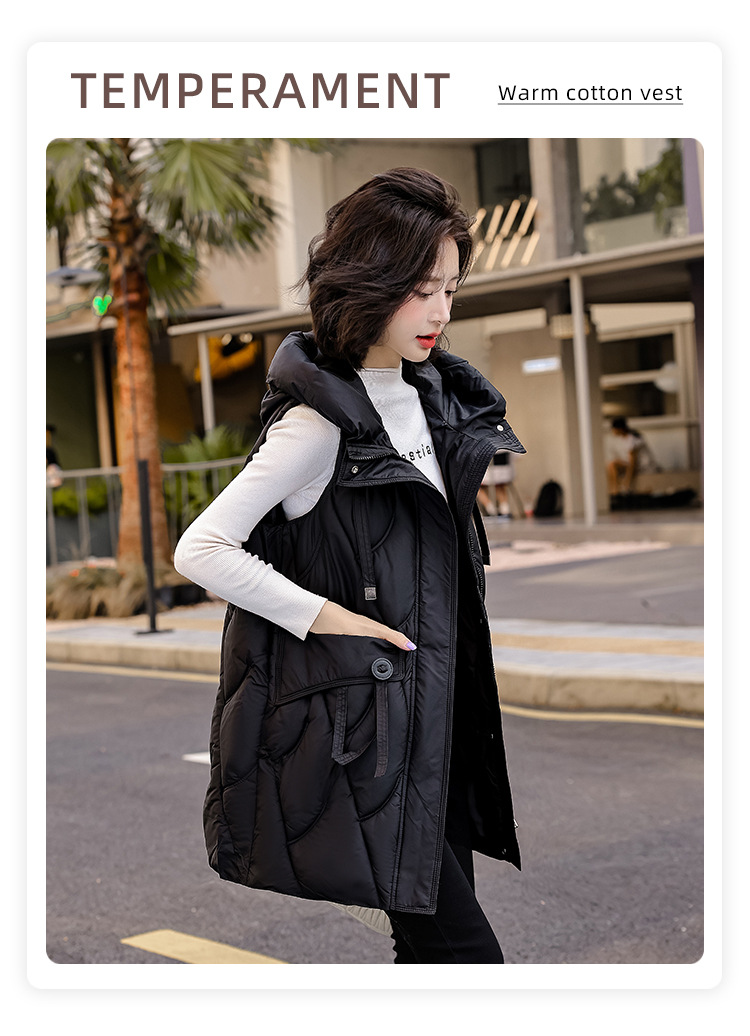다운 코튼 조끼 여성의 긴 2024 가을과 겨울 플러스 사이즈 슬림 후드 양복 조끼 패딩 코튼 코트스토어 가기