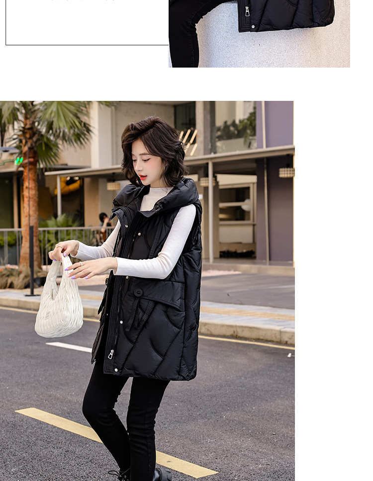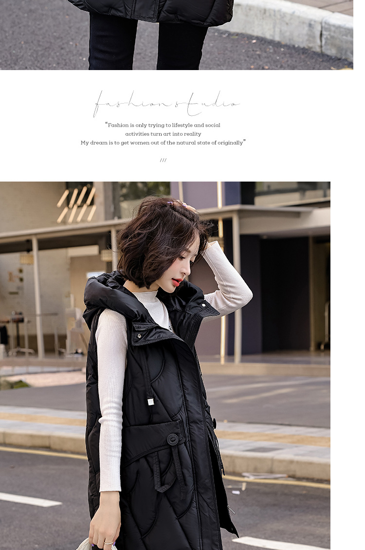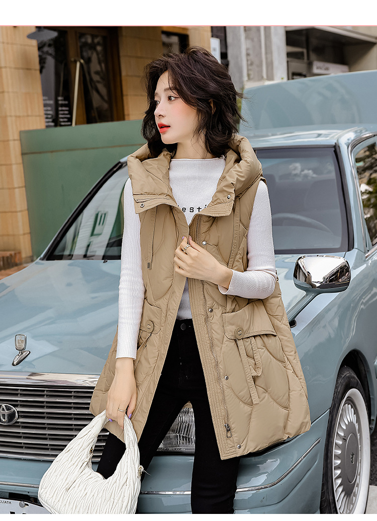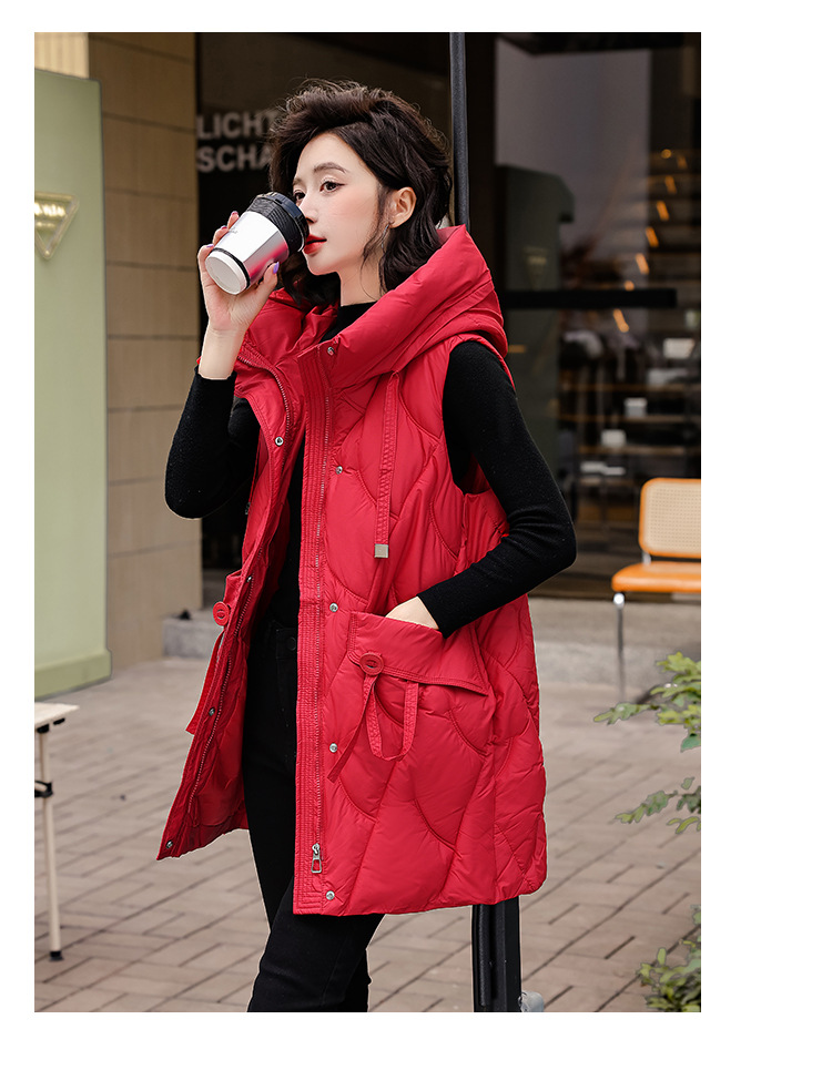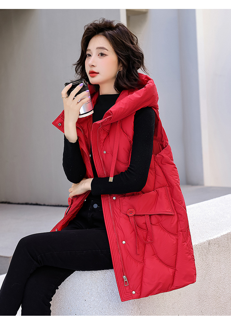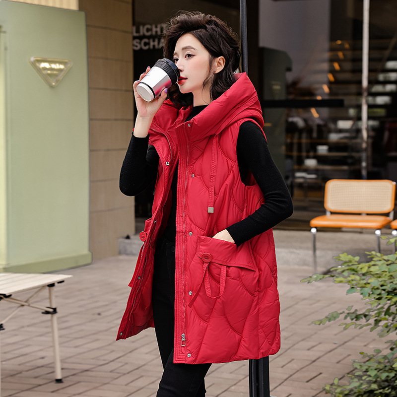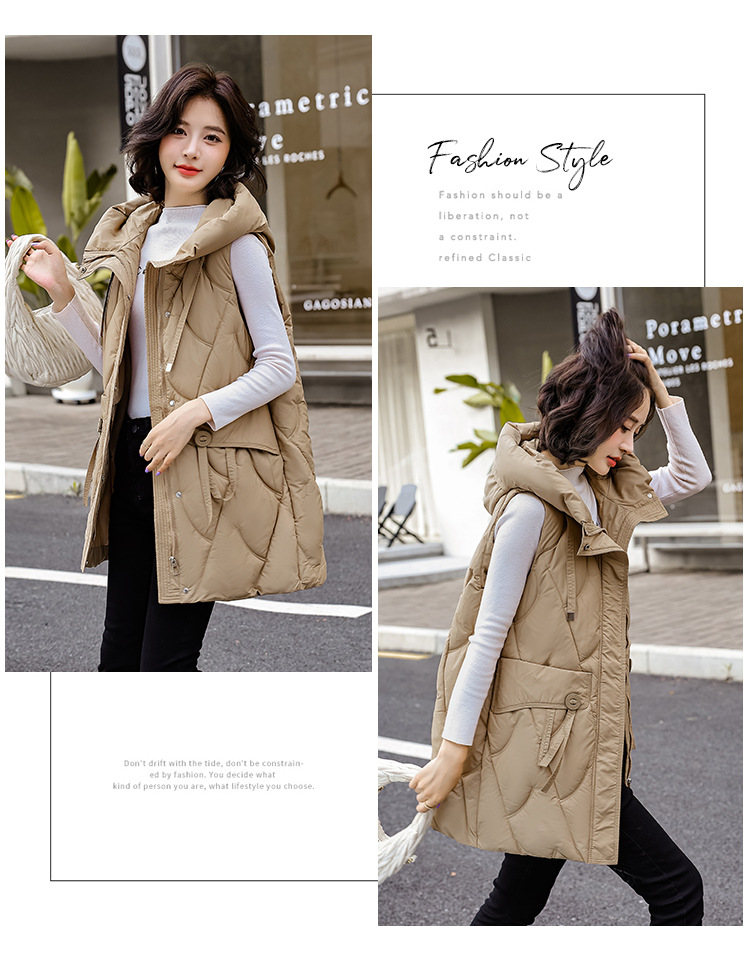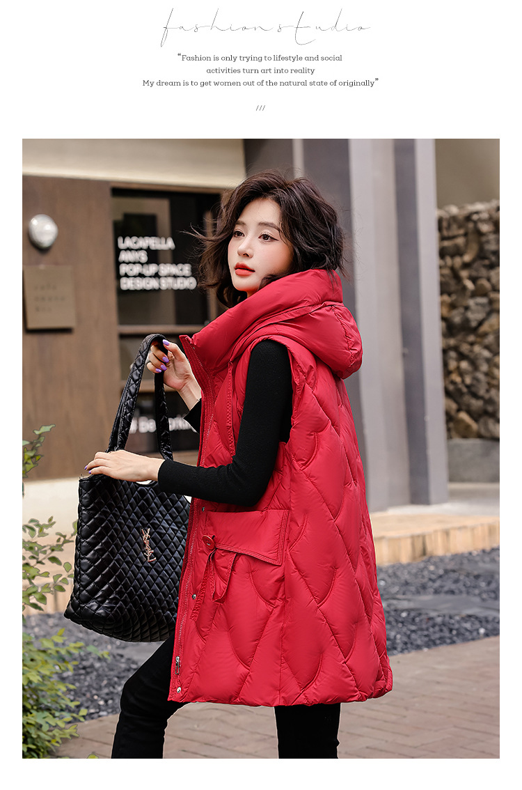 다운 코튼 조끼 여성의 긴 2024 가을과 겨울 플러스 사이즈 슬림 후드 양복 조끼 패딩 코튼 코트스토어 가기