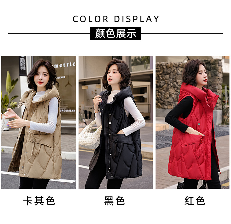 다운 코튼 조끼 여성의 긴 2024 가을과 겨울 플러스 사이즈 슬림 후드 양복 조끼 패딩 코튼 코트