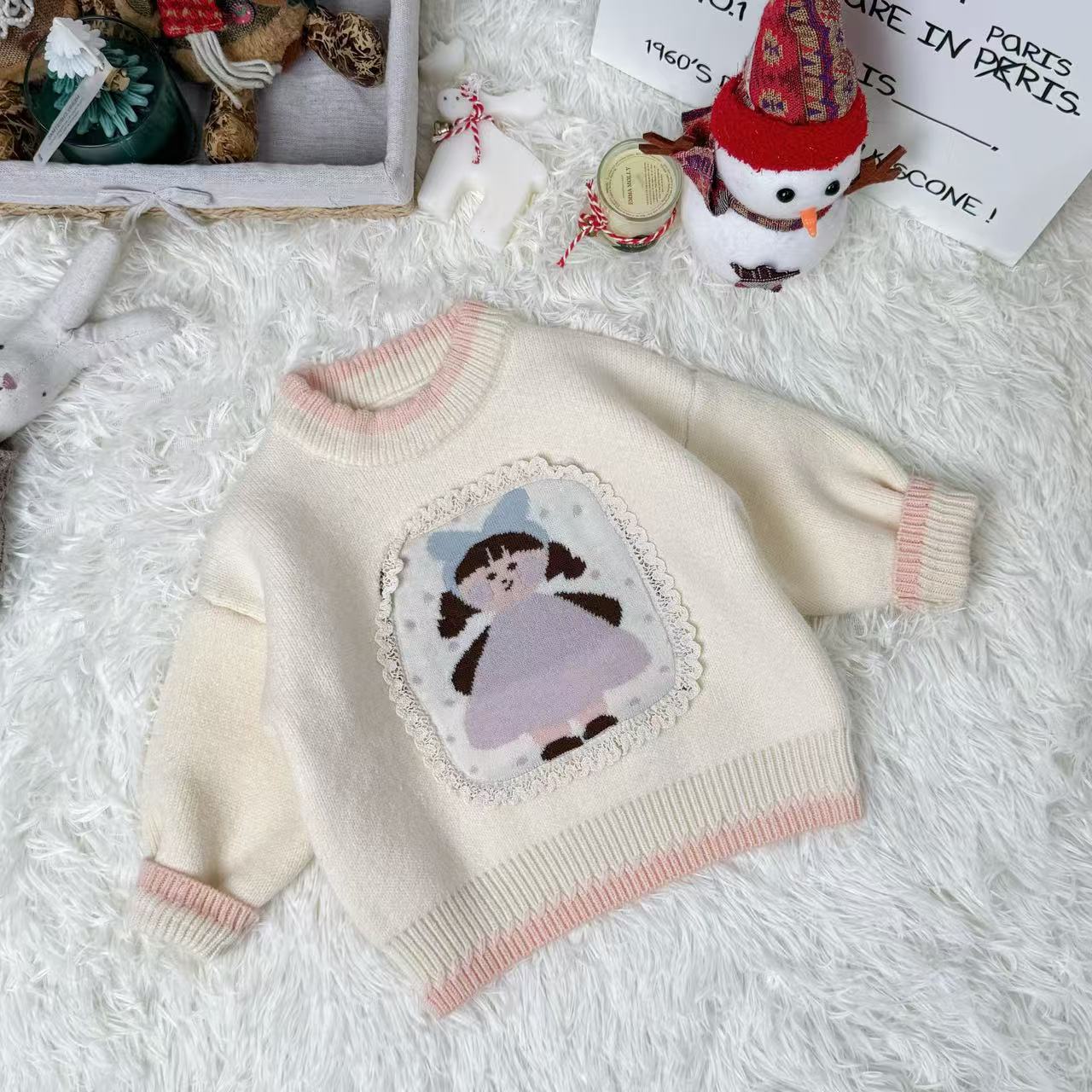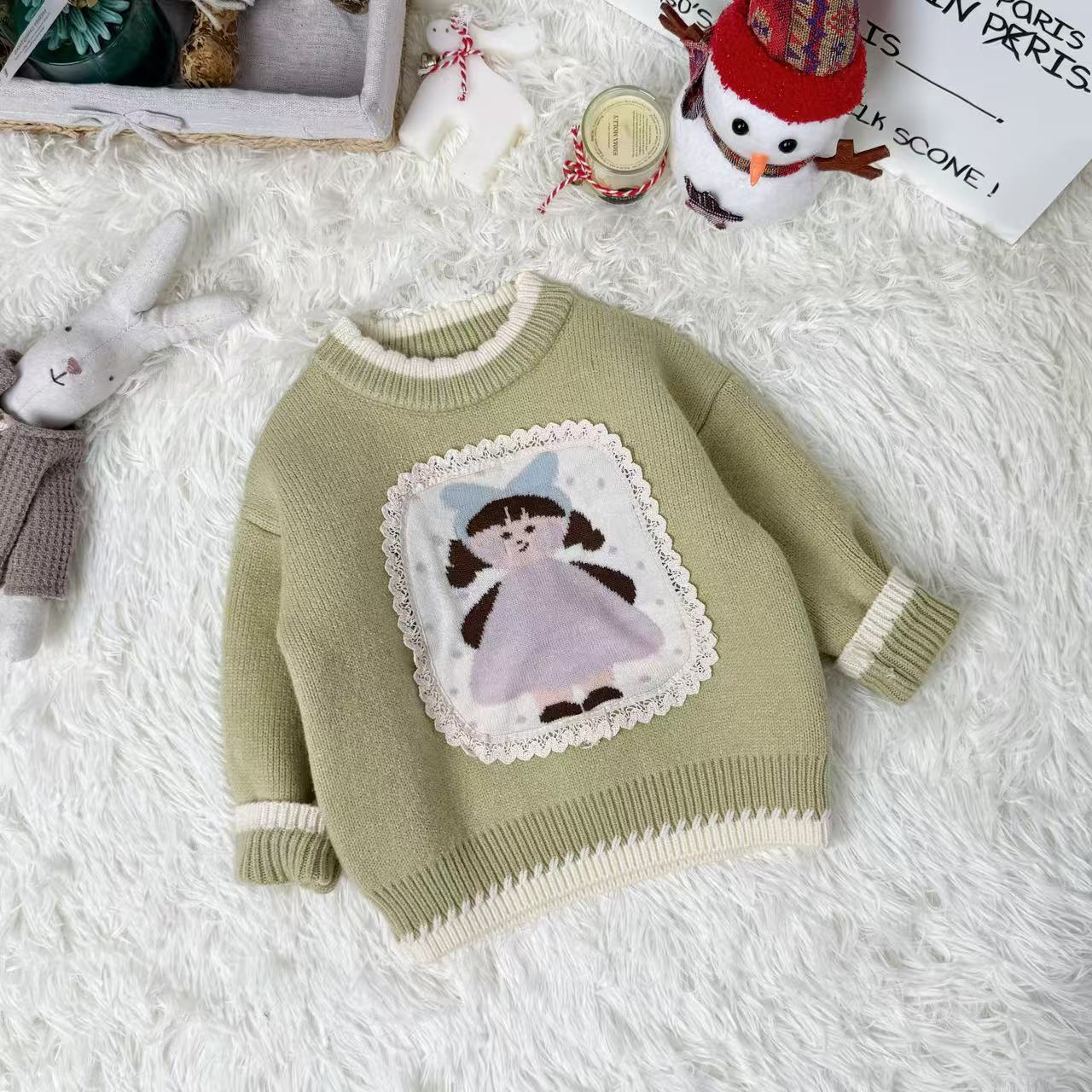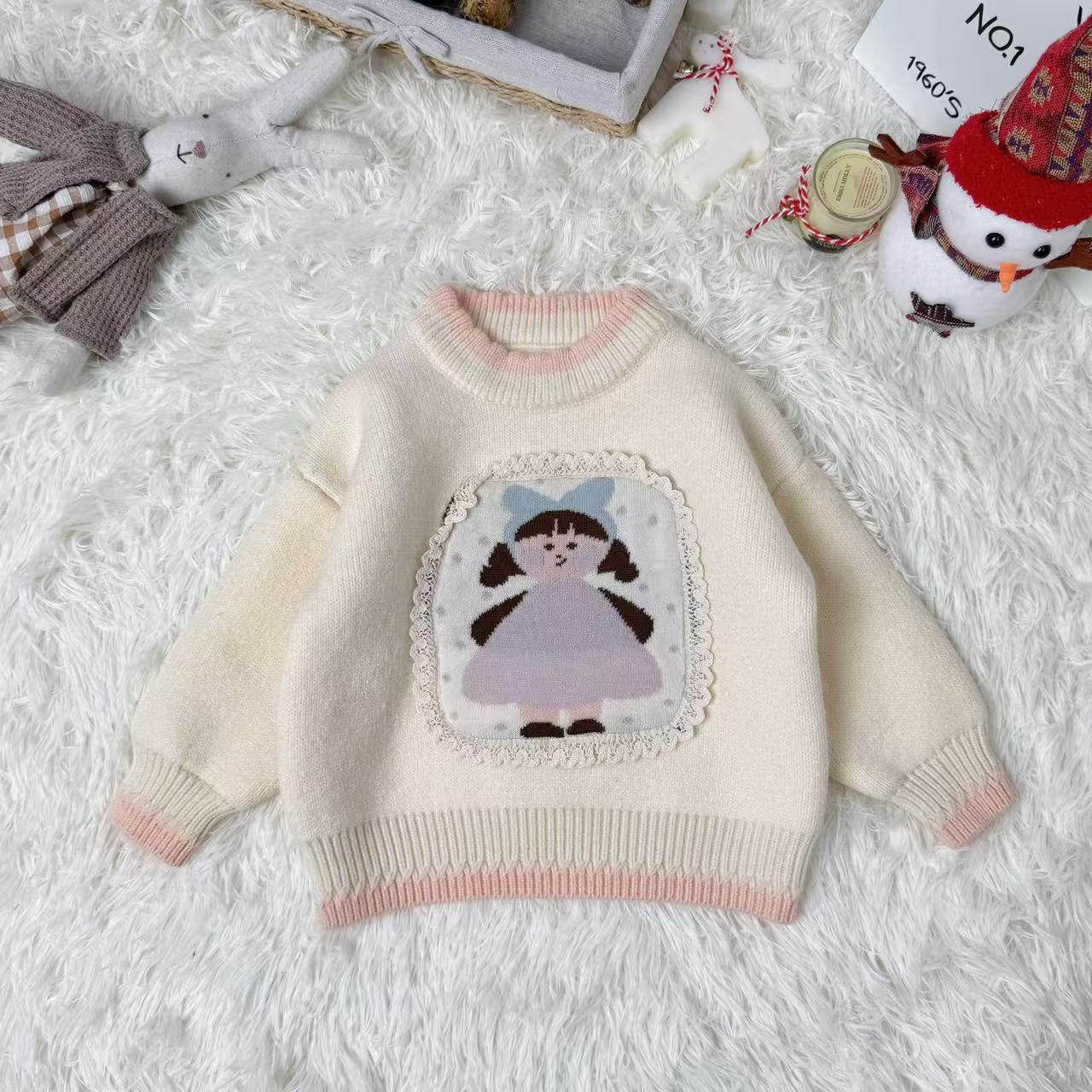 原创设计秋冬针织毛衣套头卡通女孩保暖卫衣甜美可爱男童女童스토어 가기
