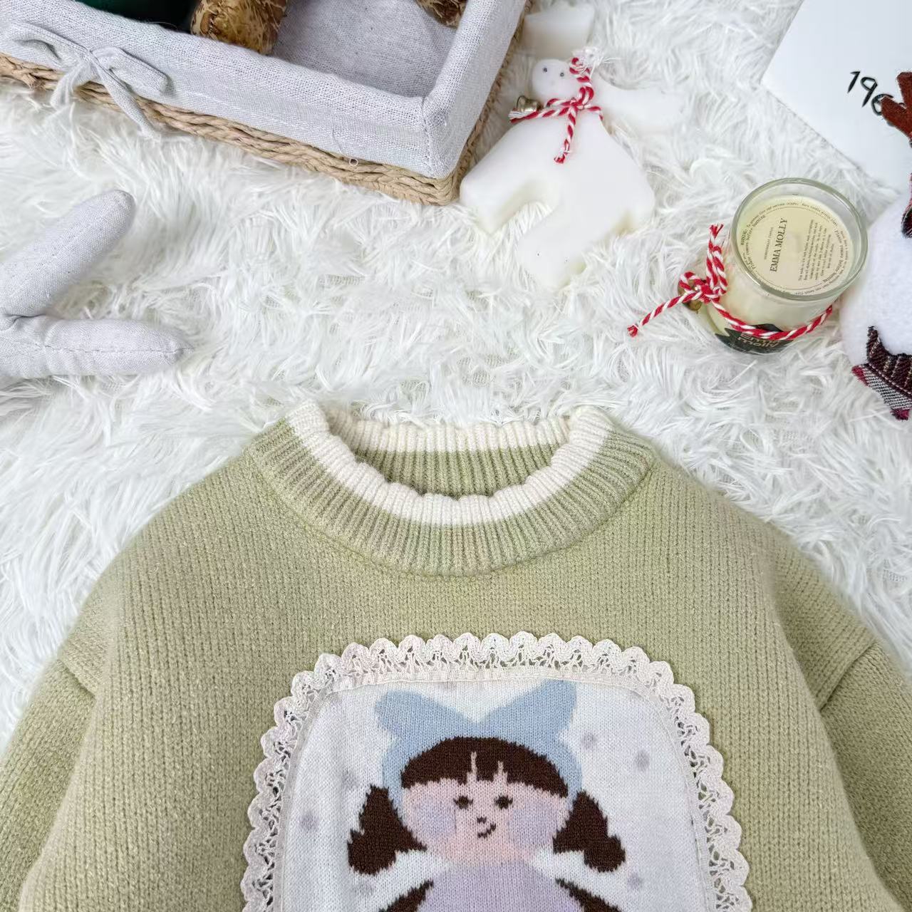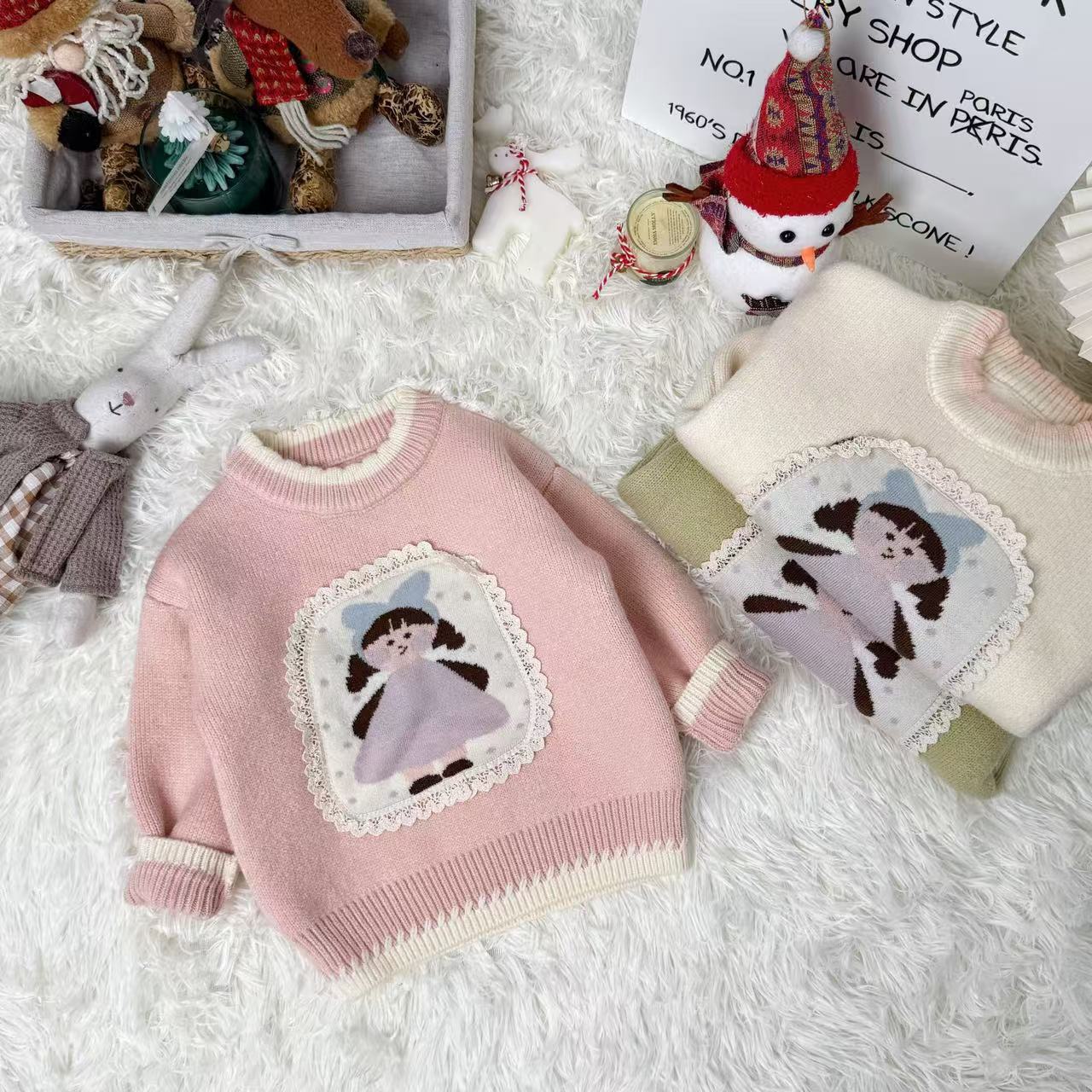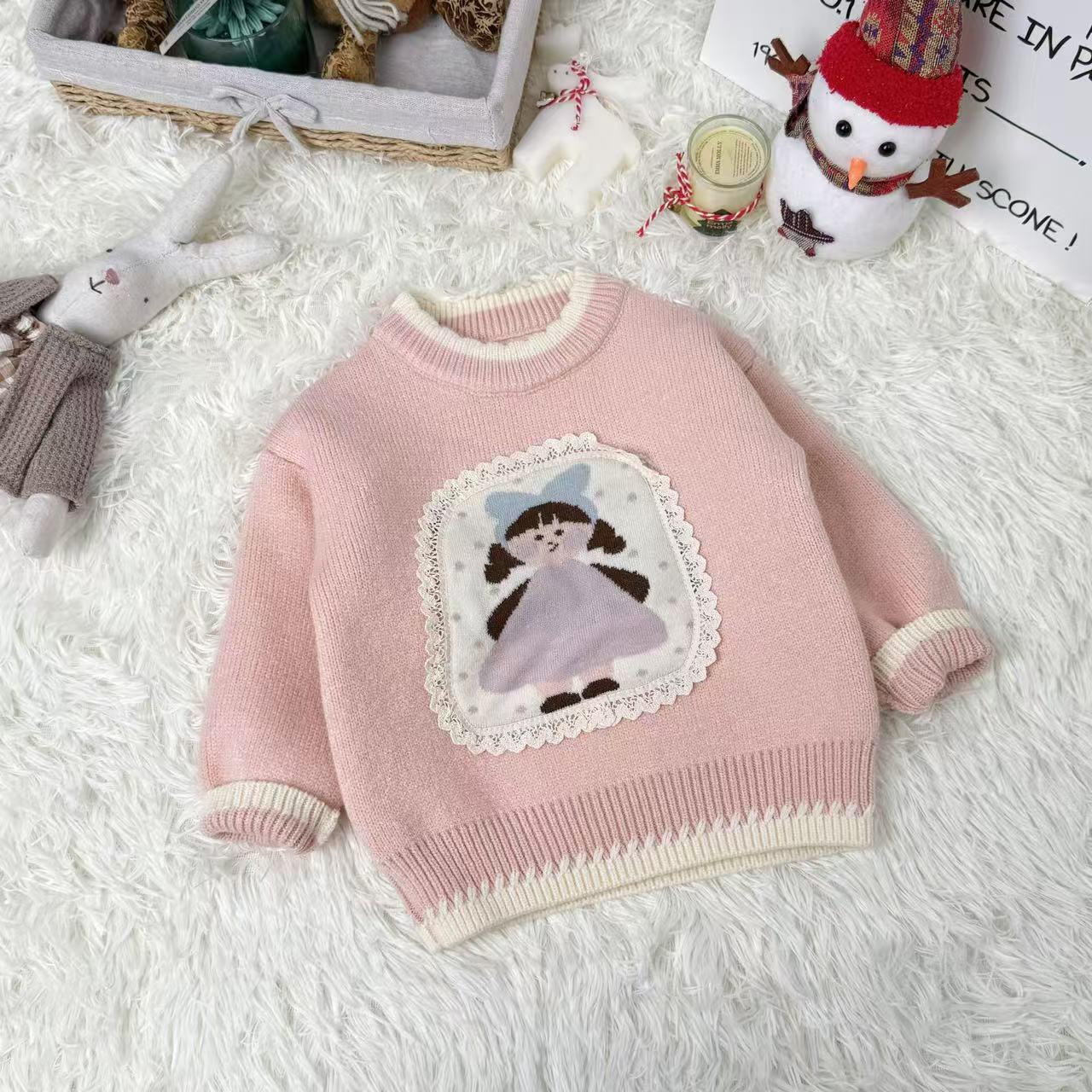 原创设计秋冬针织毛衣套头卡通女孩保暖卫衣甜美可爱男童女童스토어 가기