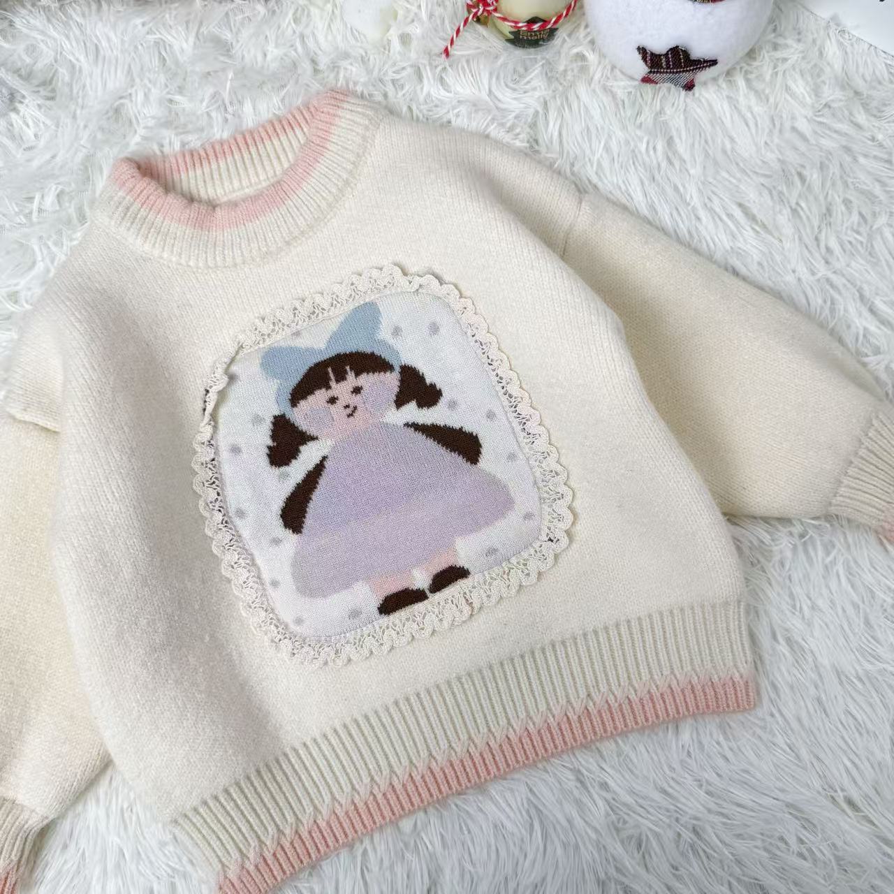 原创设计秋冬针织毛衣套头卡通女孩保暖卫衣甜美可爱男童女童