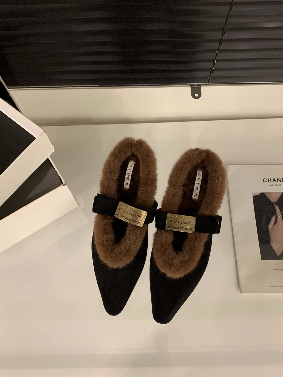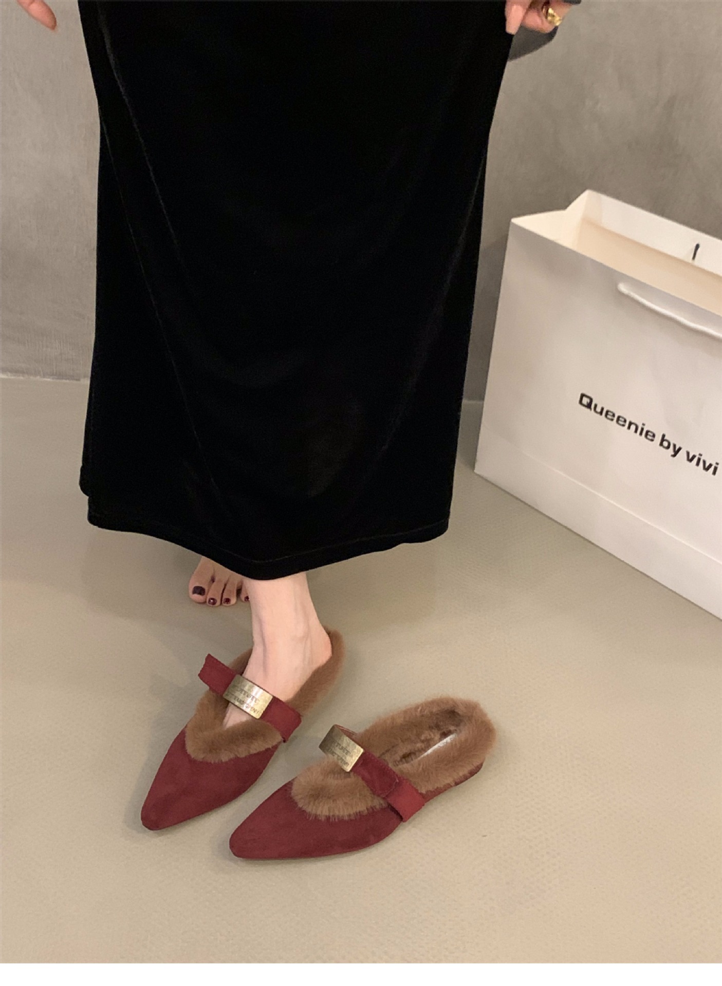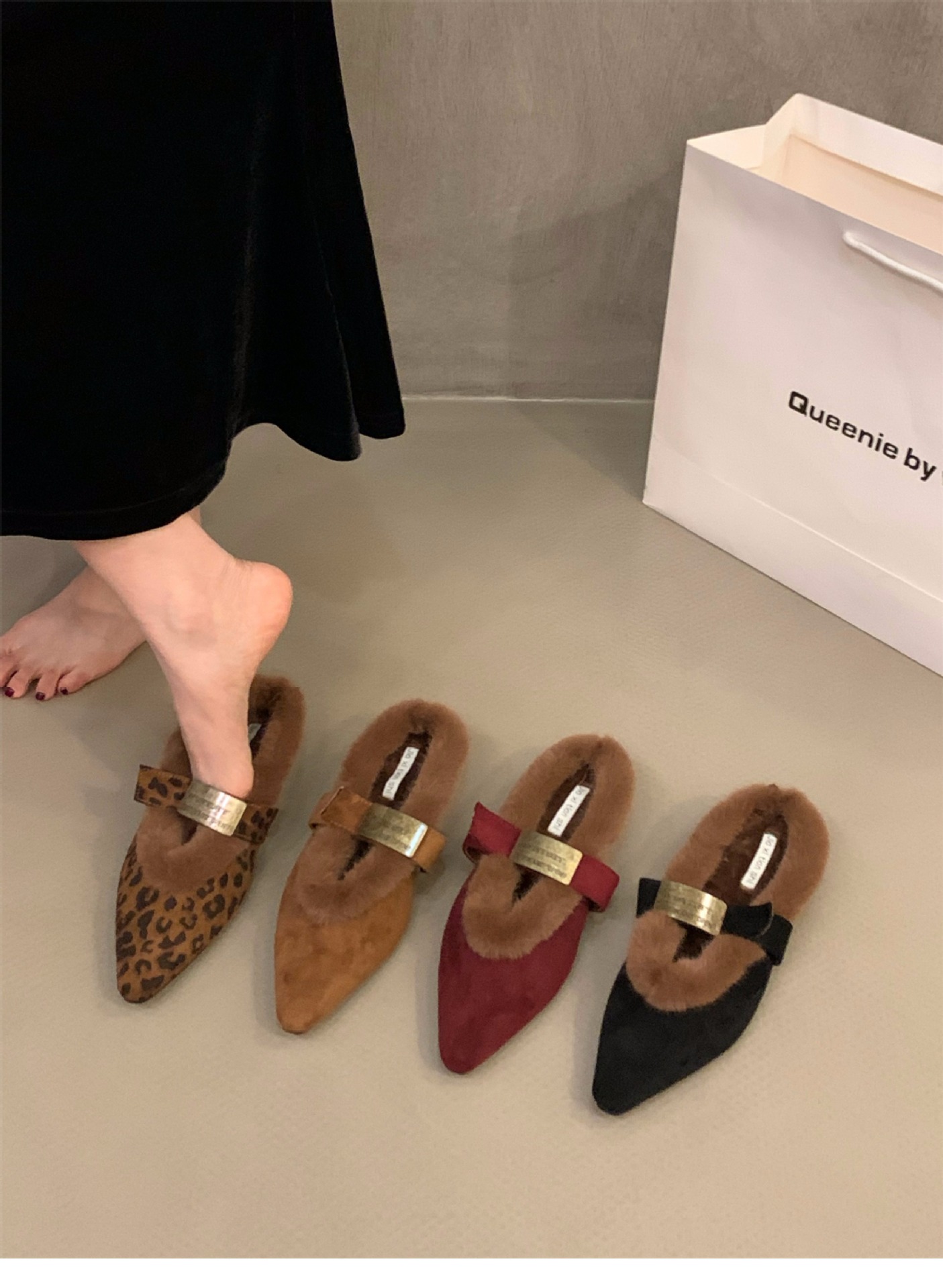 내부 높이 증가 가을 겨울 기모 마오 마오 신발 슬리퍼 여성 신발 외부 2024 새로운 프랑스 레오파드 무늬 하프 신발스토어 가기