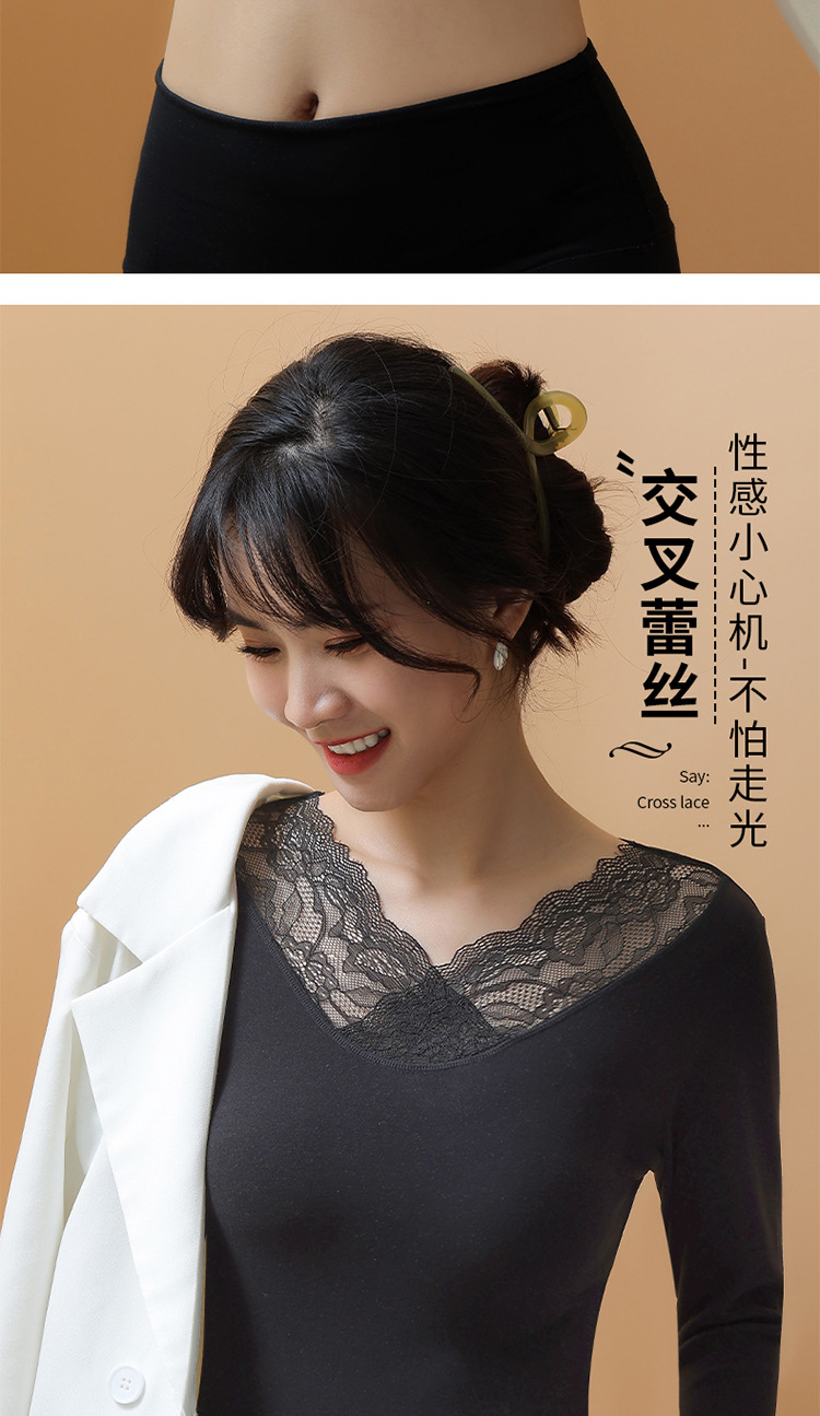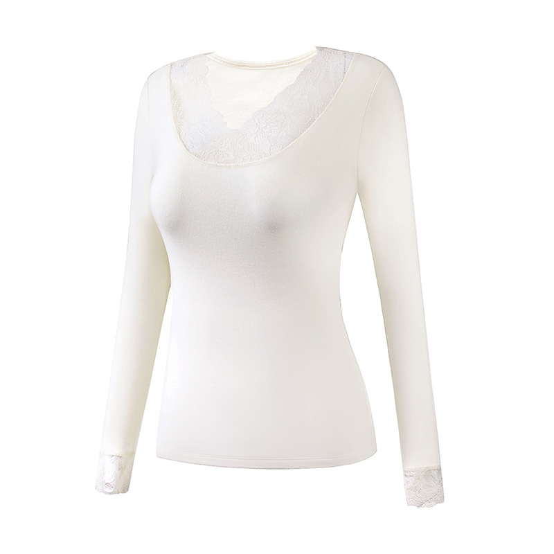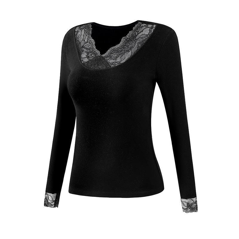 가을과 겨울 섹시 레이스 따뜻한 긴팔 속옷 열 보관 가슴 패드 착용이없는 브래지어 외부 착용 내부 탑 여성용