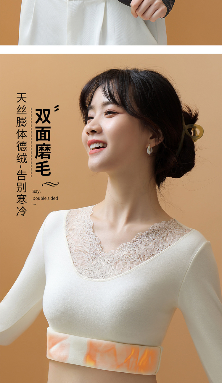 가을과 겨울 섹시 레이스 따뜻한 긴팔 속옷 열 보관 가슴 패드 착용이없는 브래지어 외부 착용 내부 탑 여성용스토어 가기