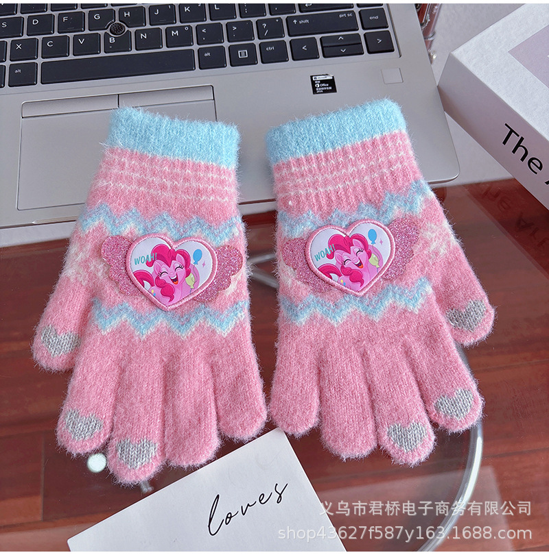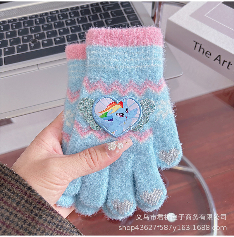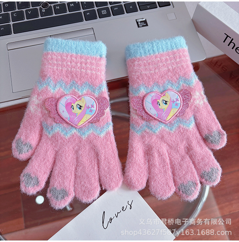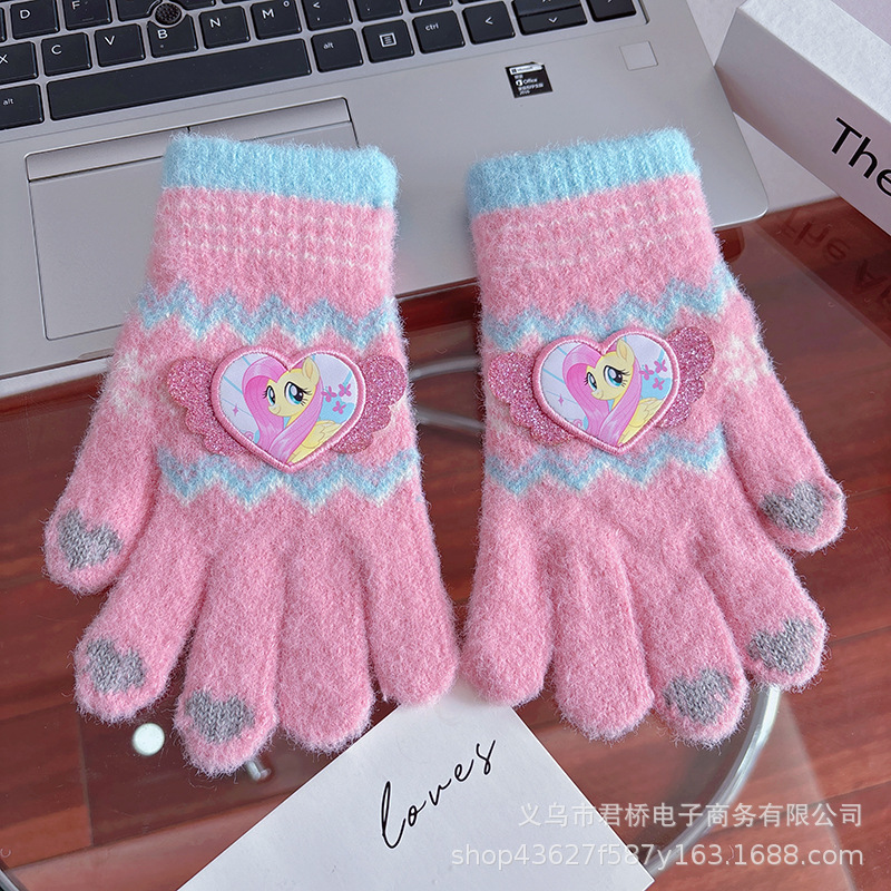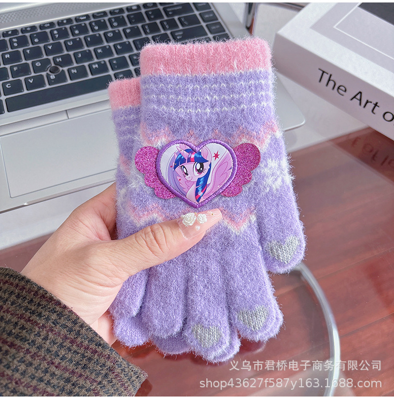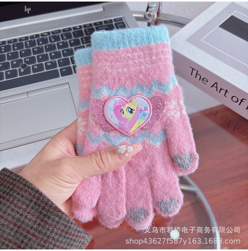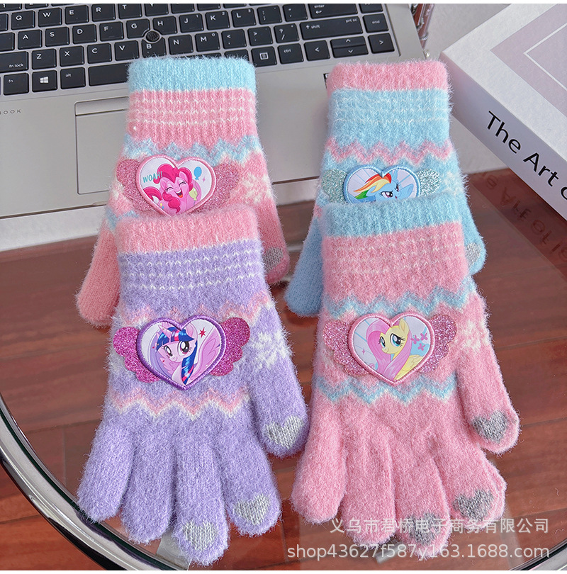 새로운 어린이 장갑 포니 폴리 정품 소녀 귀여운 만화 5 손가락 소녀 울 니트 터치 스크린 손가락