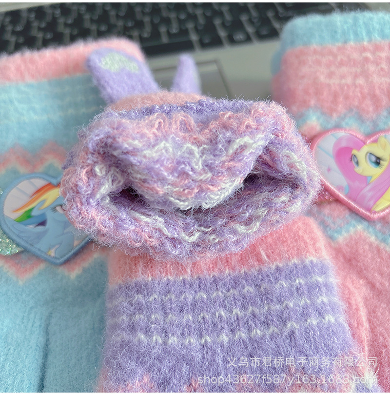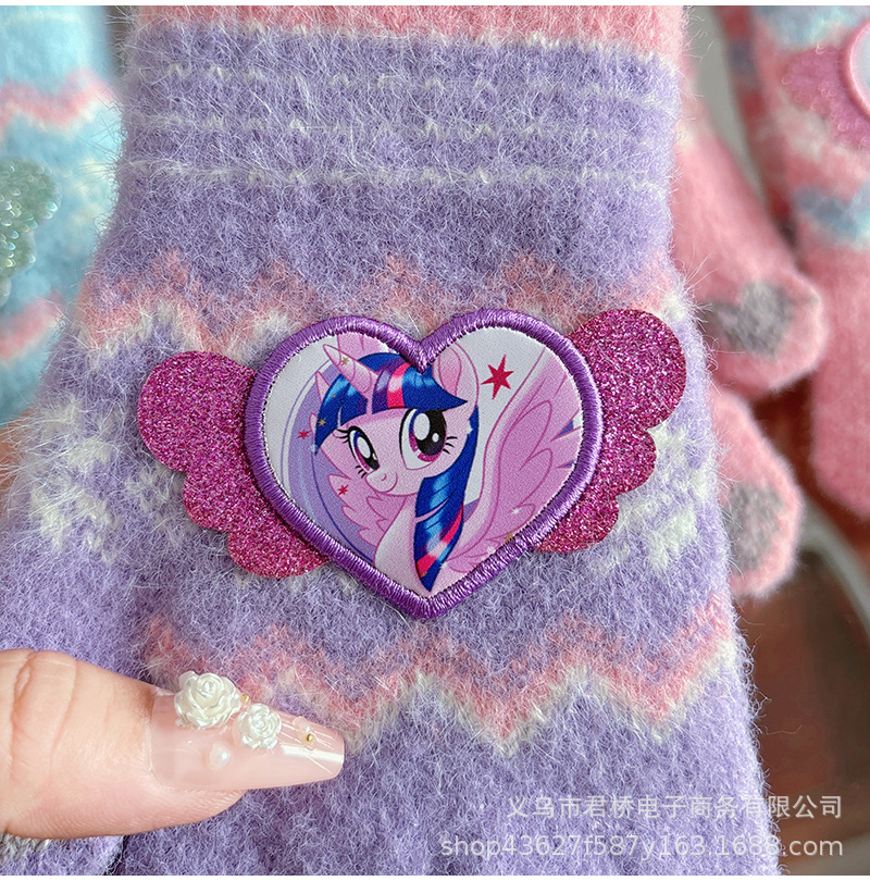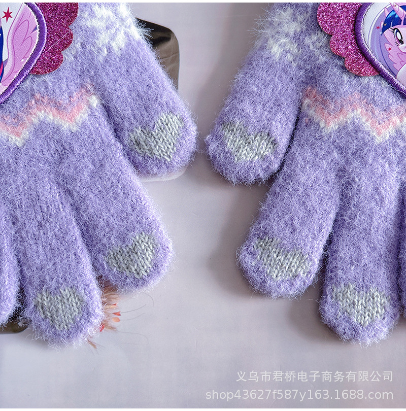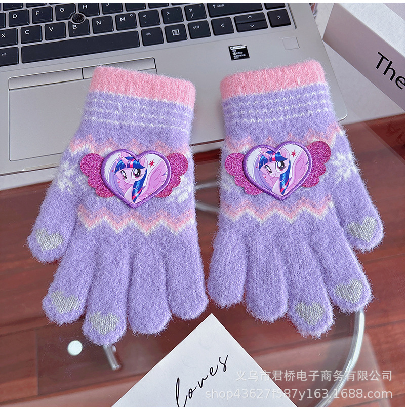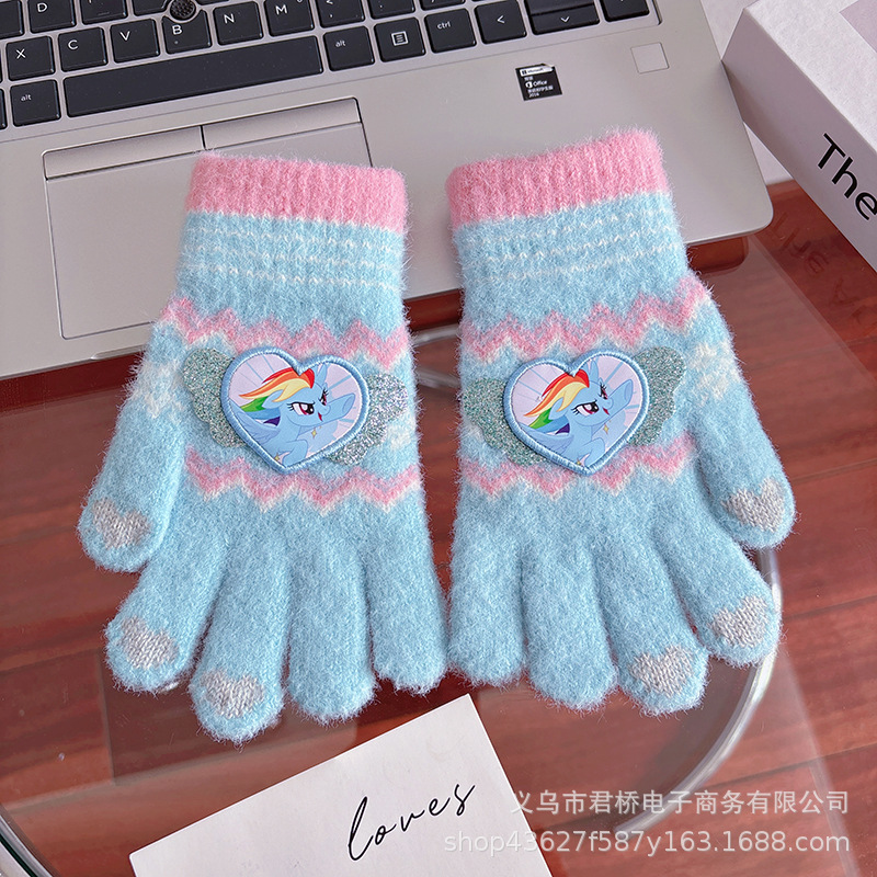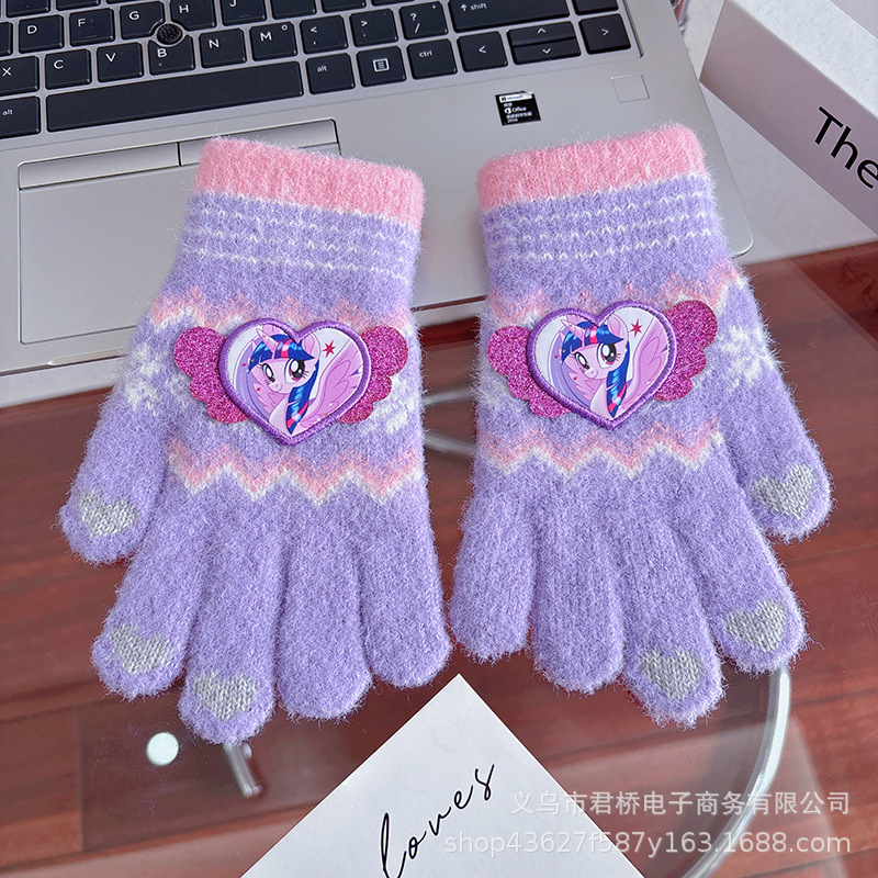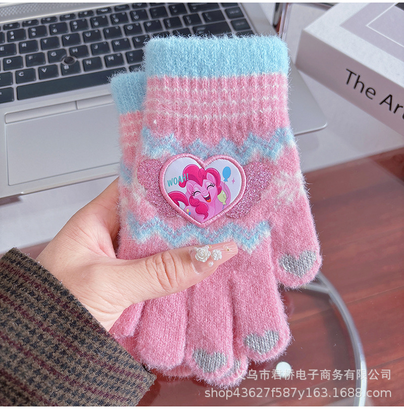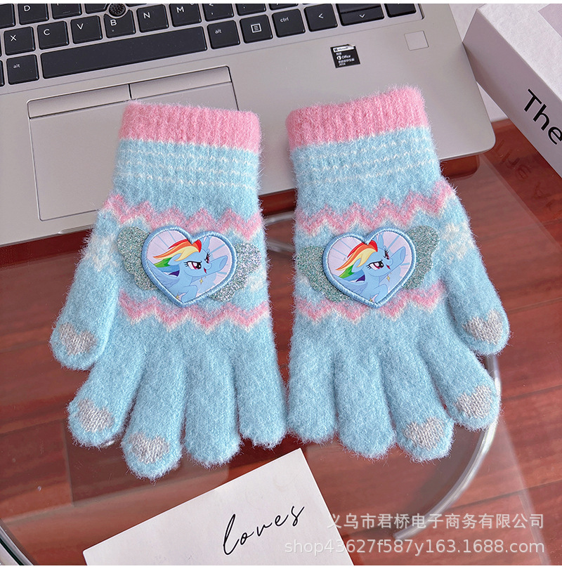 새로운 어린이 장갑 포니 폴리 정품 소녀 귀여운 만화 5 손가락 소녀 울 니트 터치 스크린 손가락