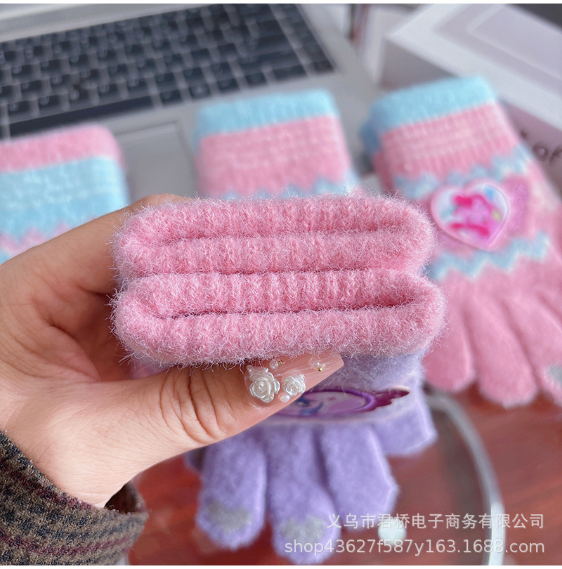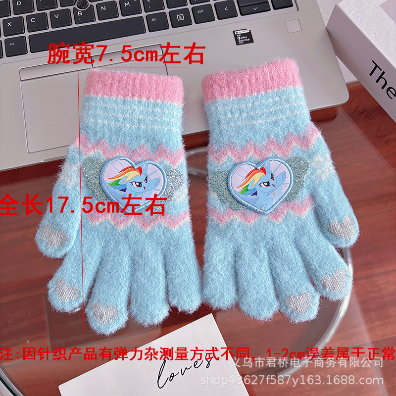 새로운 어린이 장갑 포니 폴리 정품 소녀 귀여운 만화 5 손가락 소녀 울 니트 터치 스크린 손가락스토어 가기