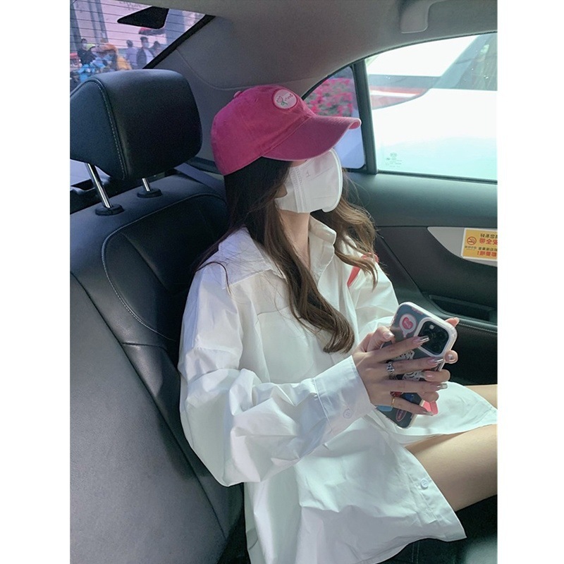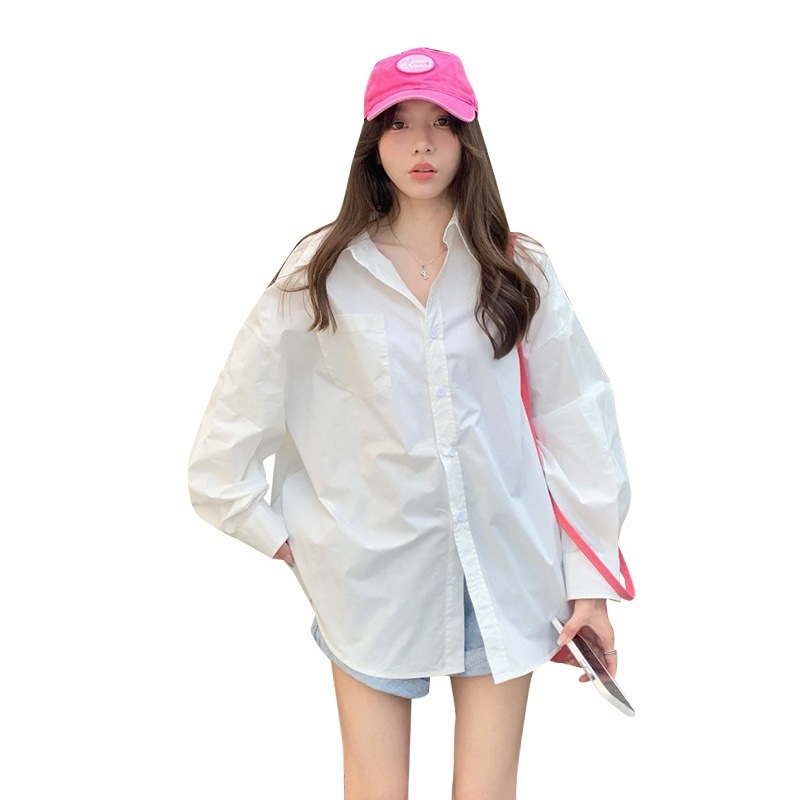 한국식 올매치 미디 화이트 셔츠 여자 2024 봄과 가을 새로운 캐주얼 느슨한 아우터 셔츠 긴 소매 탑스토어 가기