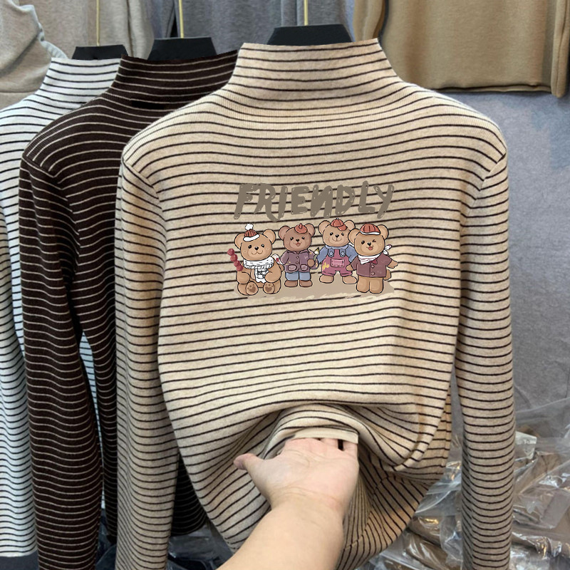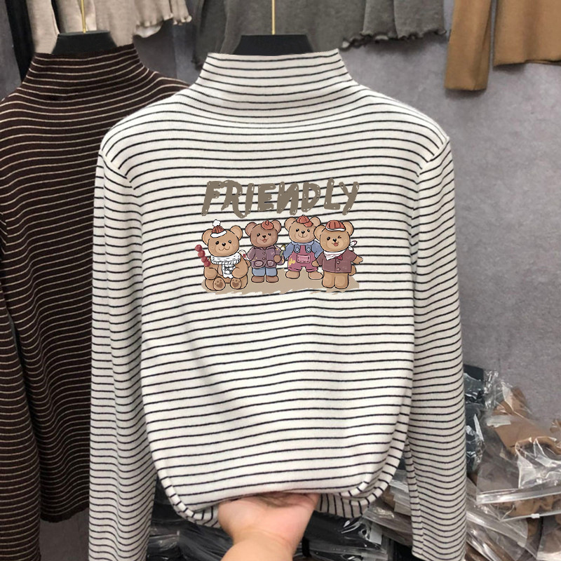 T2544 # 남성과 여성의 어린이 양털베이스 셔츠 가을 및 겨울 착용 절반 높은 칼라 중 큰 어린이 가을 줄무늬 긴 소매 따뜻한 내복스토어 가기