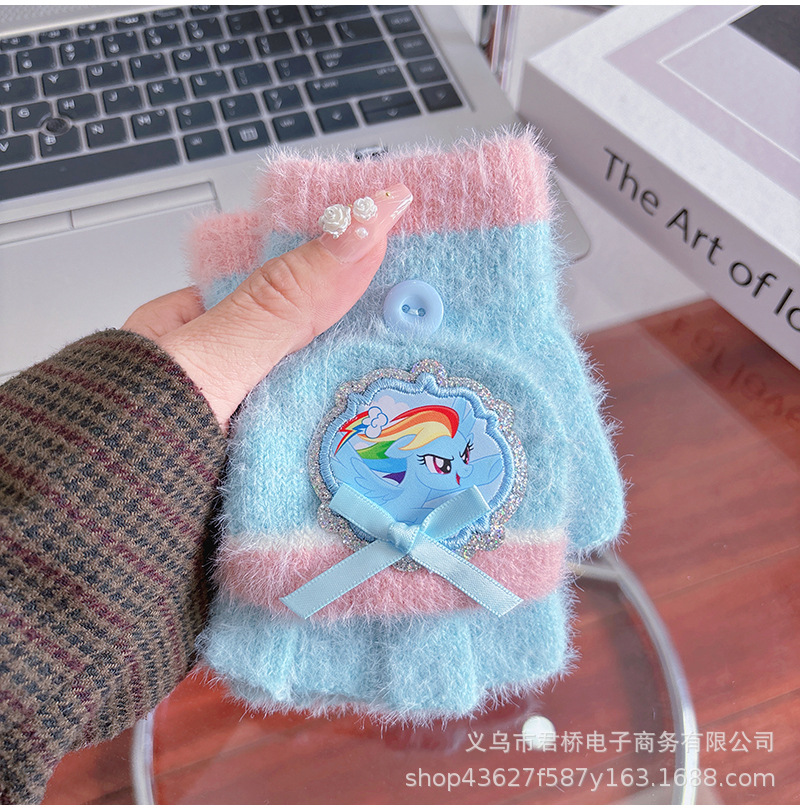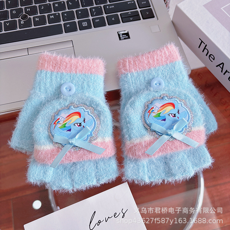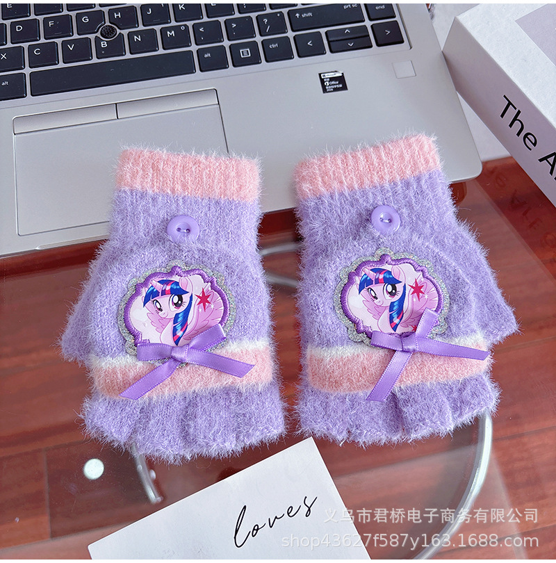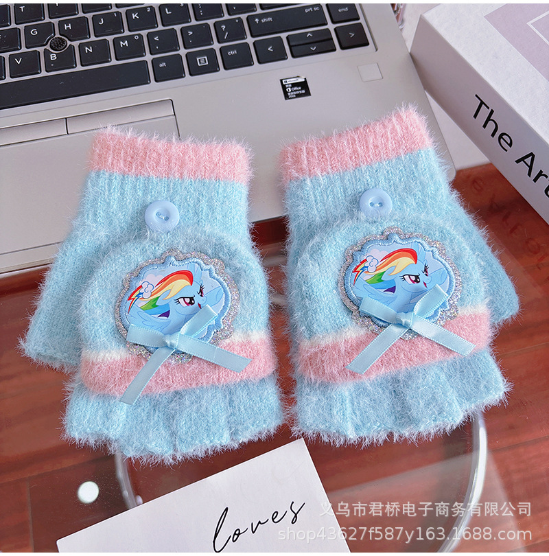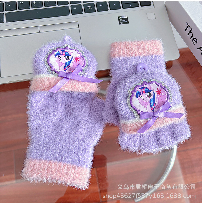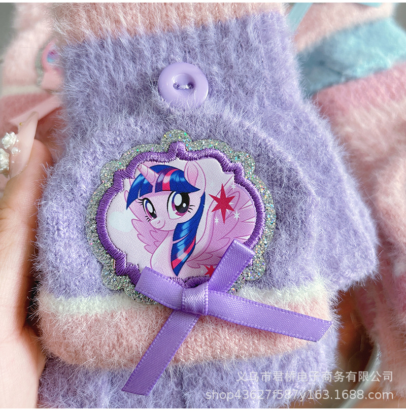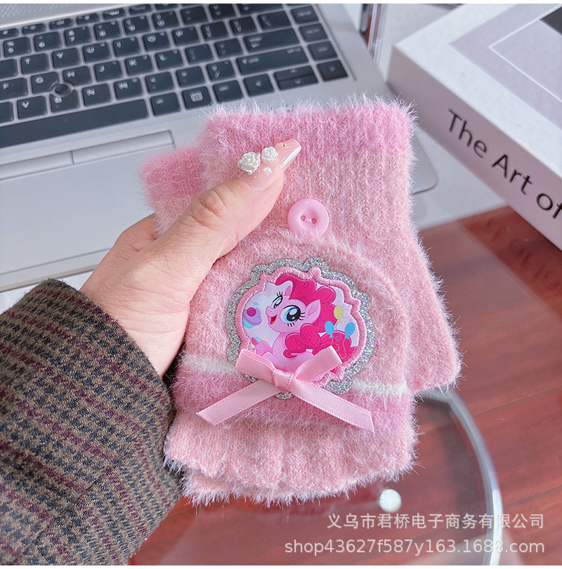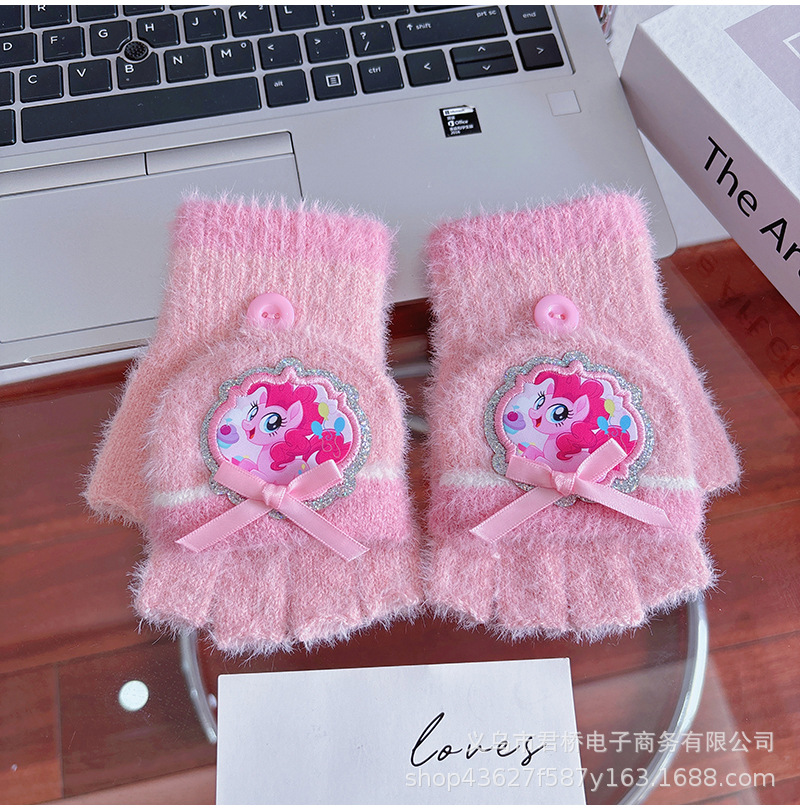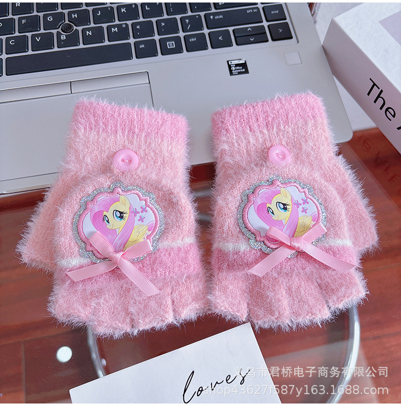어린이 하프 핑거 플립 장갑 포니 폴리 정품 소녀 만화 손가락 학생들은 겨울 방한과 따뜻한 보관을 씁니다.스토어 가기