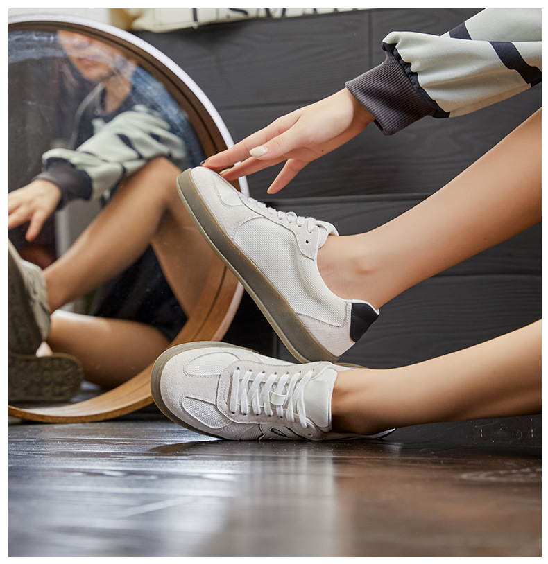 정품 가죽 데쿠프 신발 2025 가을 신상 두꺼운 밑창 키높이 아가니 신발 캐주얼 화이트 슈즈 여성용 다용도 운동화스토어 가기