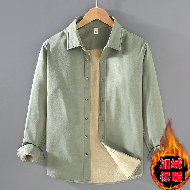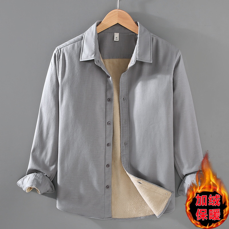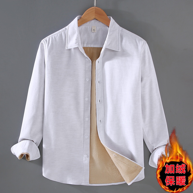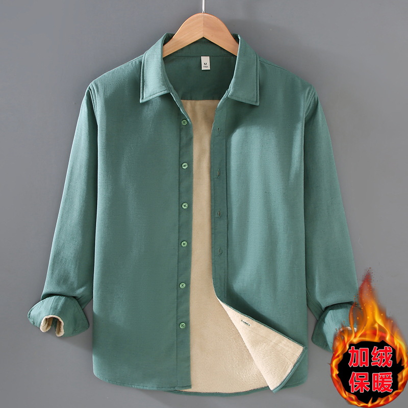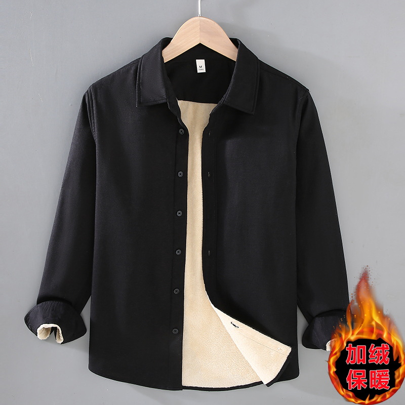 2382 겨울 새 스타일 두꺼운 기모 긴팔 옷깃 캐주얼 셔츠 남자 올매치 느슨한 청소년 따뜻한 셔츠
