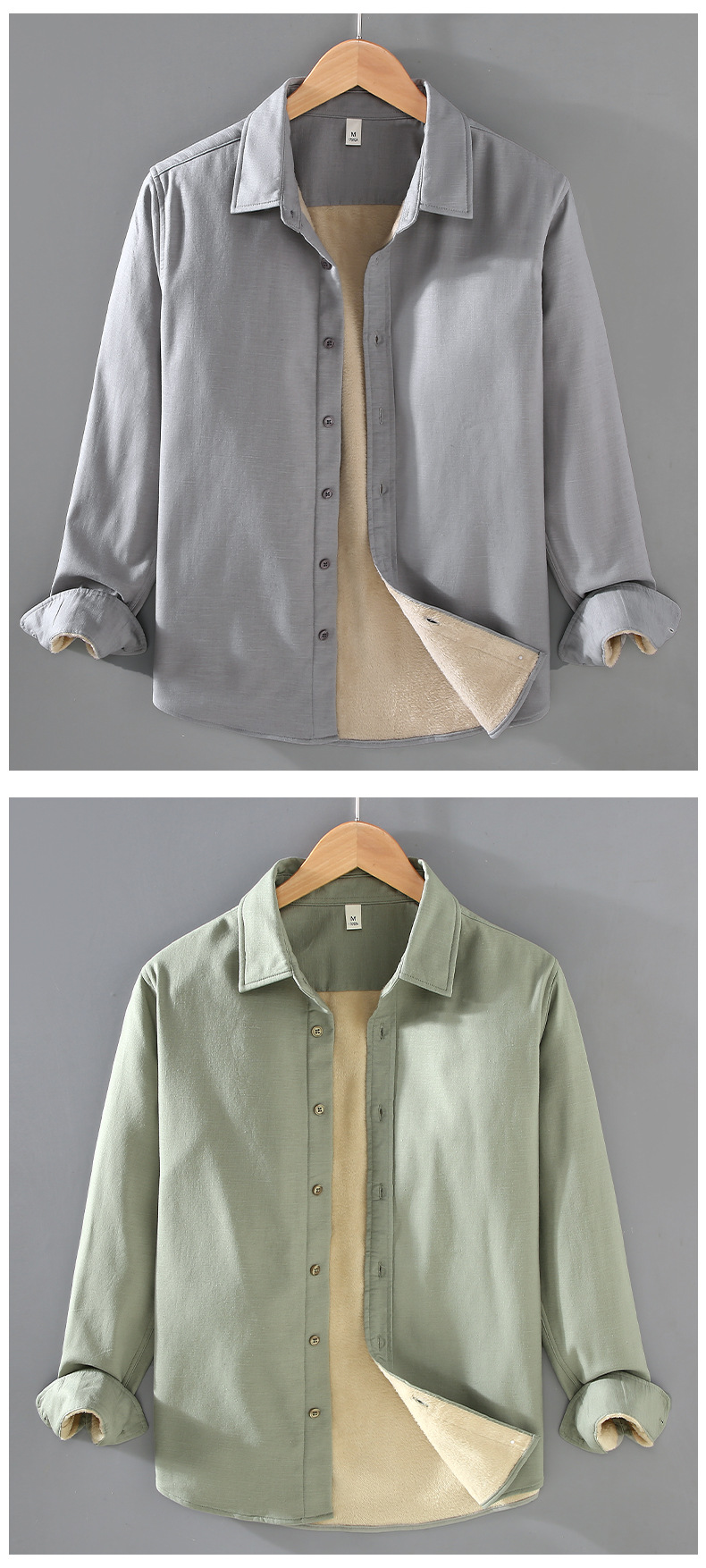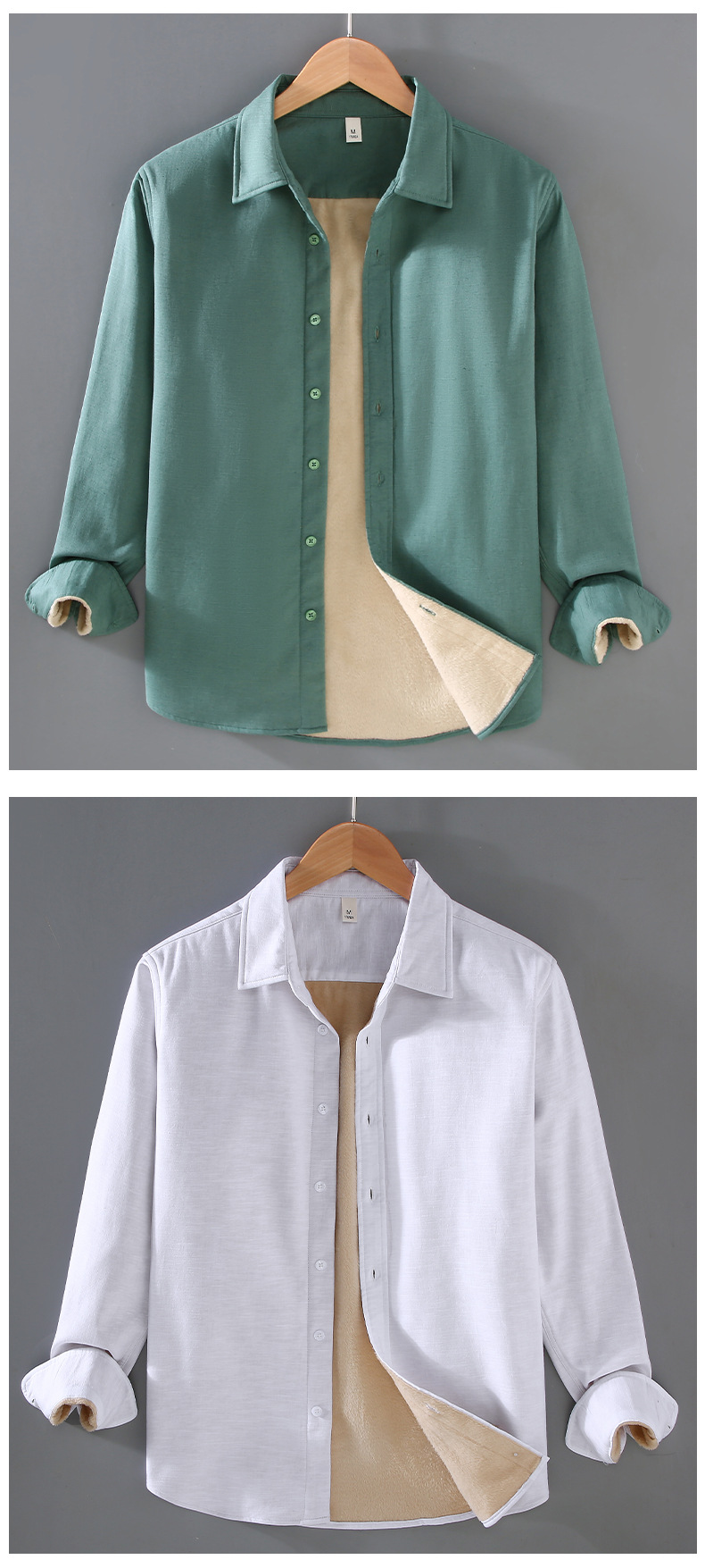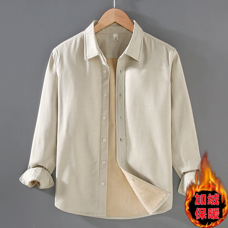 2382 겨울 새 스타일 두꺼운 기모 긴팔 옷깃 캐주얼 셔츠 남자 올매치 느슨한 청소년 따뜻한 셔츠
