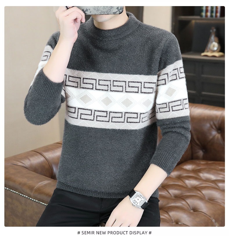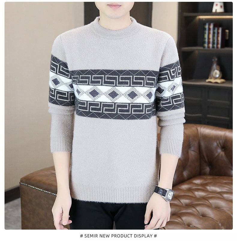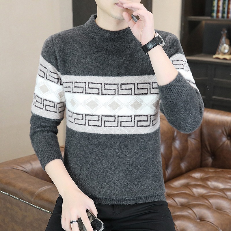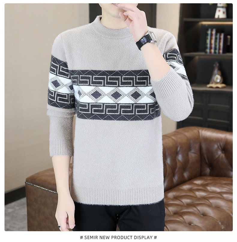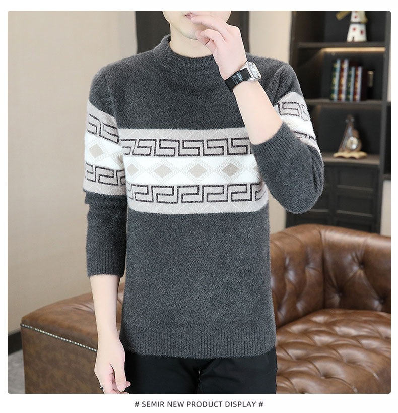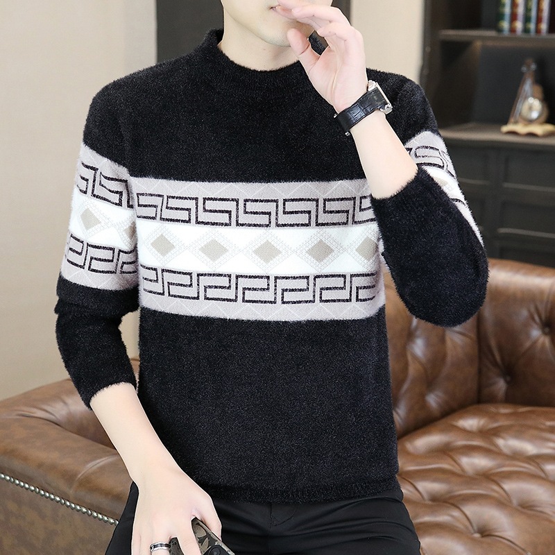 가을과 겨울 새로운 패션 스웨터 밍크 플러프 두꺼운 따뜻한 잘 생긴 베이스 남성 크루 넥 스웨터스토어 가기