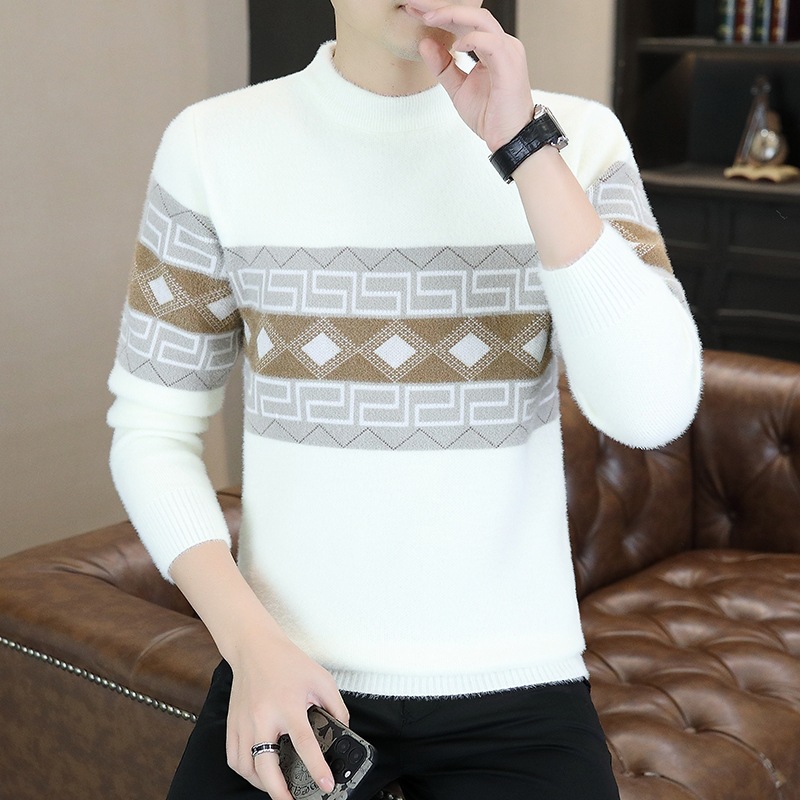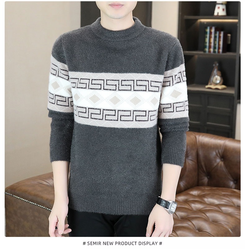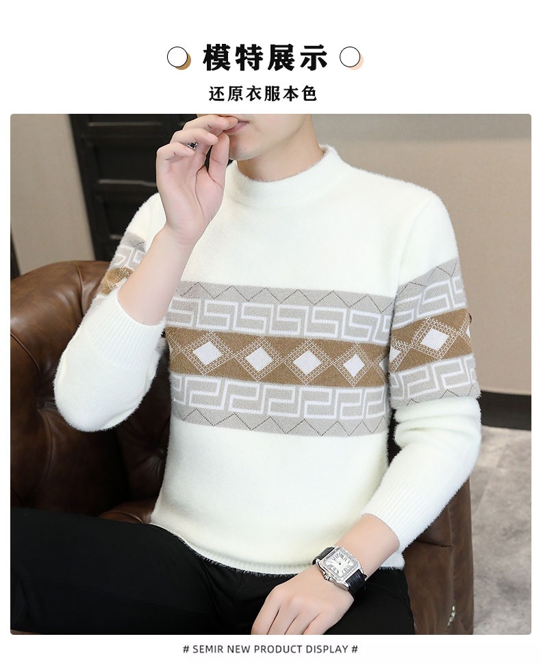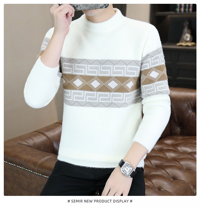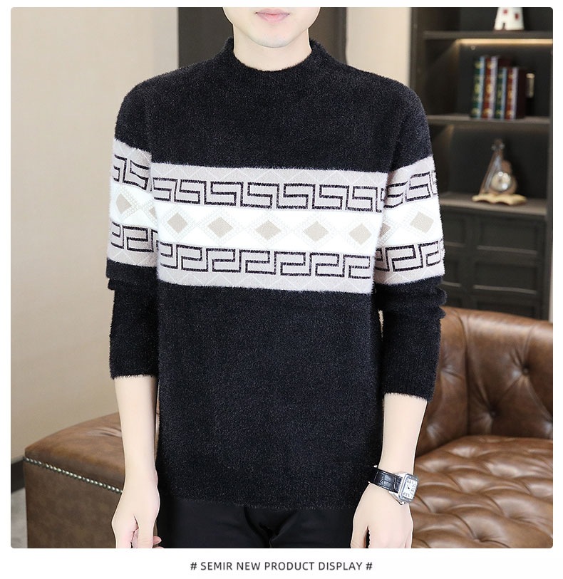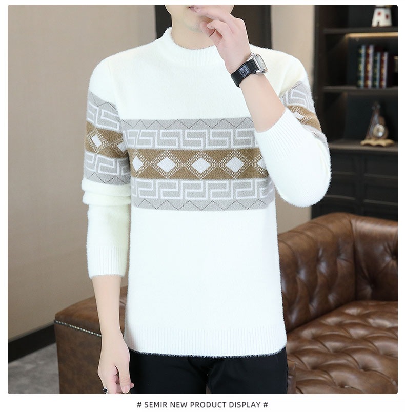가을과 겨울 새로운 패션 스웨터 밍크 플러프 두꺼운 따뜻한 잘 생긴 베이스 남성 크루 넥 스웨터스토어 가기