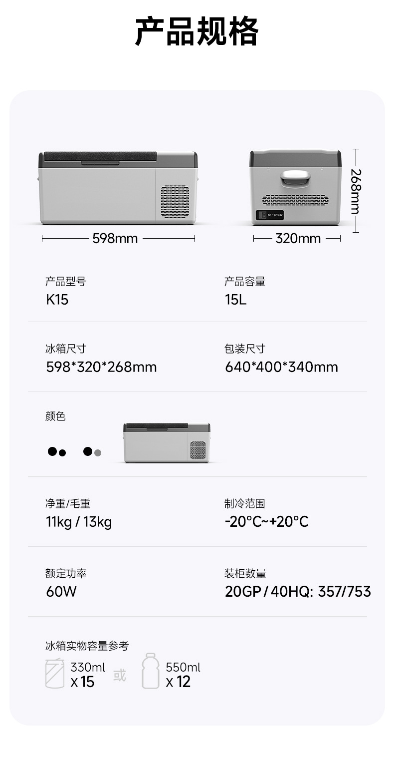 15리터 경제형 컴프레서 차량용 냉장고, 차량 및 가정 겸용 캠핑 박스, 야외 보온 박스, 휴대용스토어 가기