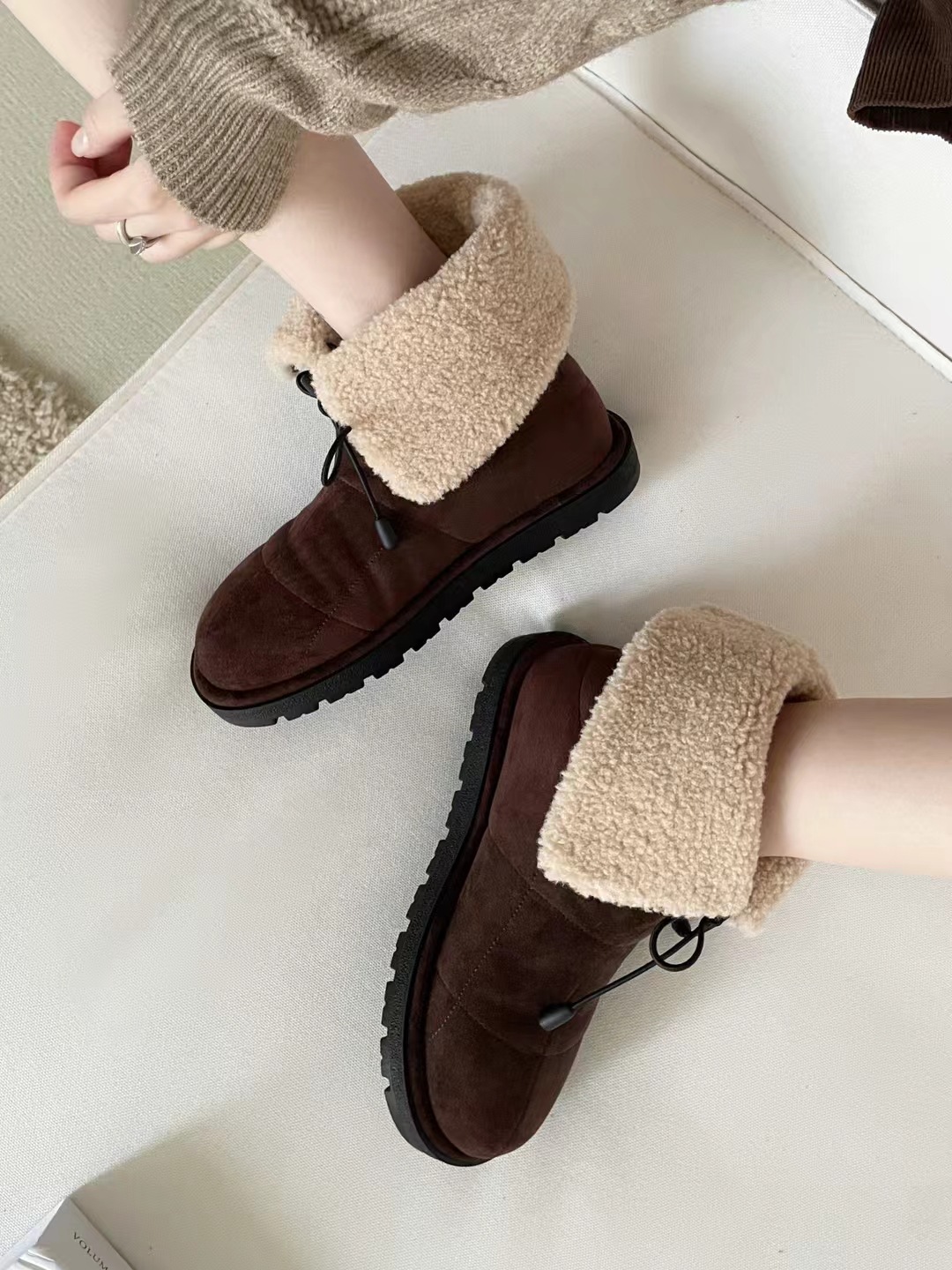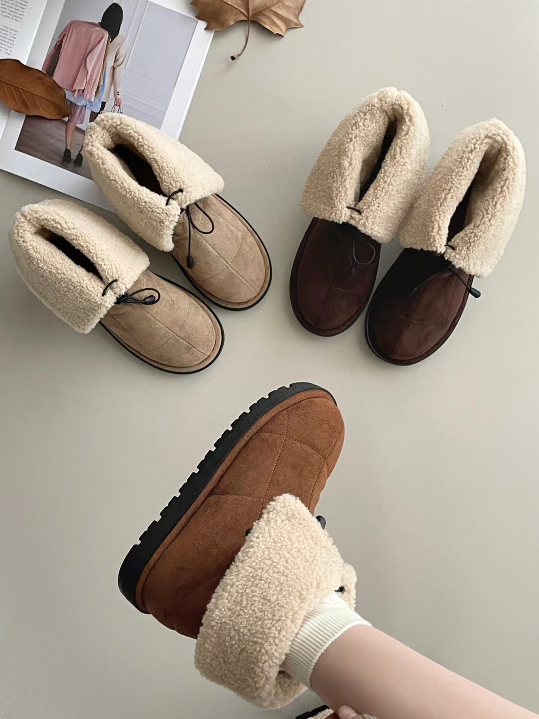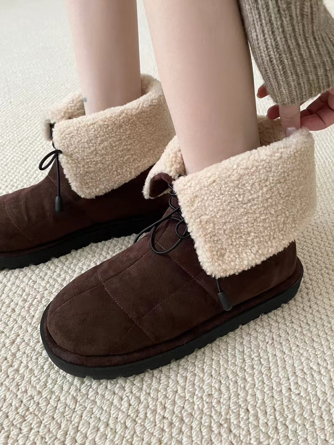 2024 년 겨울 새 도착 스노우 부츠 여자 스웨이드 따뜻한 가짜 양모 올 매치 미드 실린더 투웨어 라운드 발가락 울 부츠스토어 가기