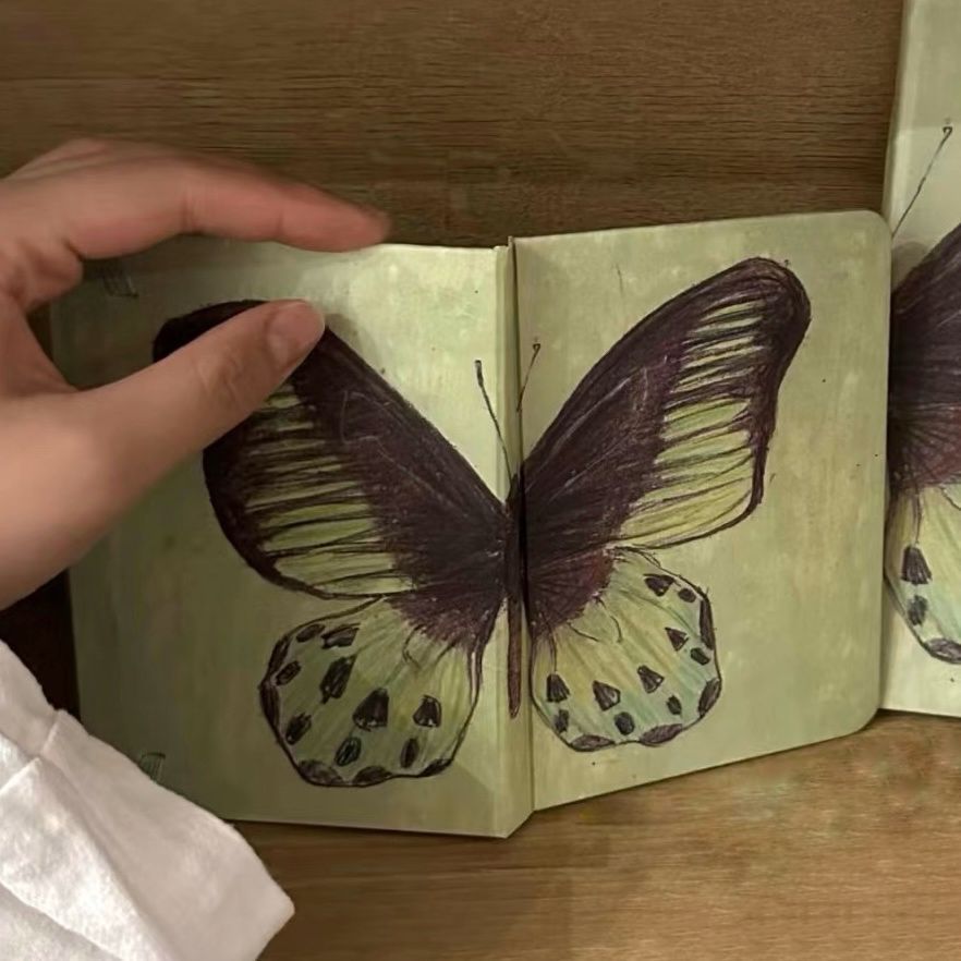 레트로 프린트 민트 그린 나비 수첩 학생 다기능 빈 내부 페이지 심플 스타일 일기 A5 노트스토어 가기