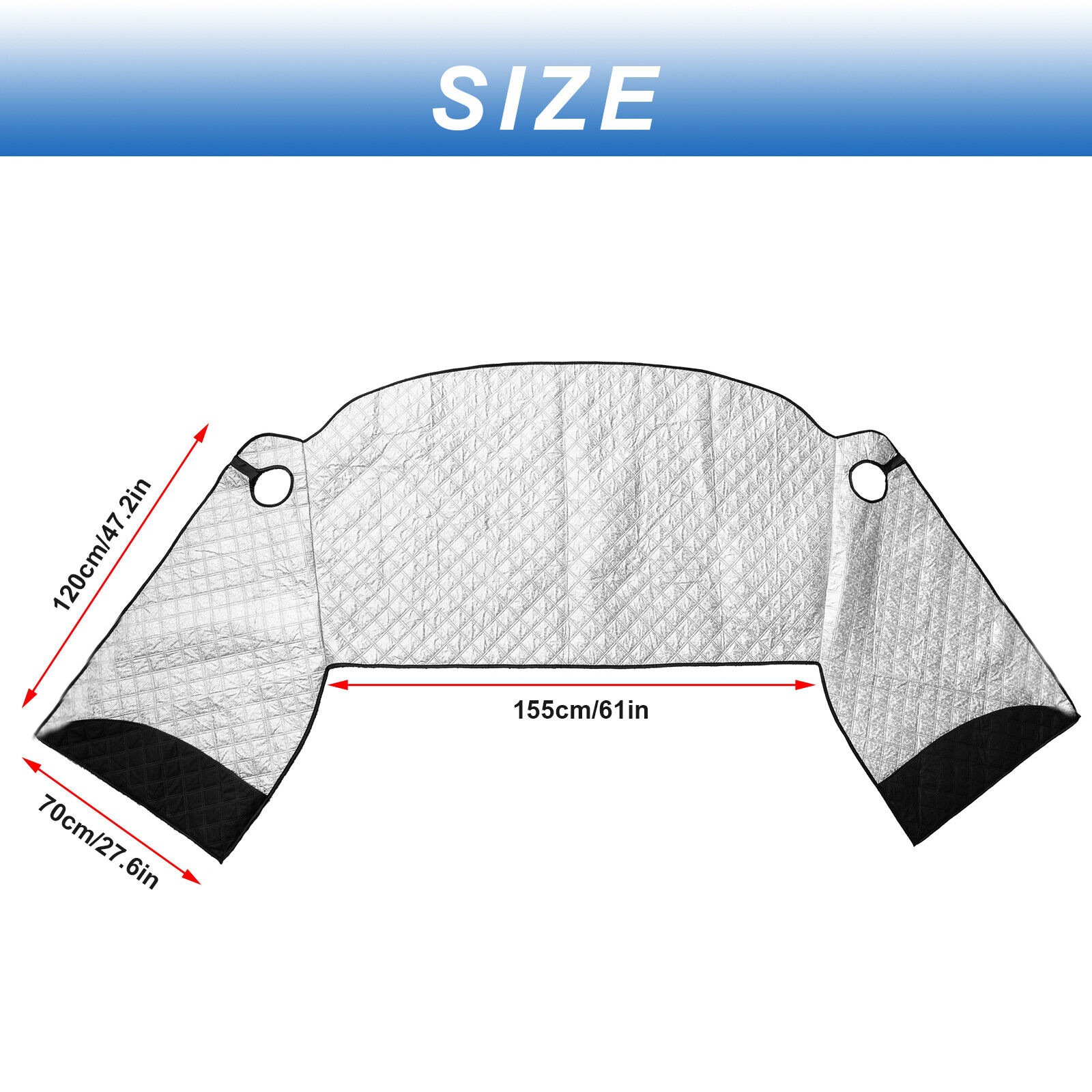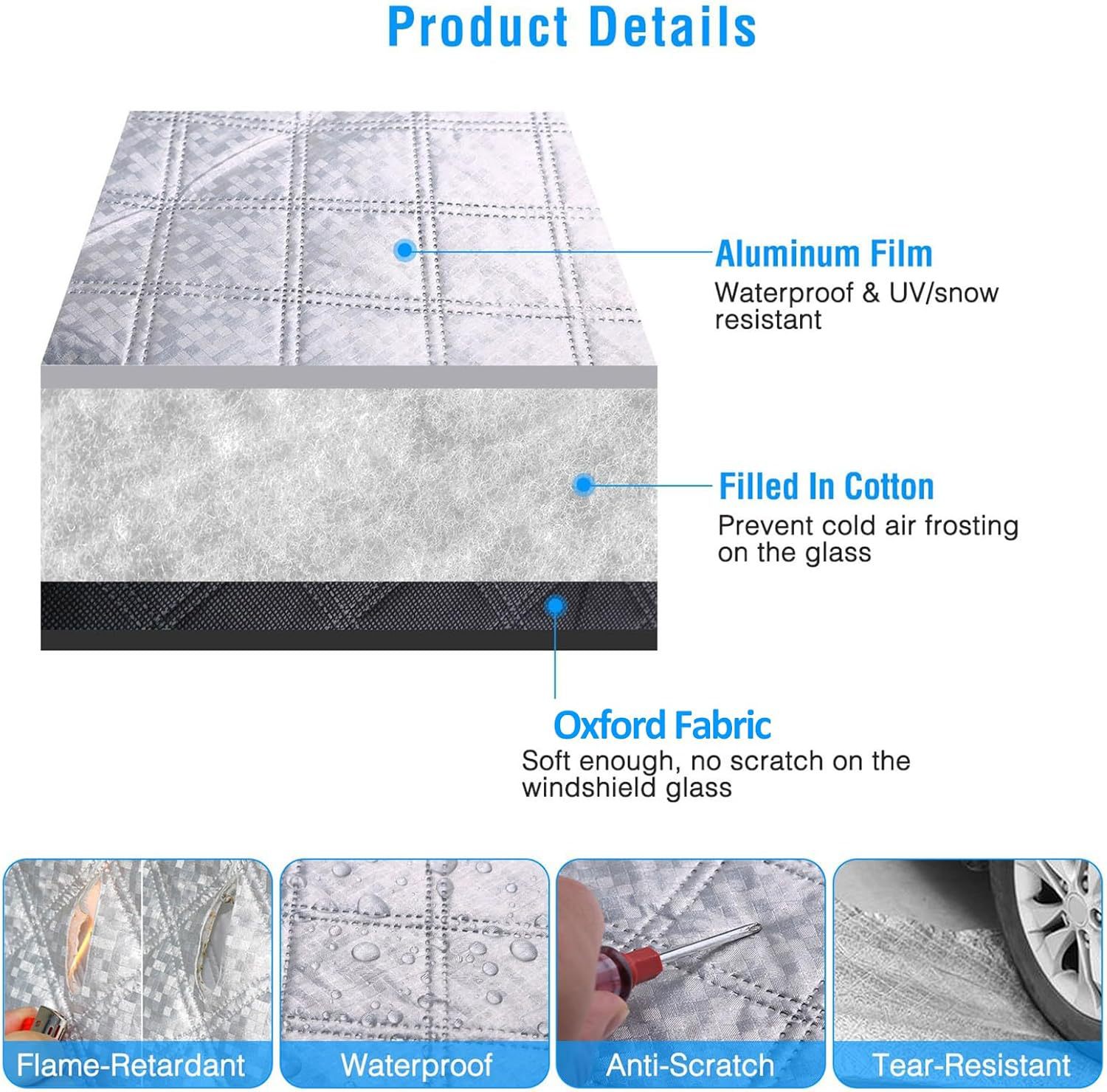 • 优质材质:由pe铝膜和棉+无纺布制成,防水、防污。很好地保护您的汽车挡风玻璃免受阳光、雪、霜、灰尘、划痕、污垢等的影响