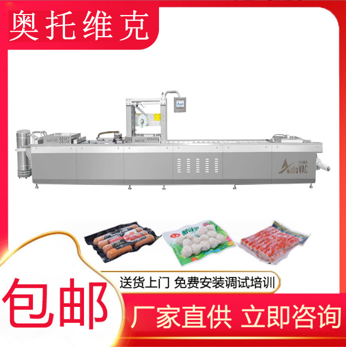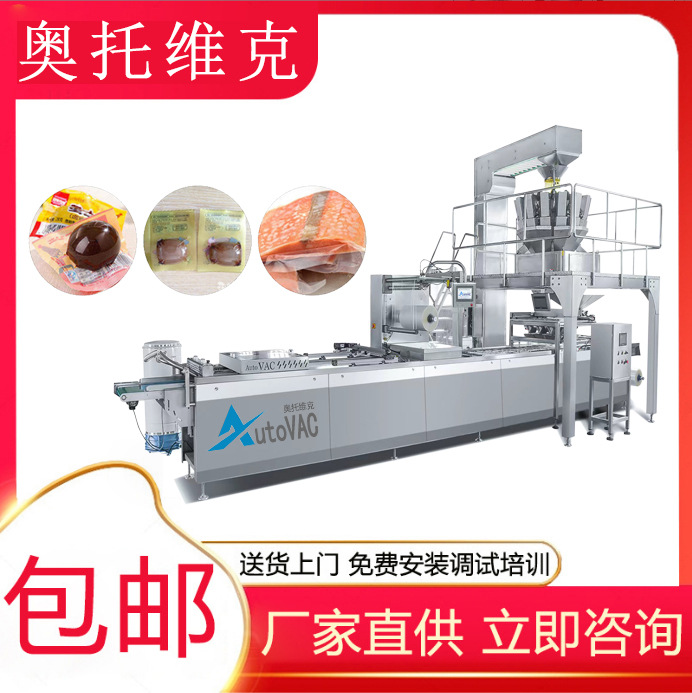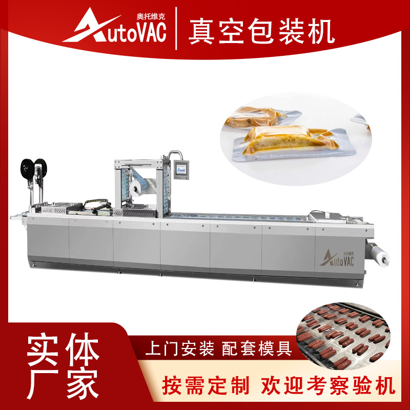 구이 오리와 닭고기 연속 스트레치 필름 진공 포장기 흰색 스트립 닭고기와 오리 완전 자동 진공 포장 장비