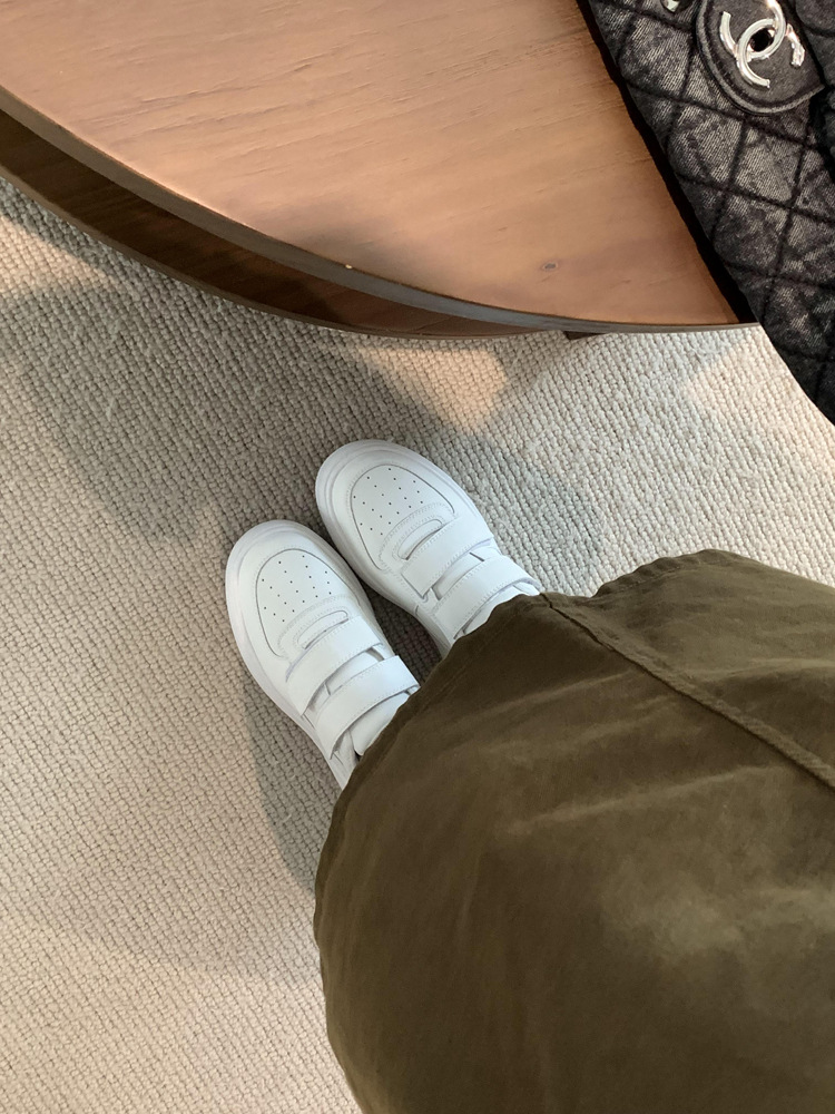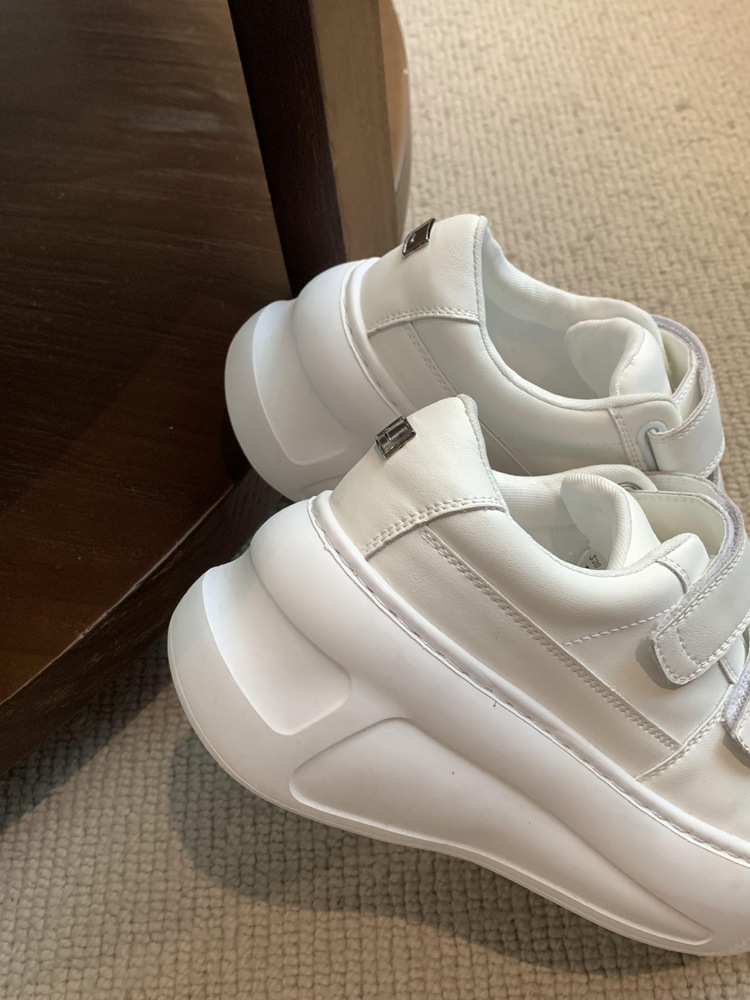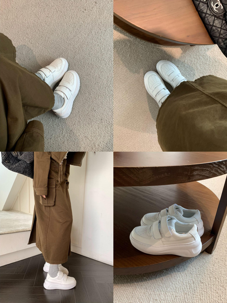 두꺼운 바닥 후크와 루프 작은 흰색 신발 여성의 2024 가을 새로운 향상 캐주얼 머핀 운동화 다용도 보드 신발스토어 가기