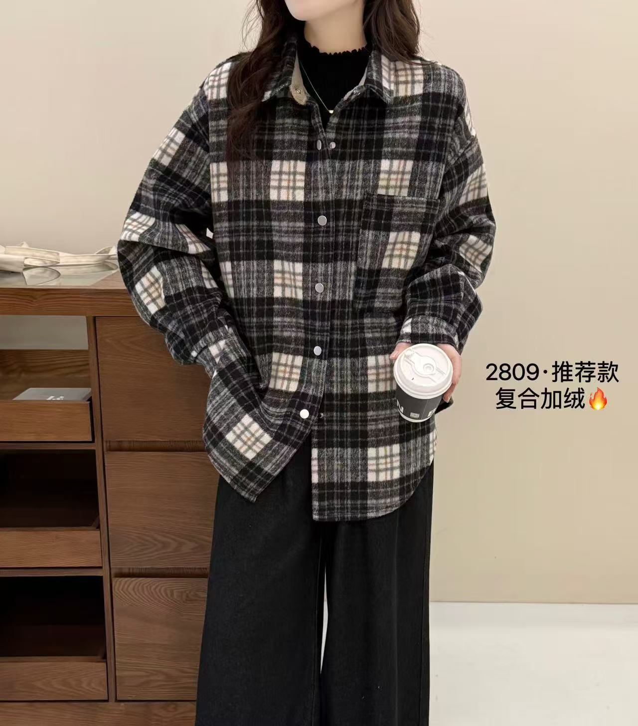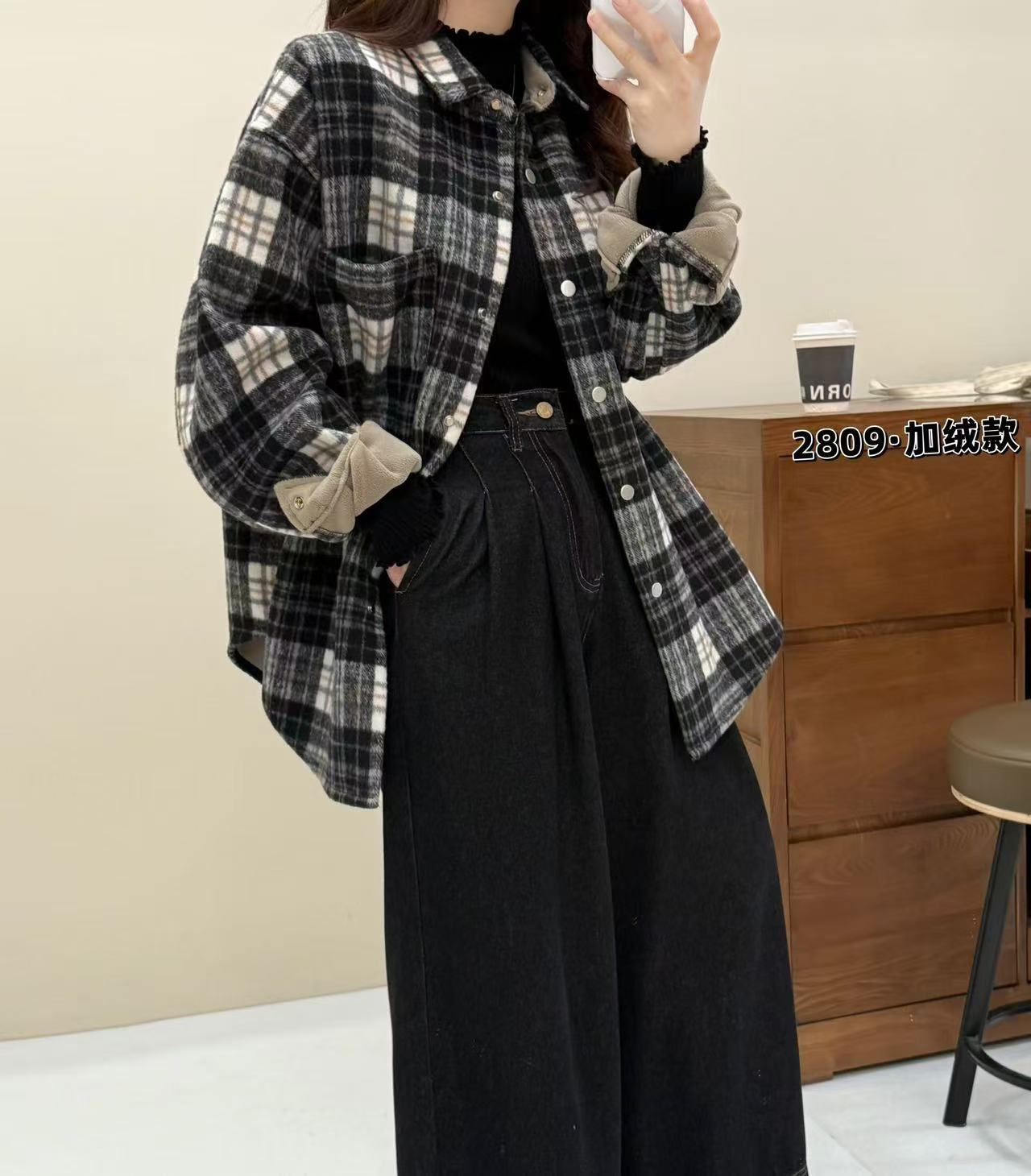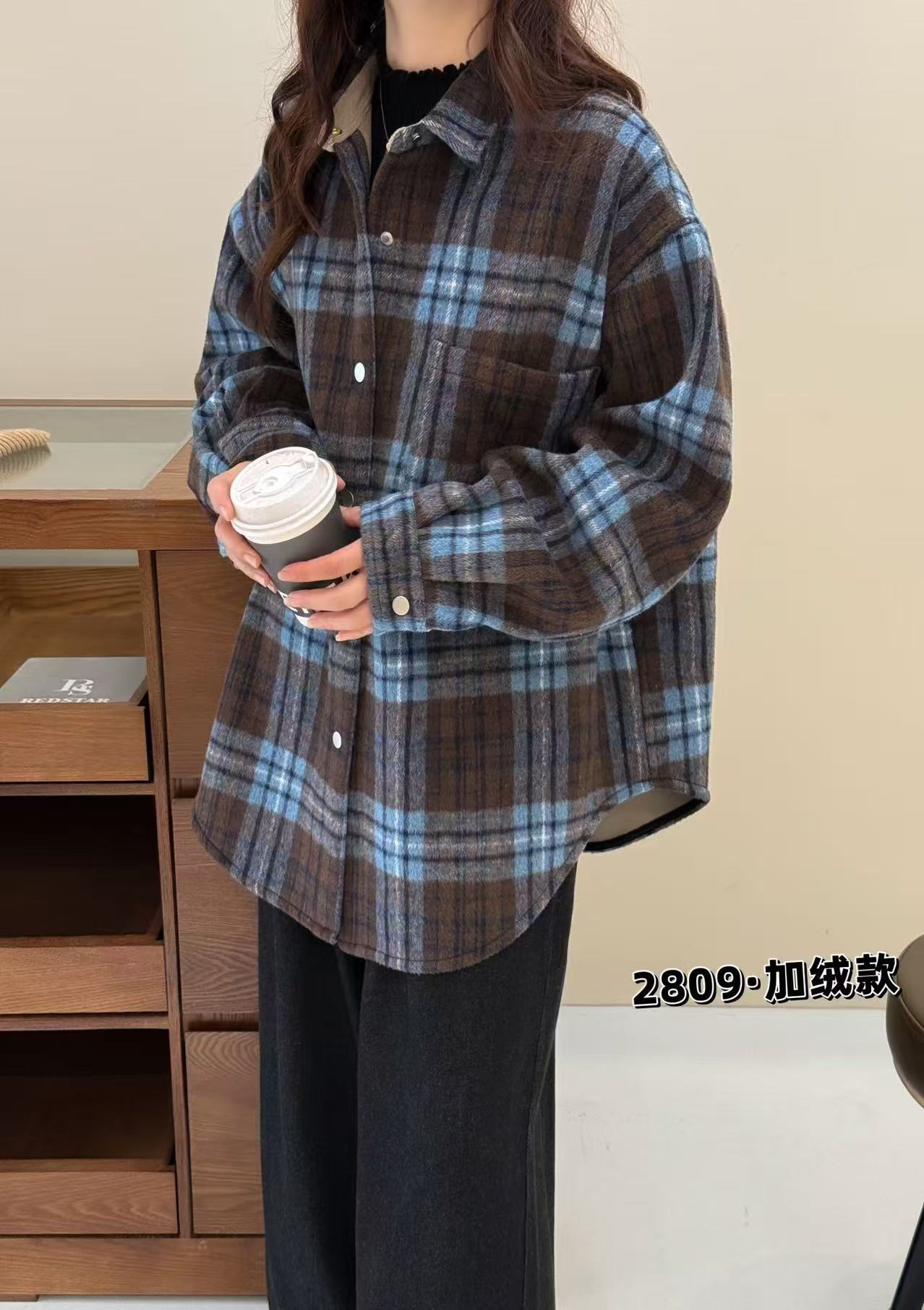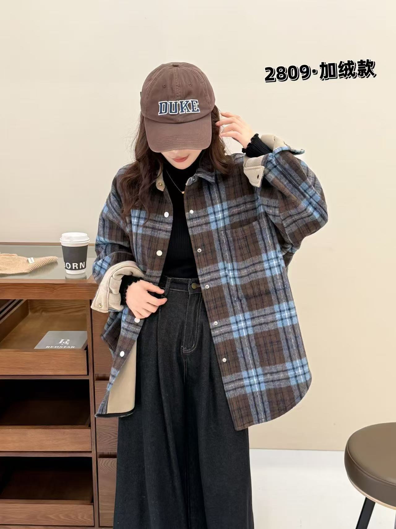 2024 겨울 셔츠 여자 기모 두꺼운 따뜻한 탑 대비 긴 소매 프레피 스타일 탑 한국 격자 무늬 셔츠스토어 가기