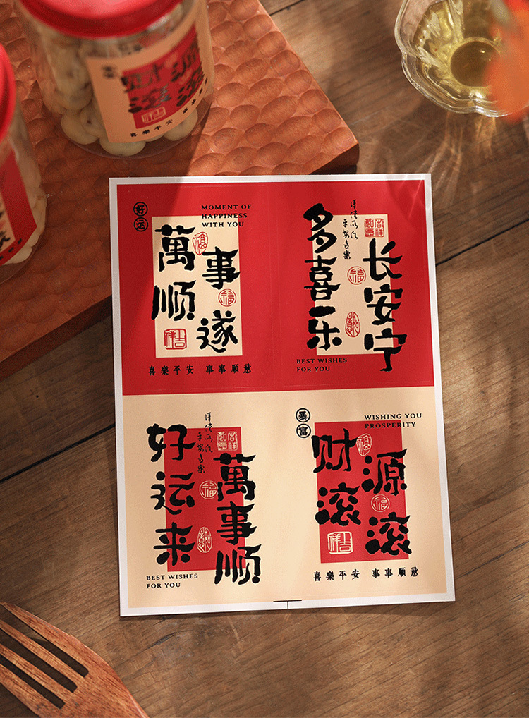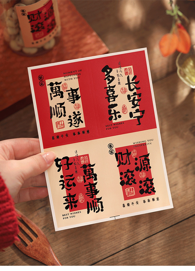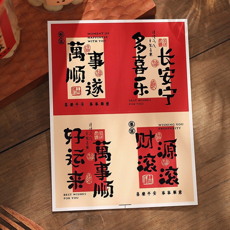 공장 용품 장식 스티커 국가 조수 길조 새해 포장 장식 스티커 축복 단어 새해 봉인 종이 스티커