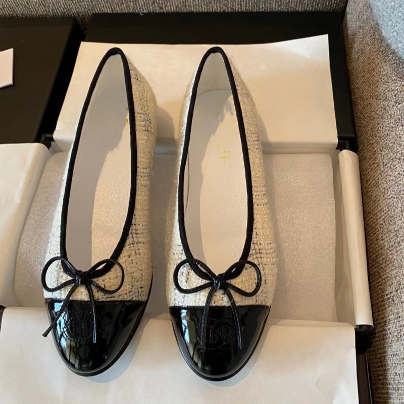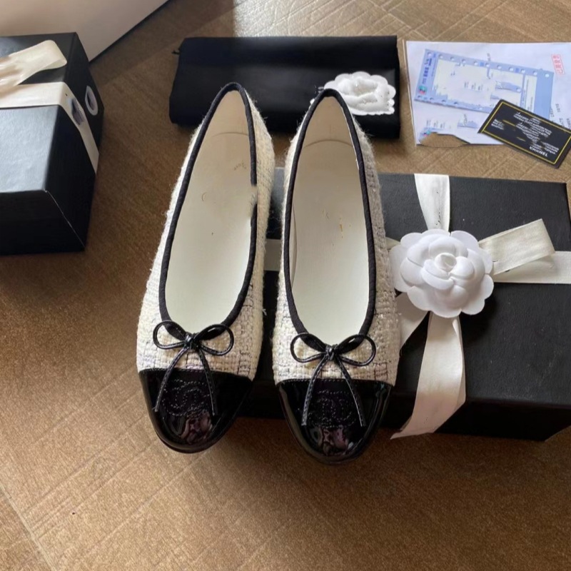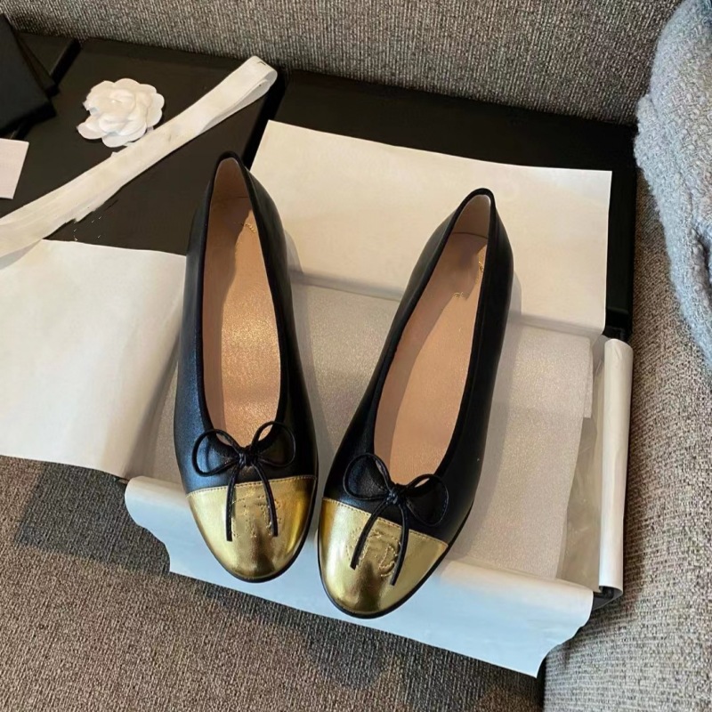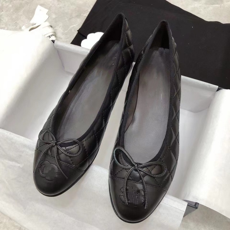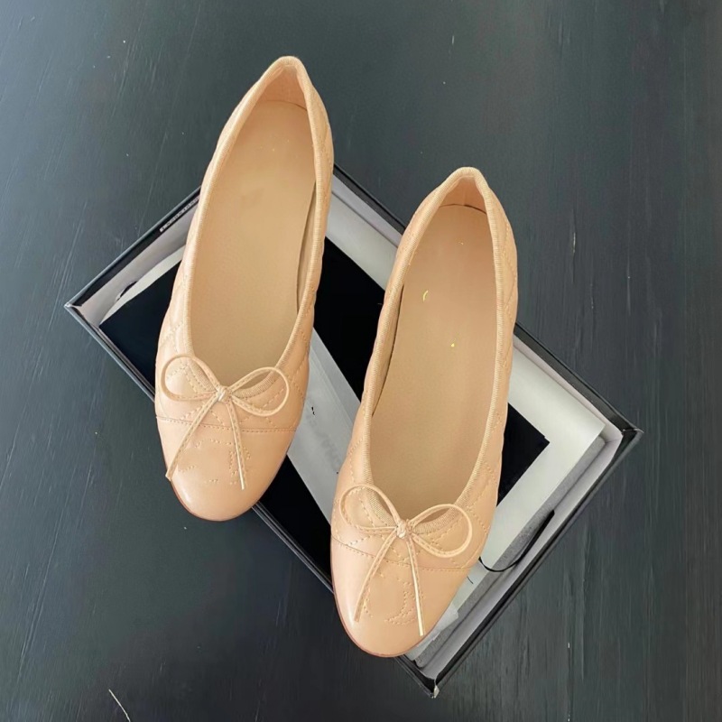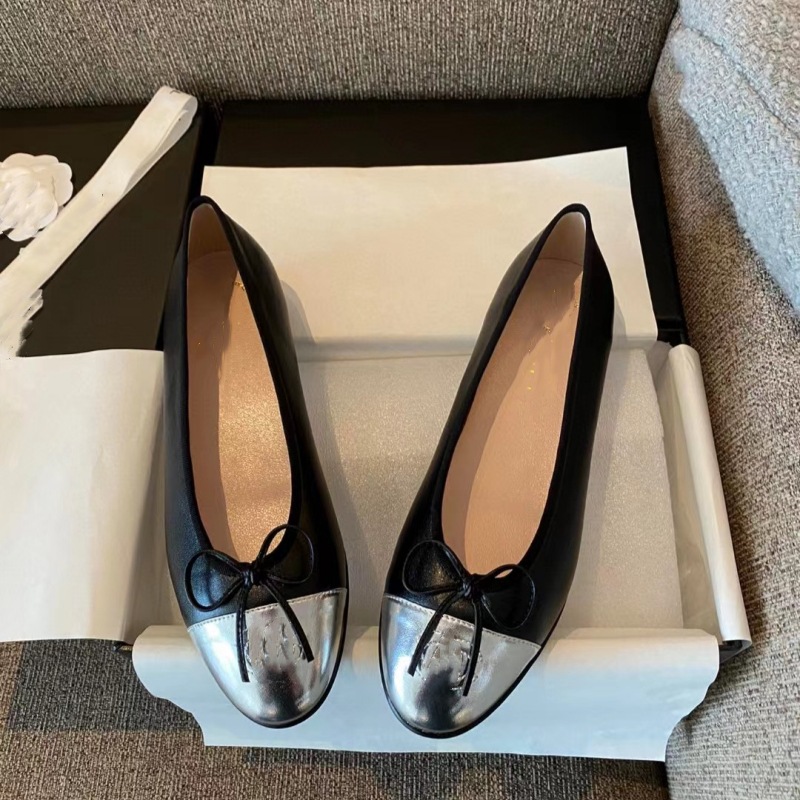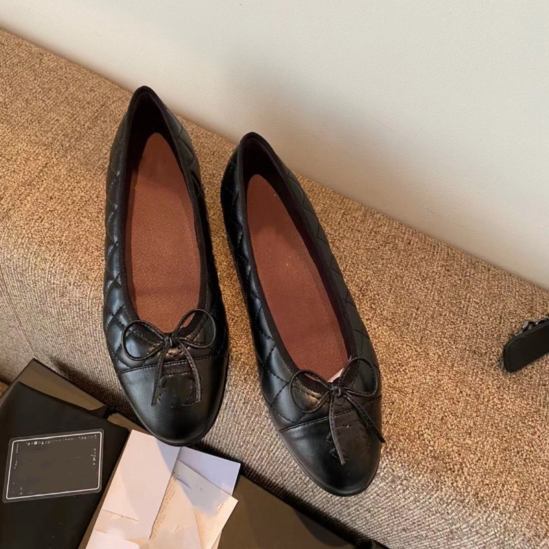 클래식 샤넬 스타일 발레 슈즈 여성용 활 둥근 발가락 플랫 슈즈 얕은 입 편안한 올 매치 슬립 온 여성용 게으른 신발
