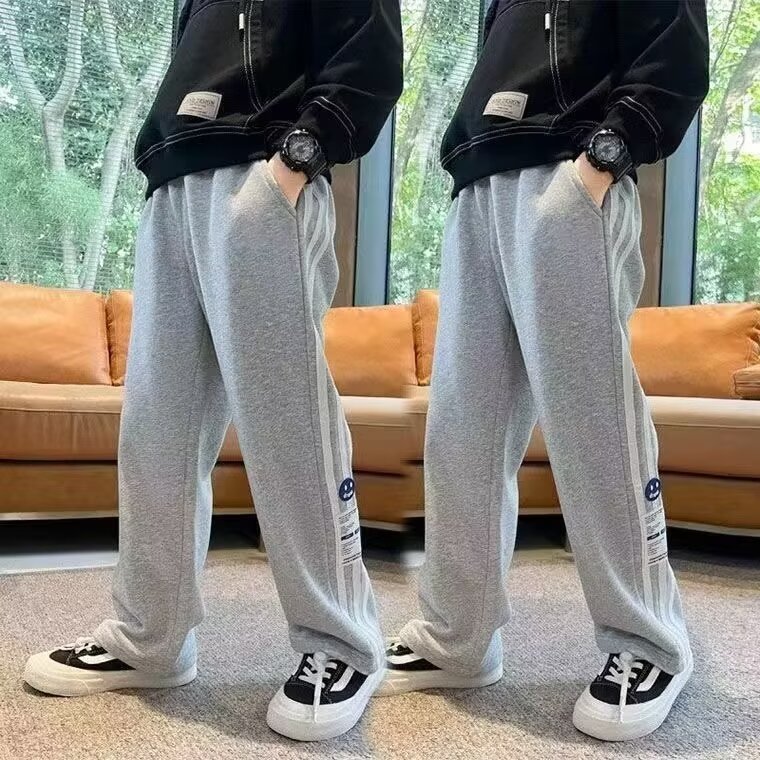 2024 년 새로운 아동복 소년 캐주얼 바지 대형 어린이 스포츠 느슨한 소년 스트레이트 바지 가을과 겨울 트렌디스토어 가기