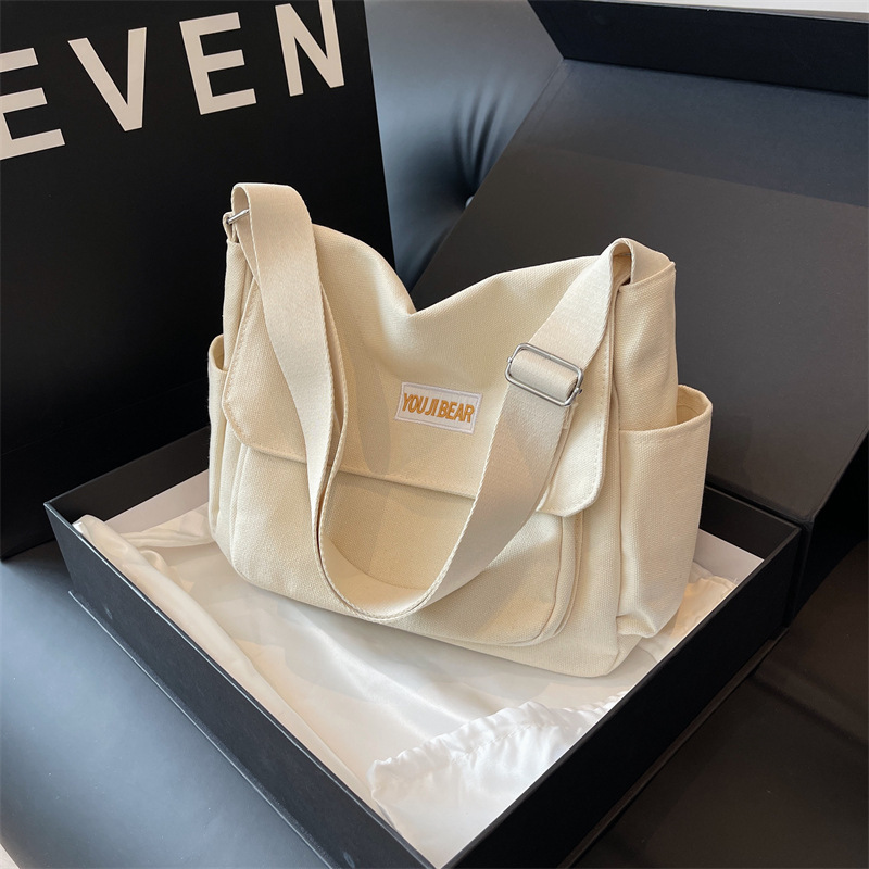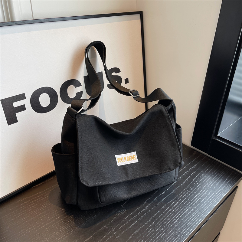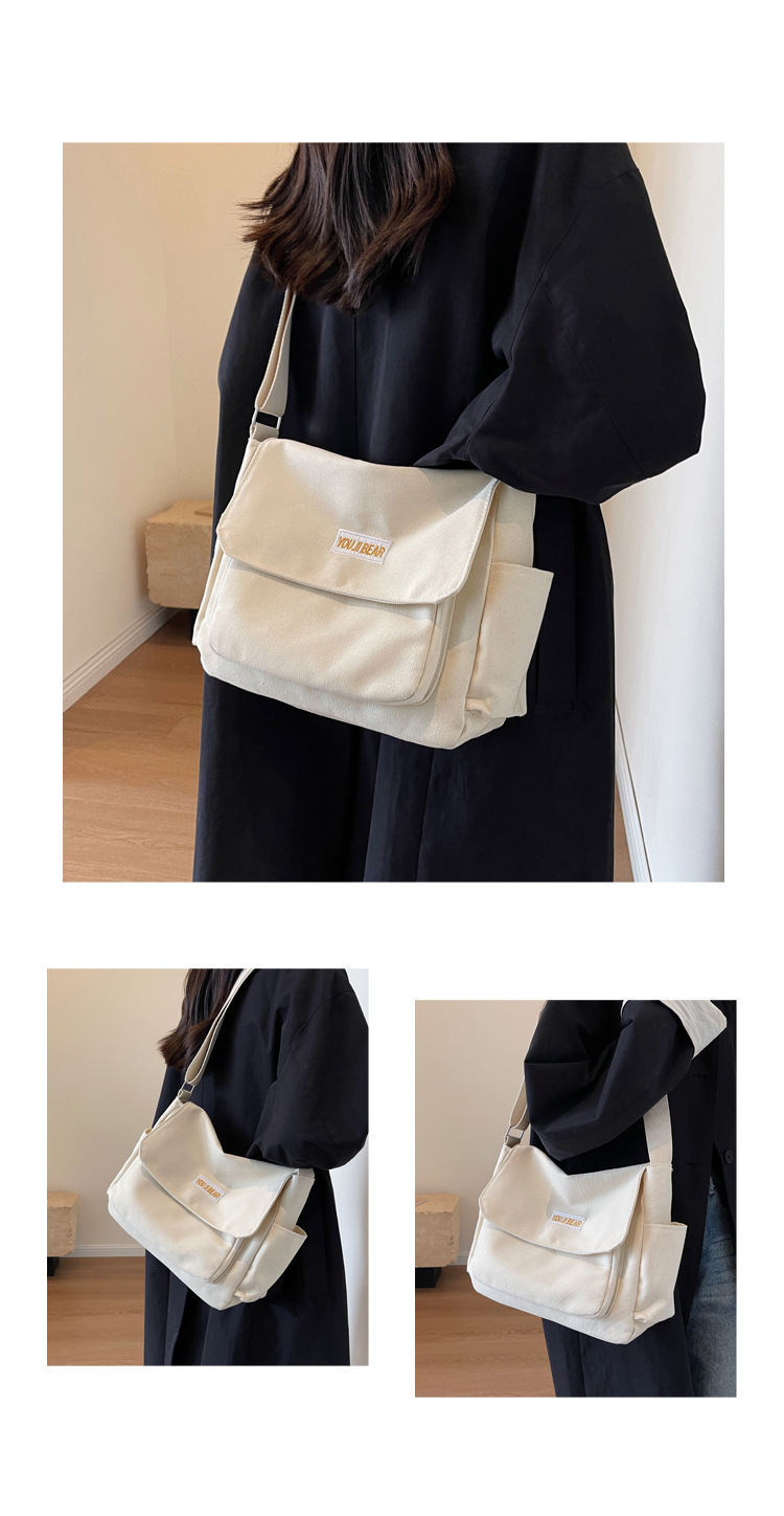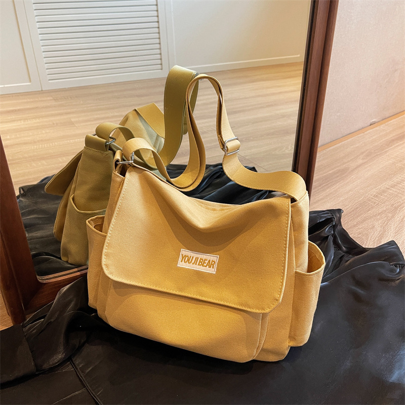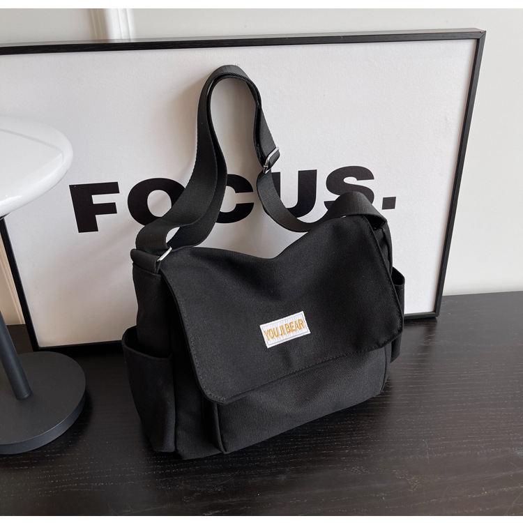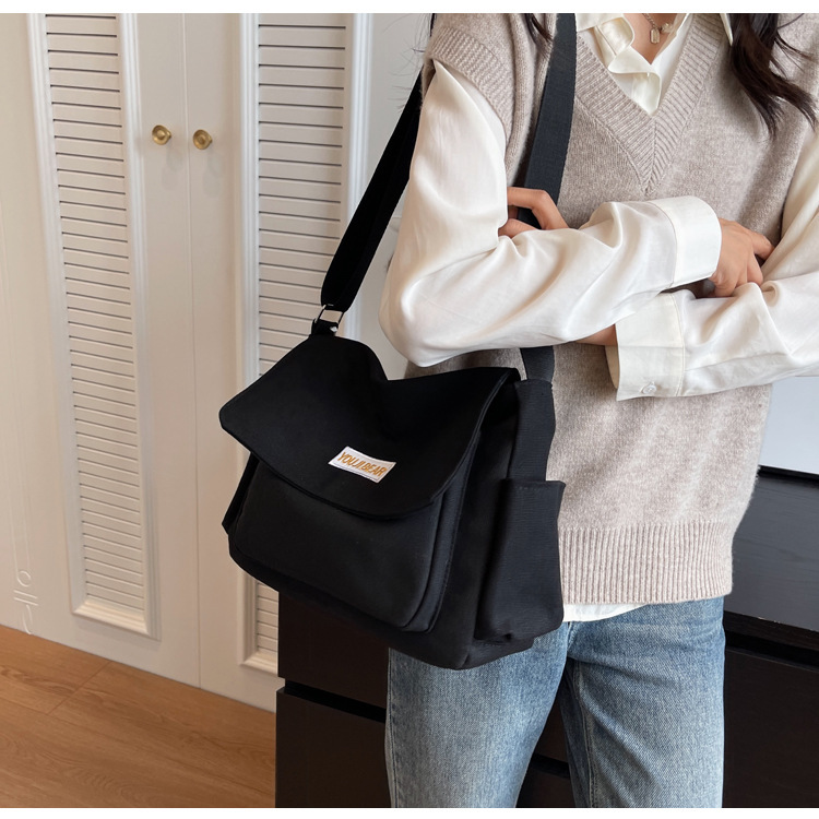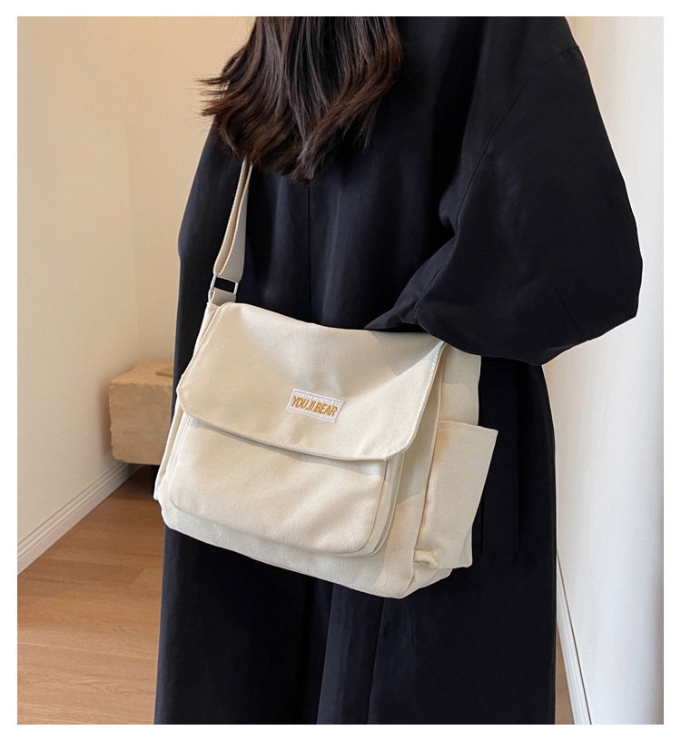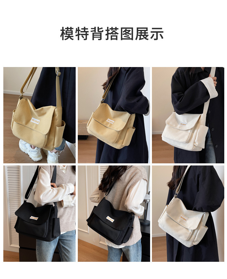 가을과 겨울 새로운 한국 스타일 캔버스 가방 유행 간단한 유행 어깨 크로스 바디 가방 학생 클래스 대용량 어깨 가방