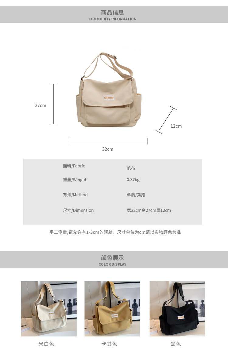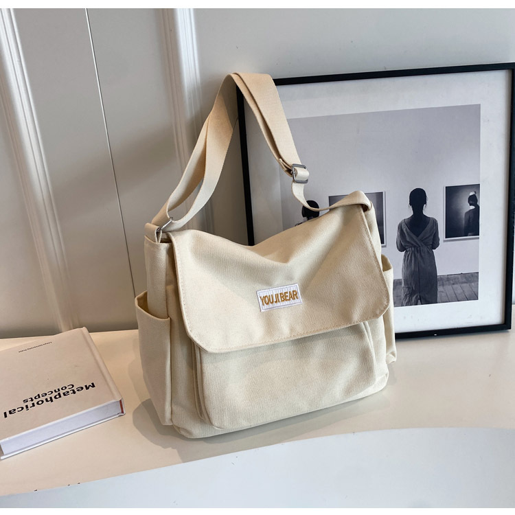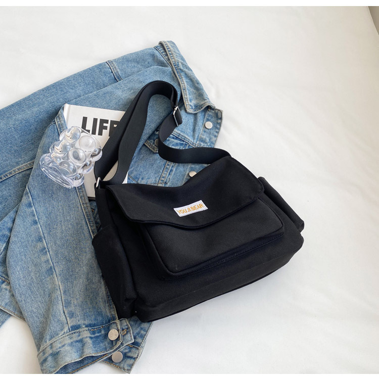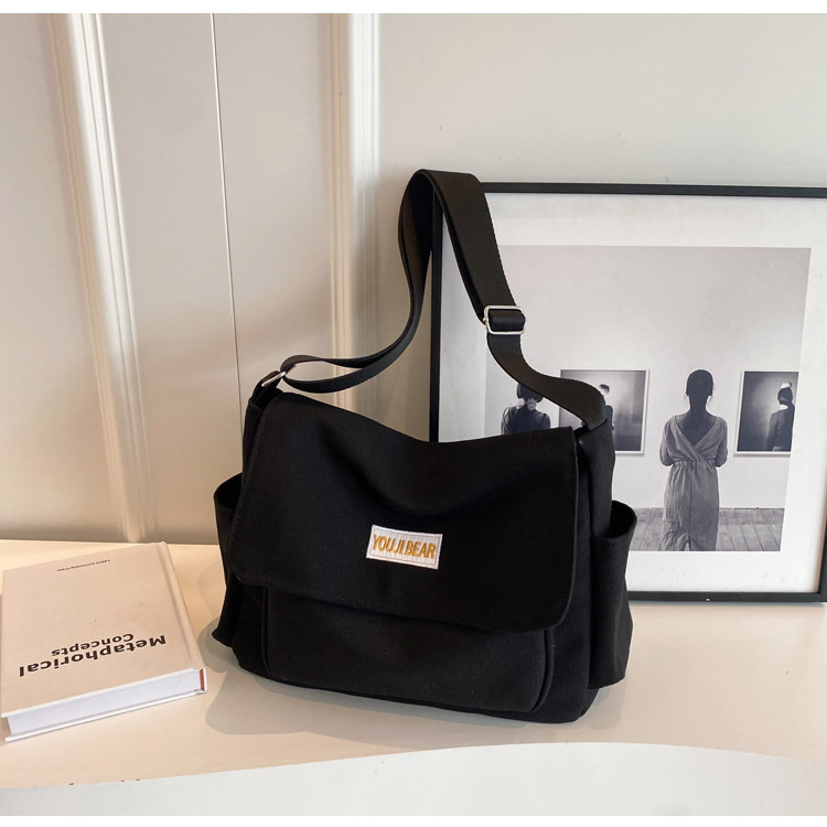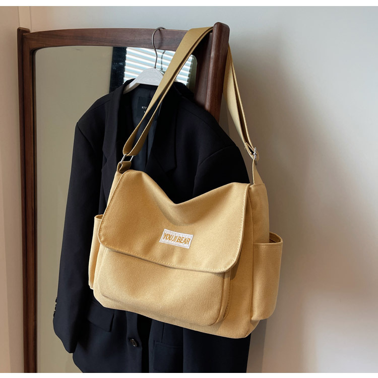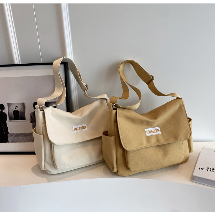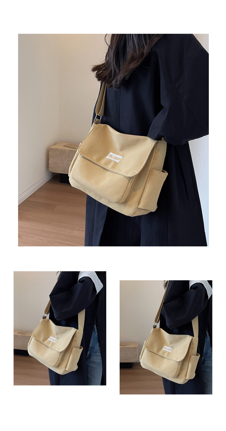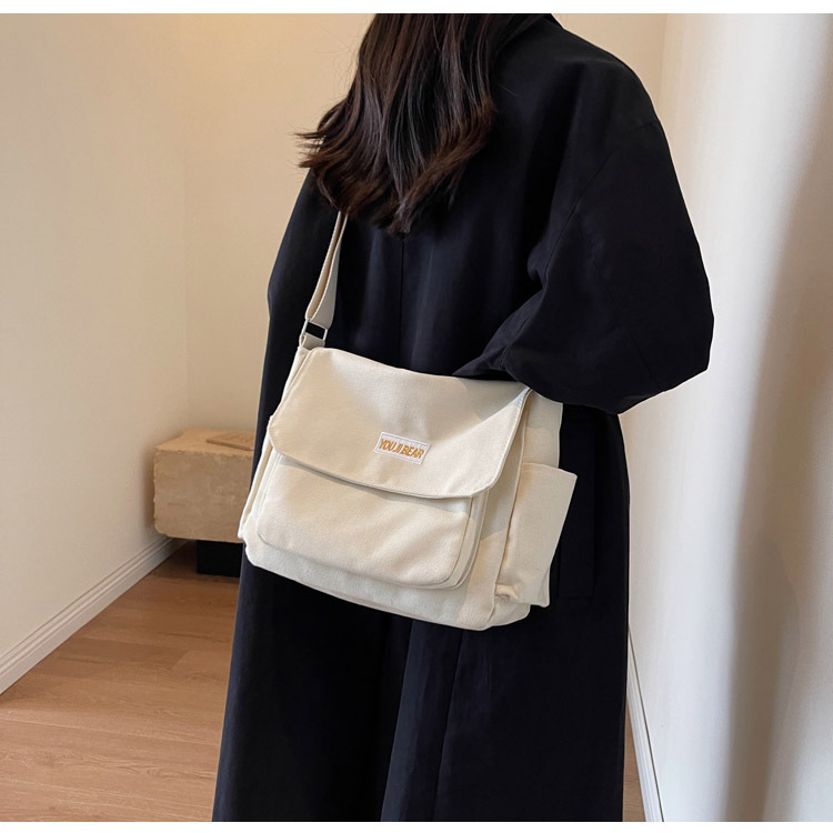 가을과 겨울 새로운 한국 스타일 캔버스 가방 유행 간단한 유행 어깨 크로스 바디 가방 학생 클래스 대용량 어깨 가방