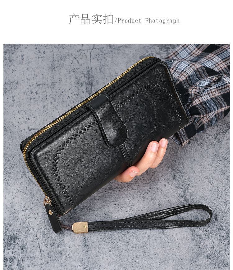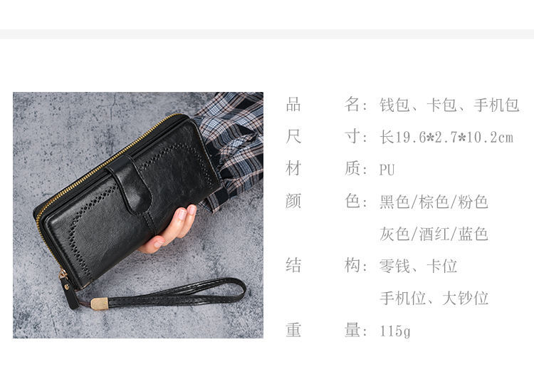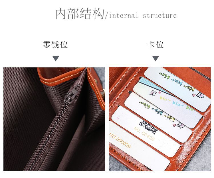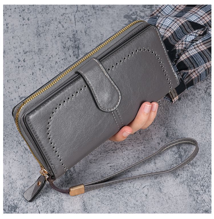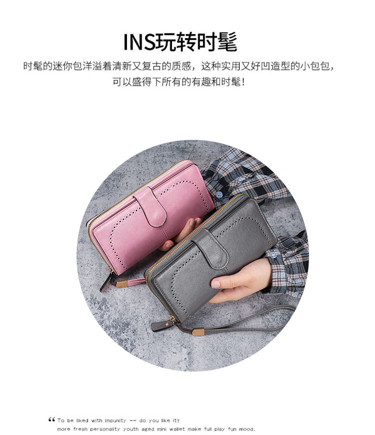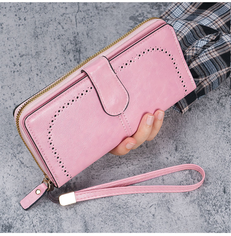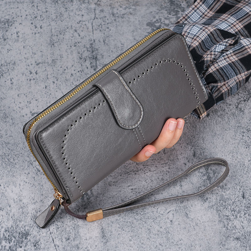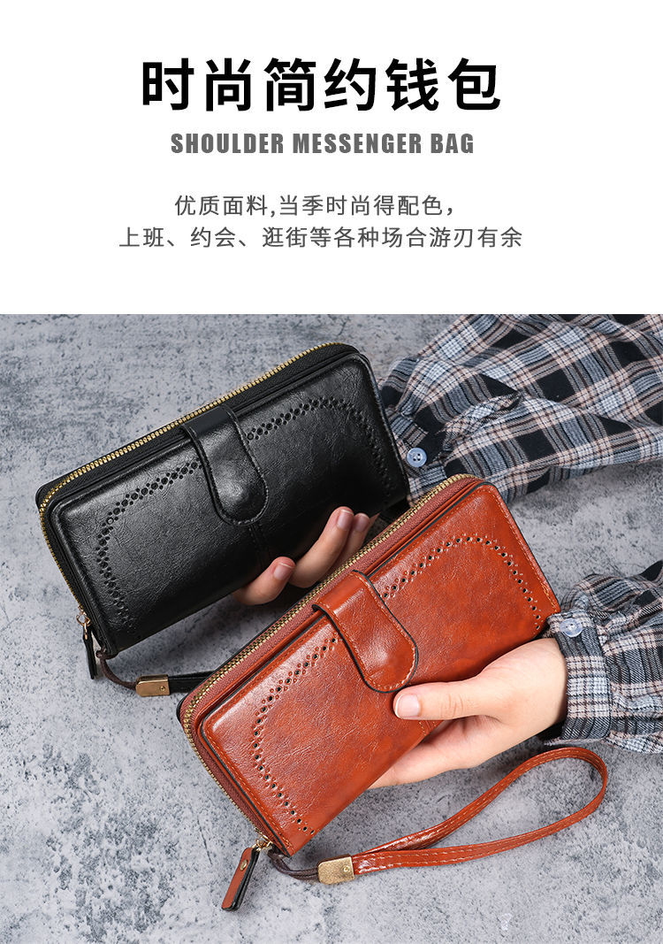 국경을 넘는 라벨 부착 가능한 패션 오일왁스 가죽 여성용 대용량 지갑, 롱 스타일 여성용 지폐 지갑, 다층 지갑스토어 가기