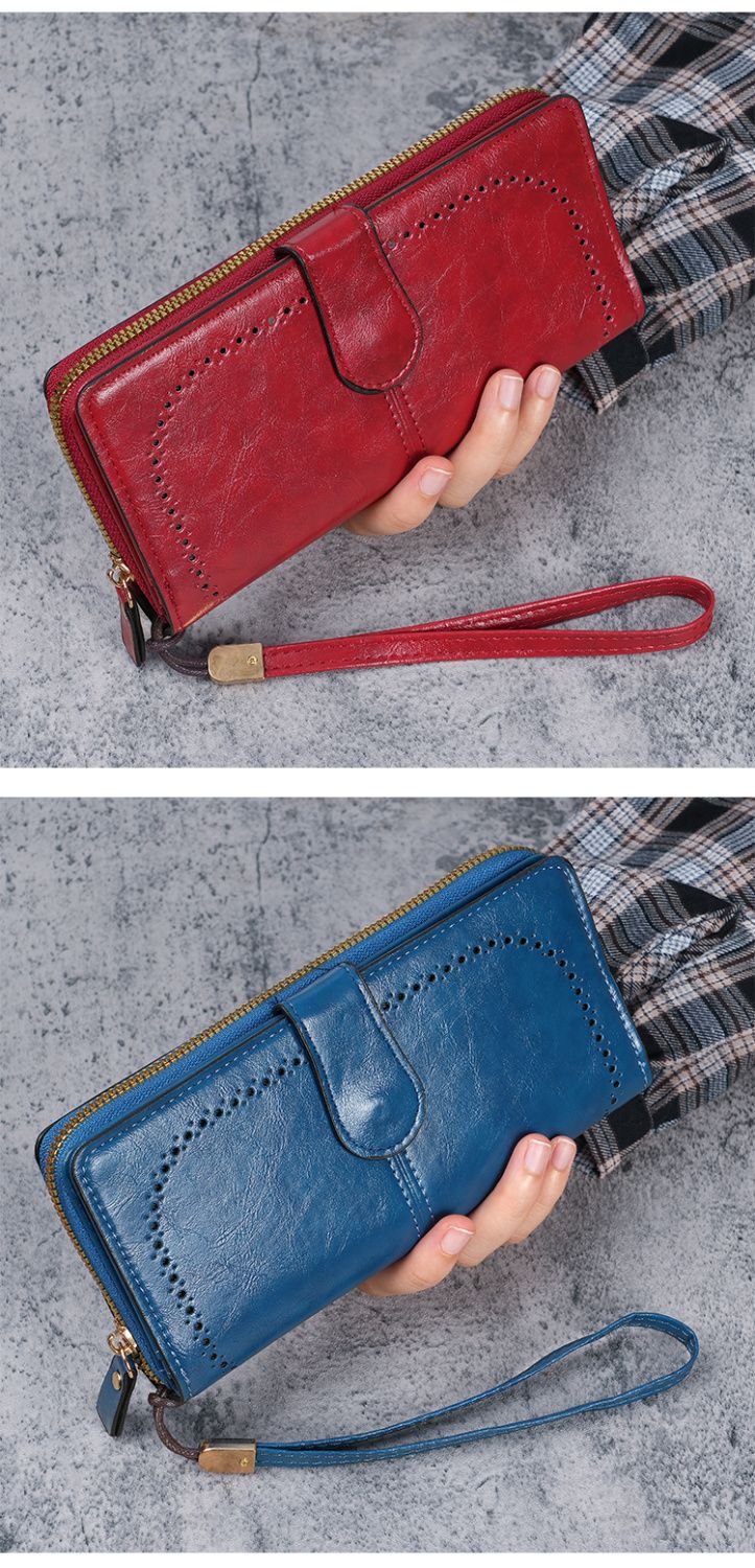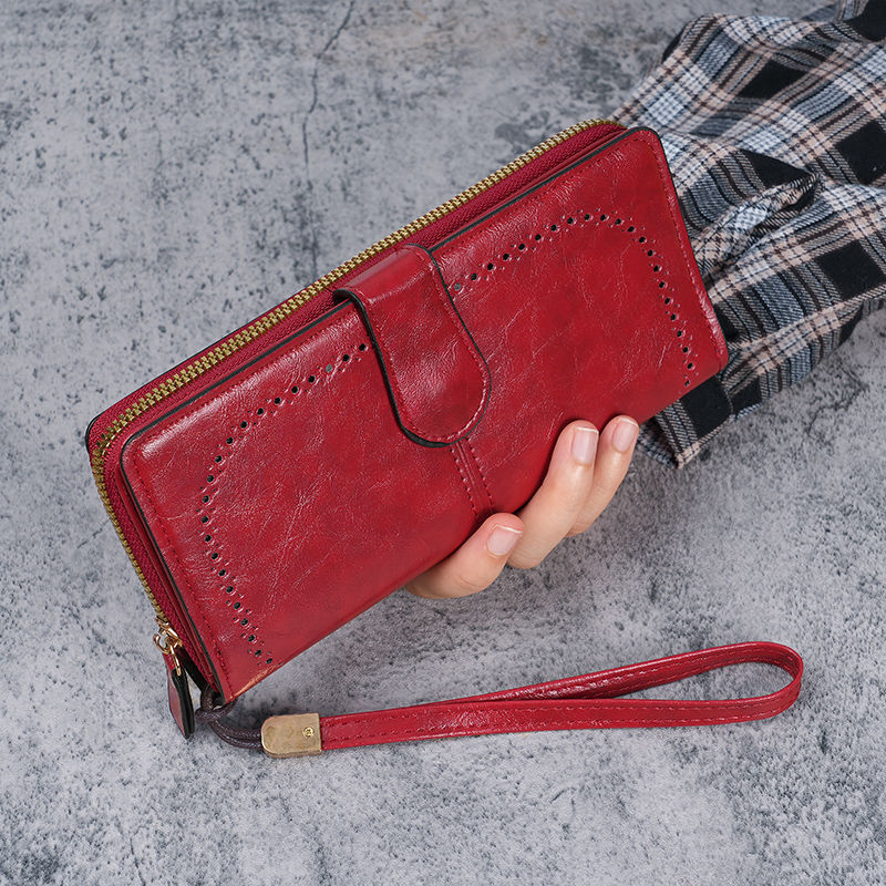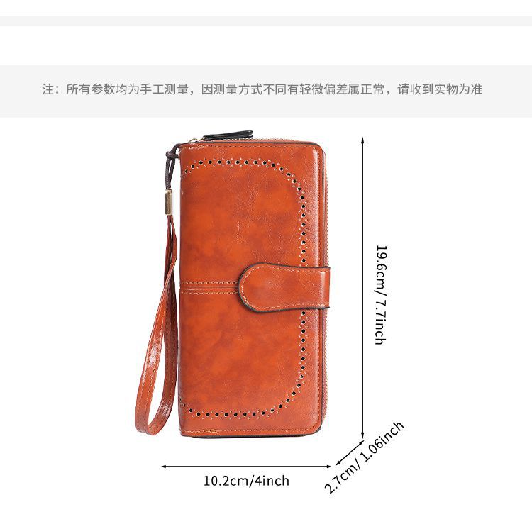 국경을 넘는 라벨 부착 가능한 패션 오일왁스 가죽 여성용 대용량 지갑, 롱 스타일 여성용 지폐 지갑, 다층 지갑