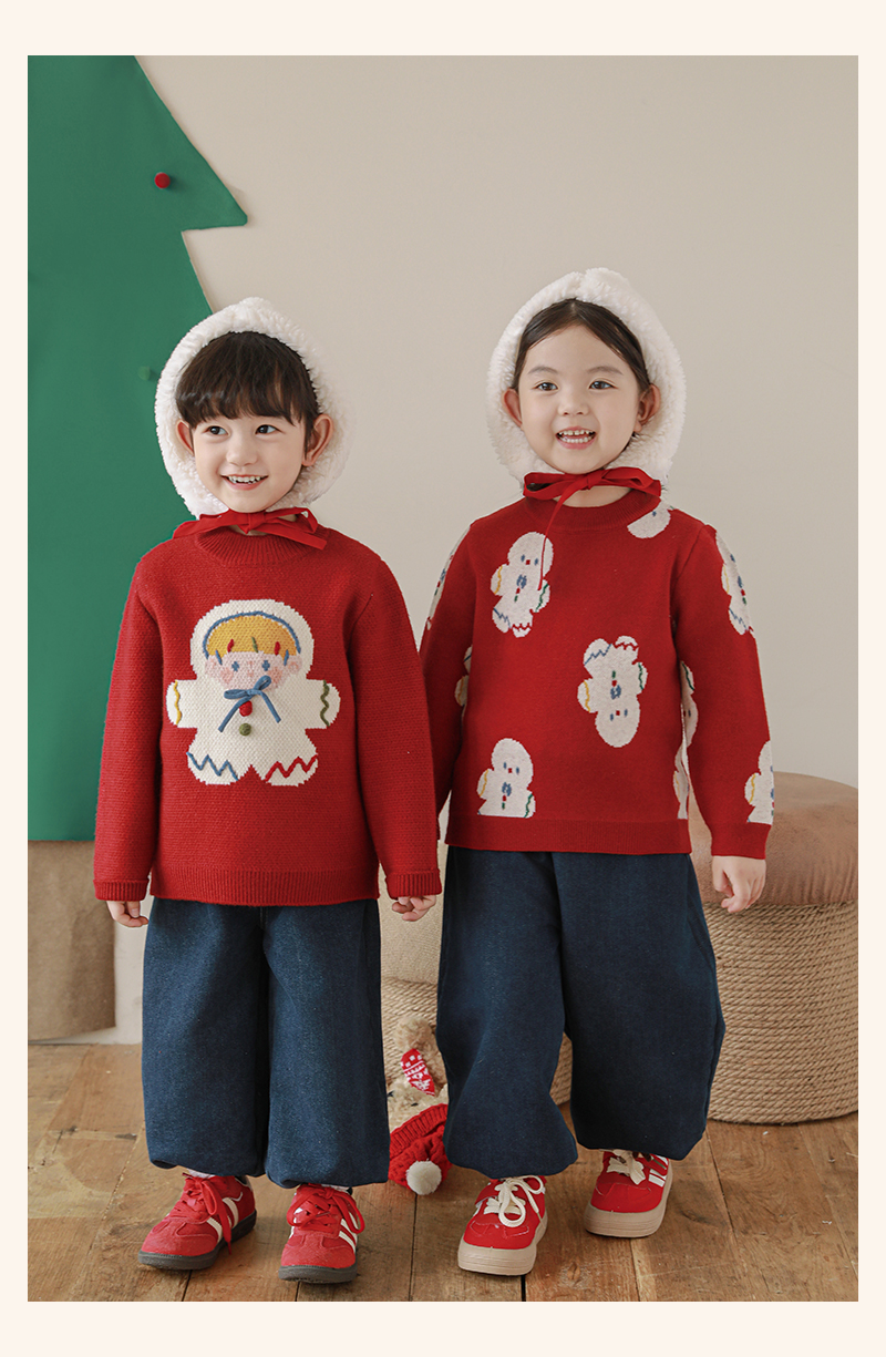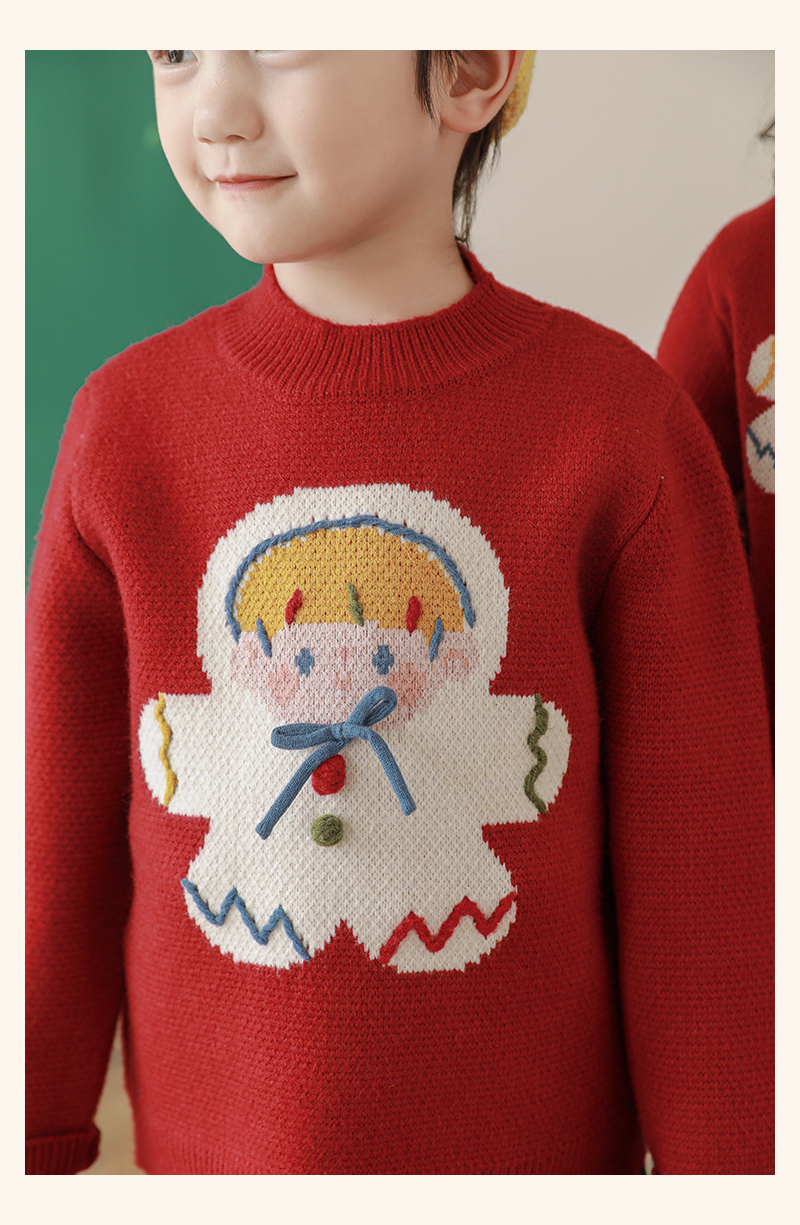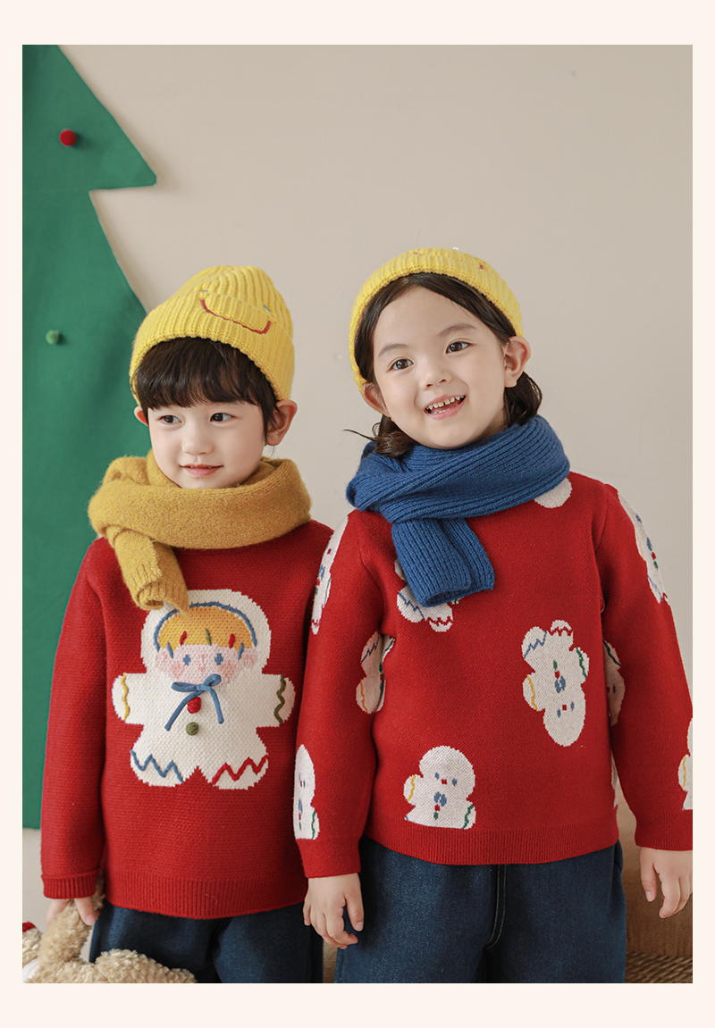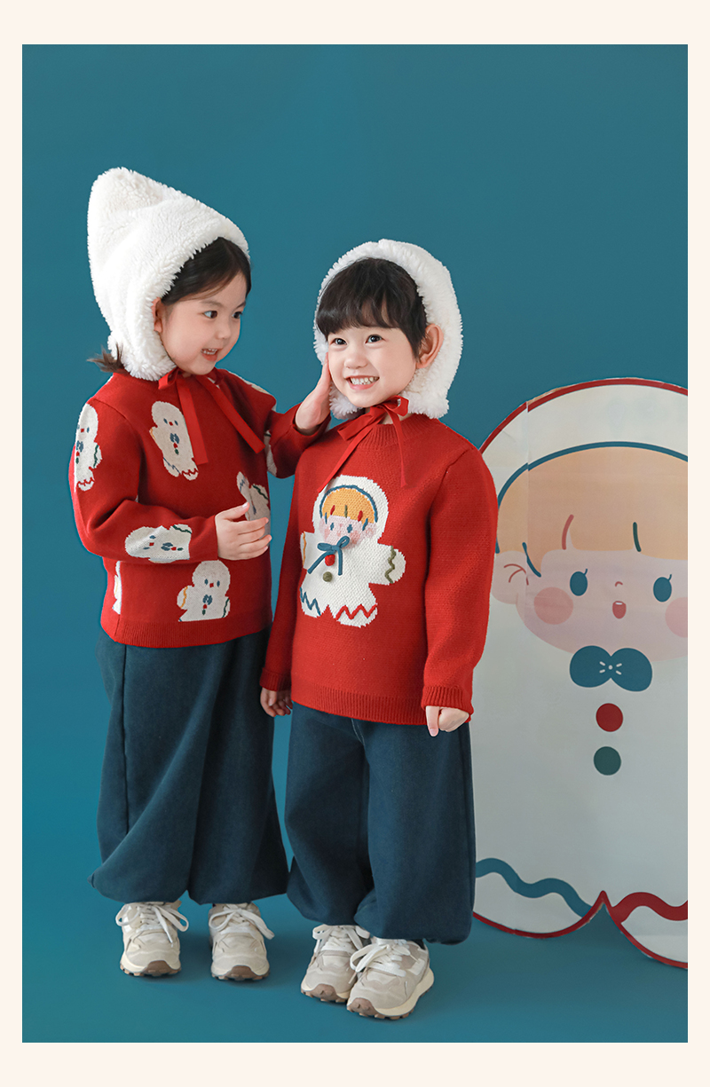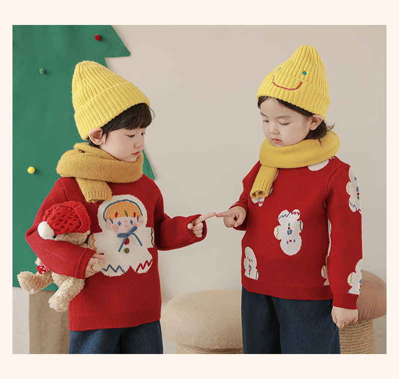 Wulibuyi 소녀 크리스마스 시리즈 스웨터 겨울 어린이 골지 가장자리 방풍 참깨 도트 자카드 스웨터