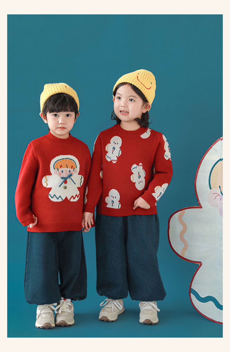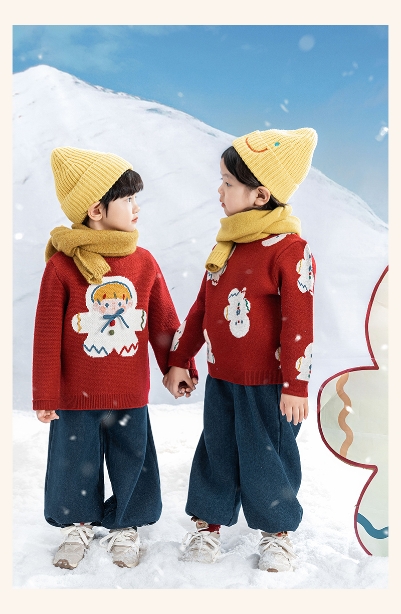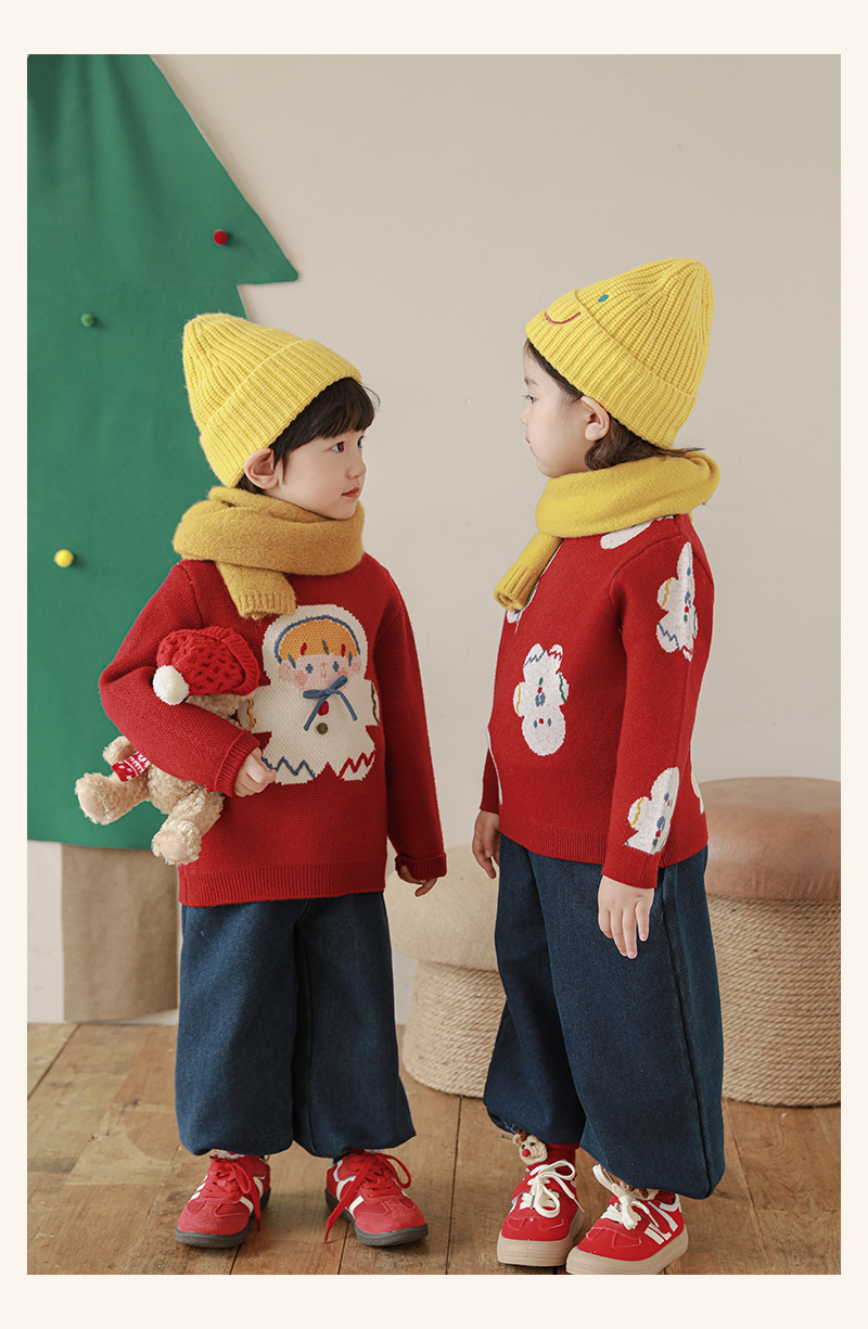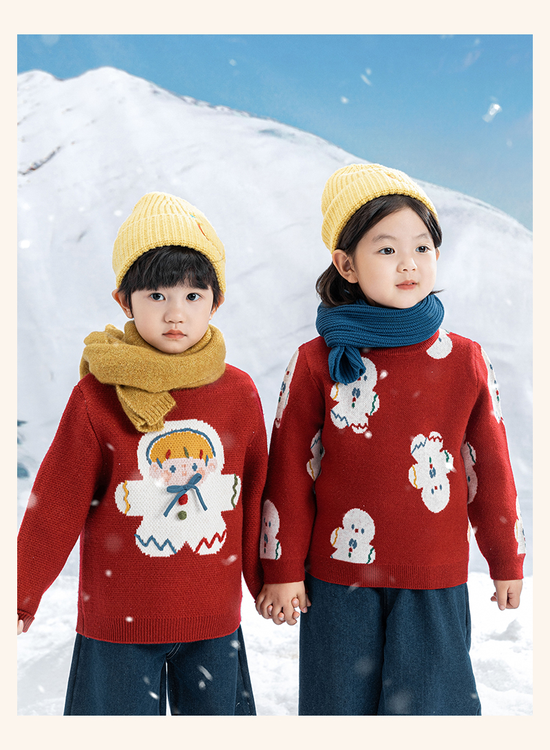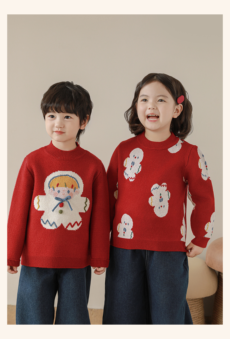Wulibuyi 소녀 크리스마스 시리즈 스웨터 겨울 어린이 골지 가장자리 방풍 참깨 도트 자카드 스웨터