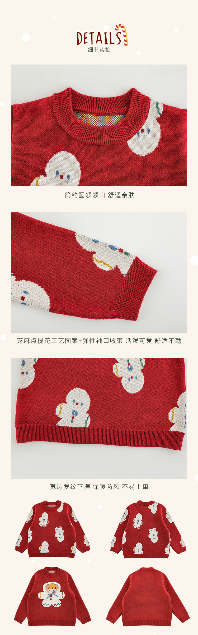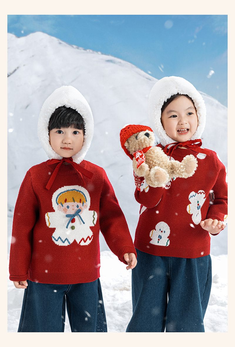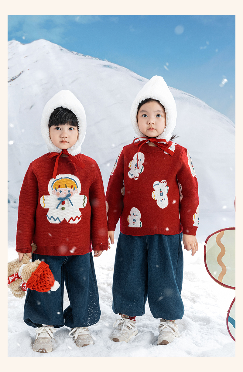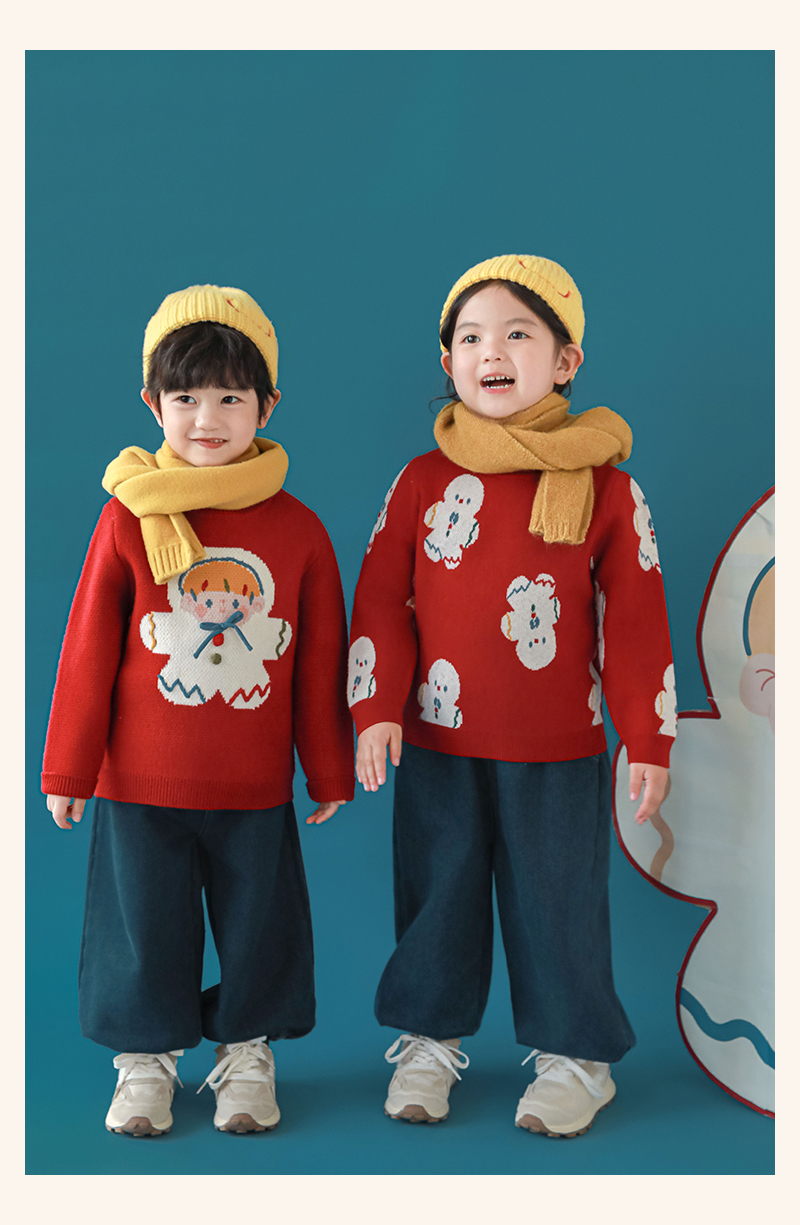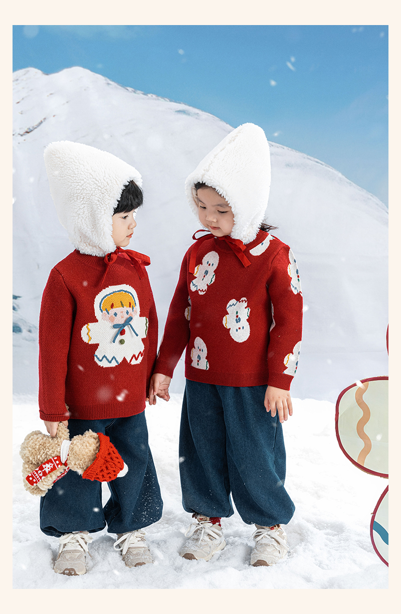 Wulibuyi 소녀 크리스마스 시리즈 스웨터 겨울 어린이 골지 가장자리 방풍 참깨 도트 자카드 스웨터