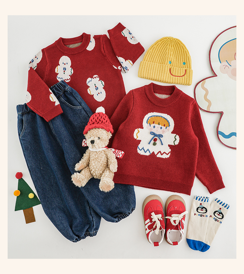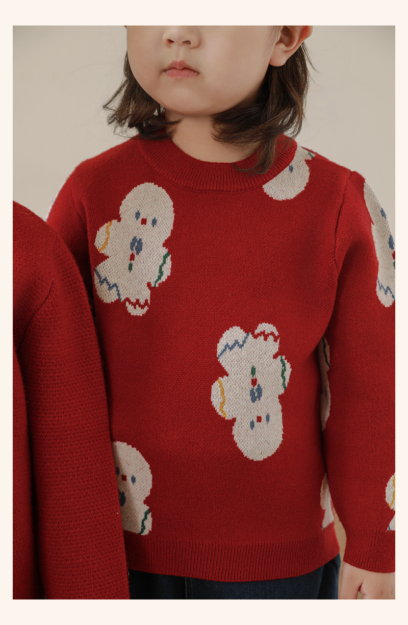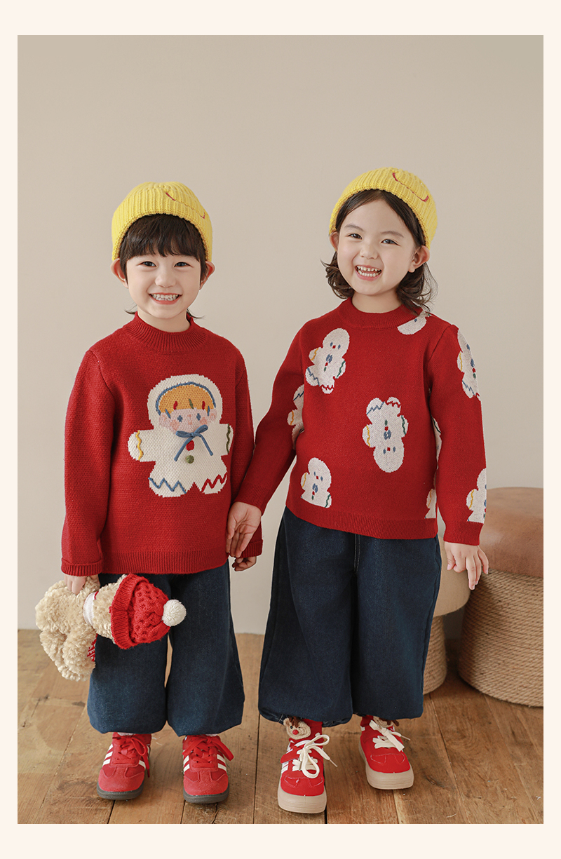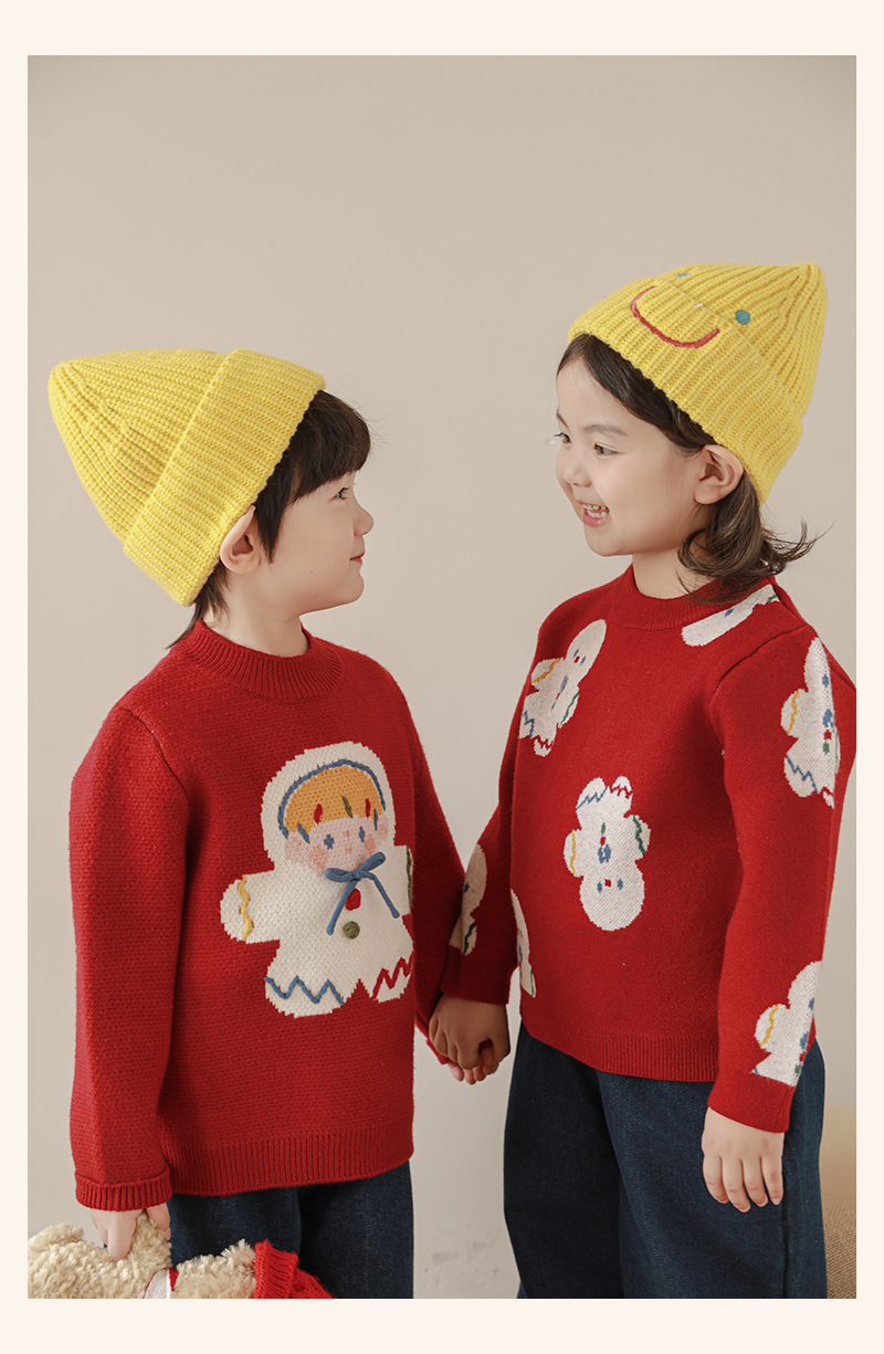 Wulibuyi 소녀 크리스마스 시리즈 스웨터 겨울 어린이 골지 가장자리 방풍 참깨 도트 자카드 스웨터스토어 가기
